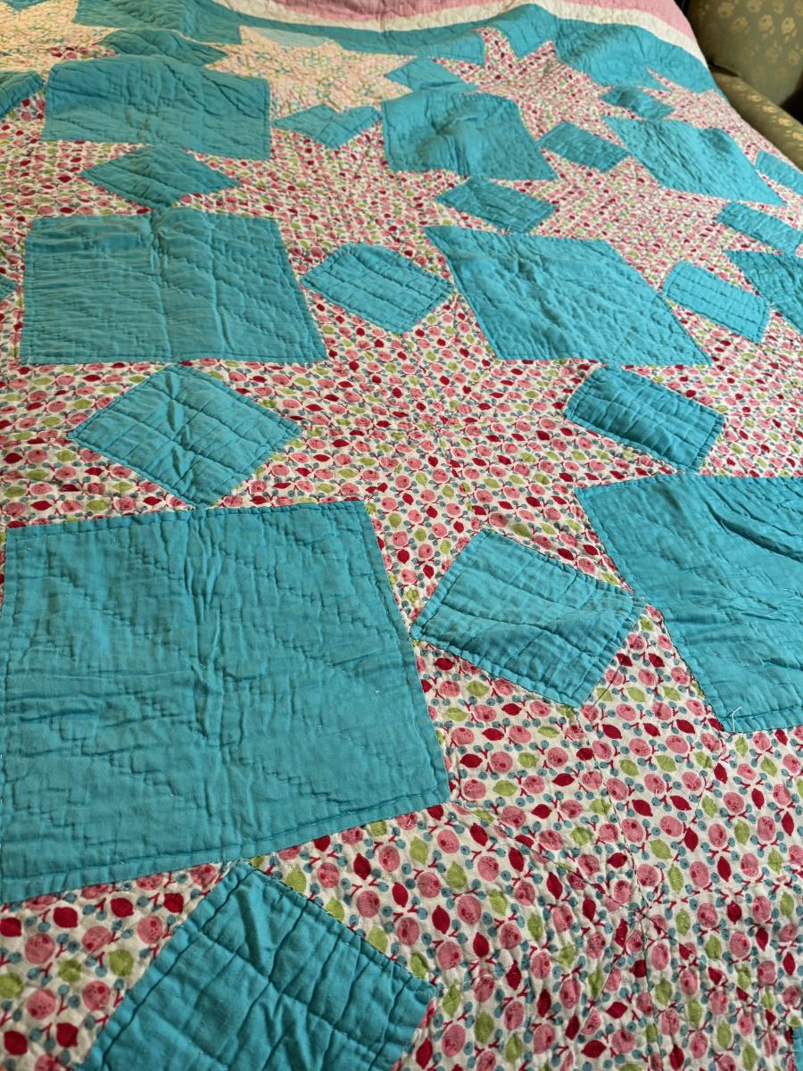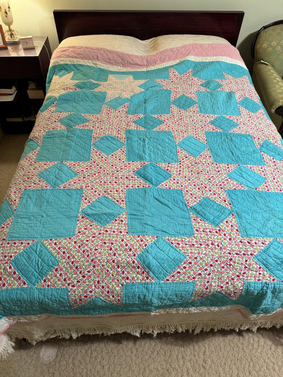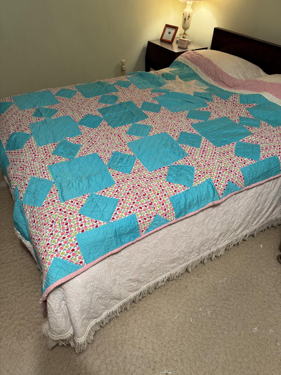 Quilt 111 Teal with Pink Stars
