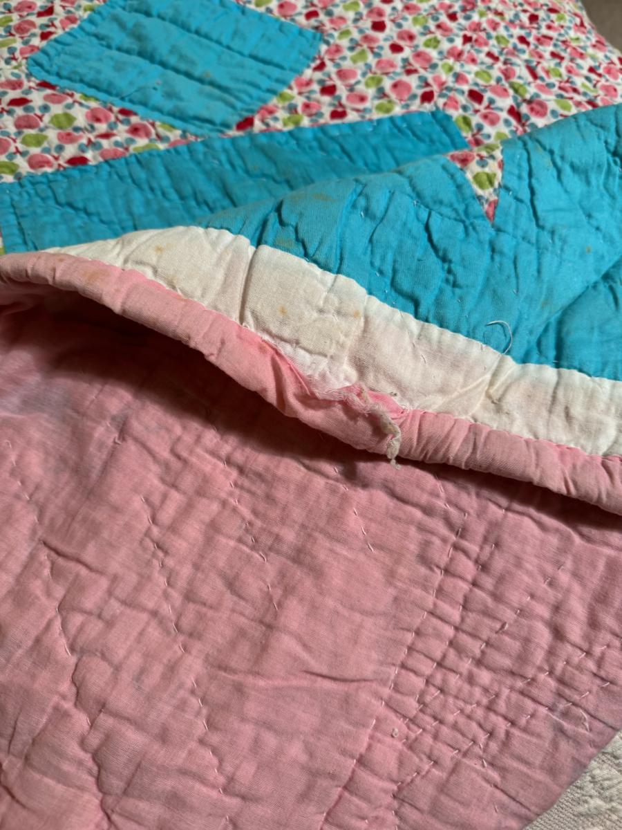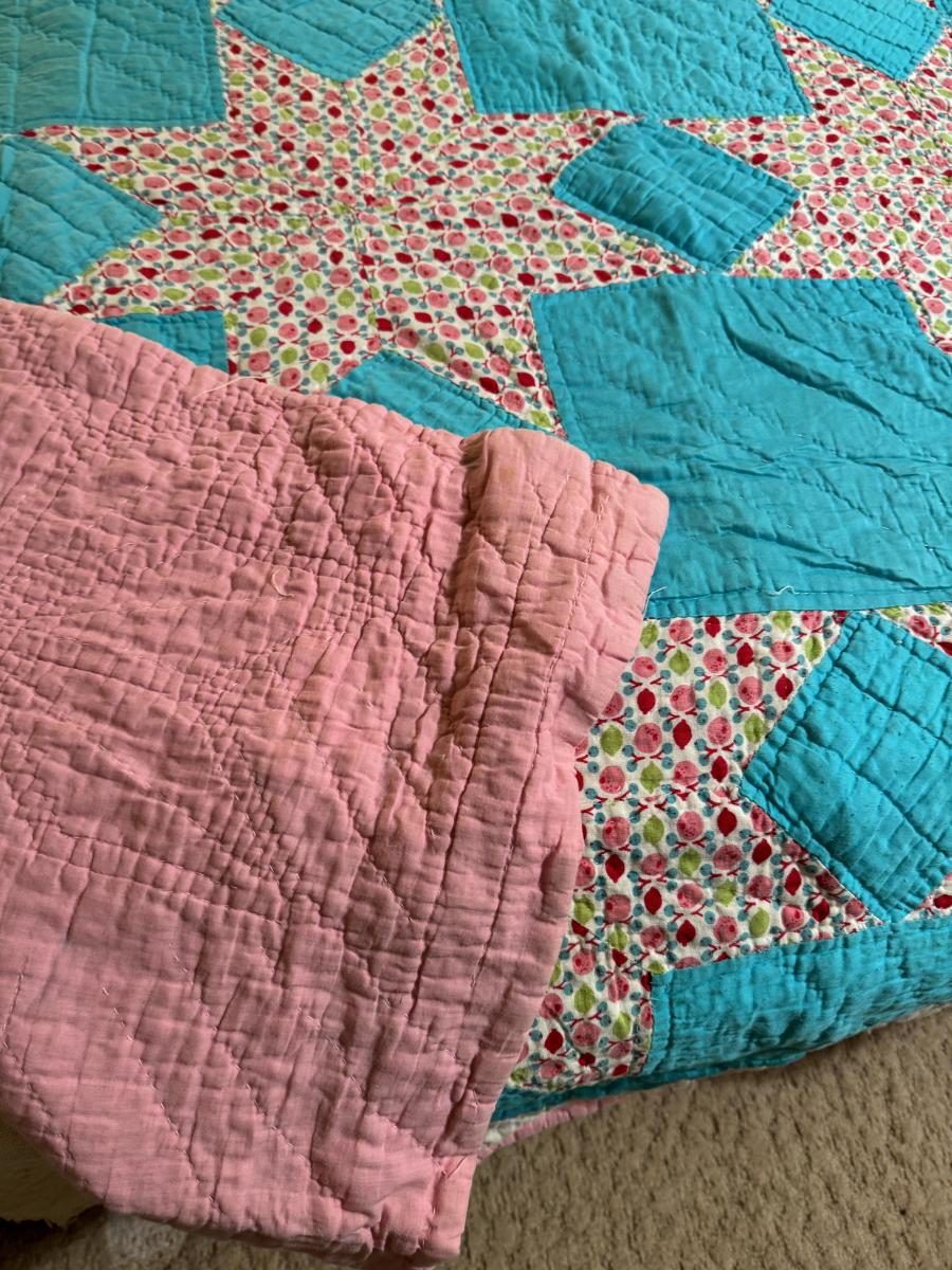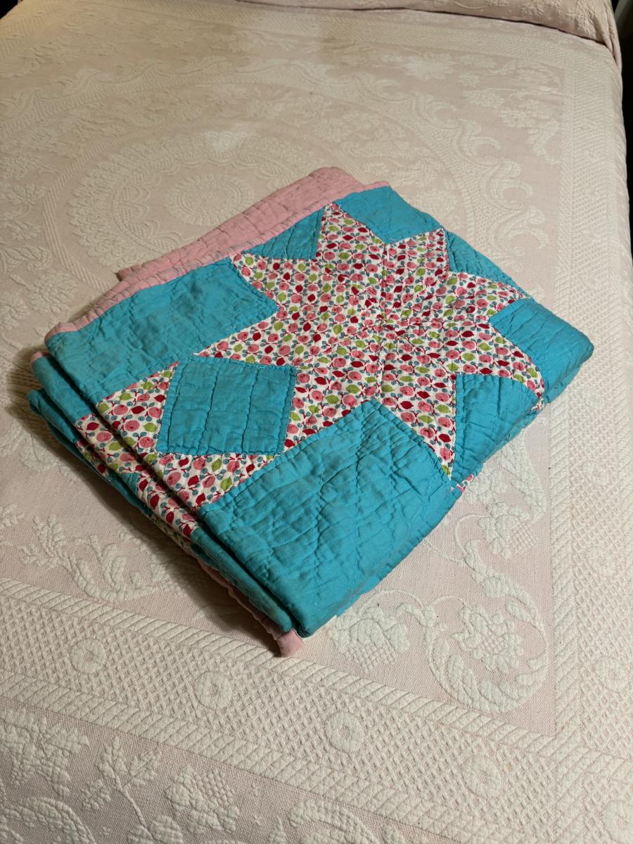 Quilt 111 Teal with Pink Stars