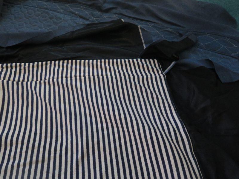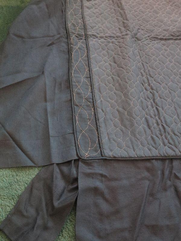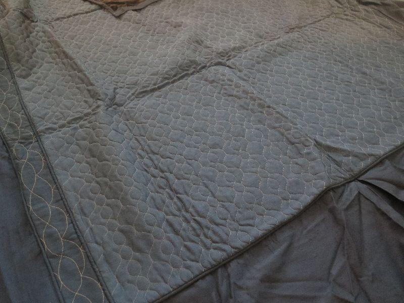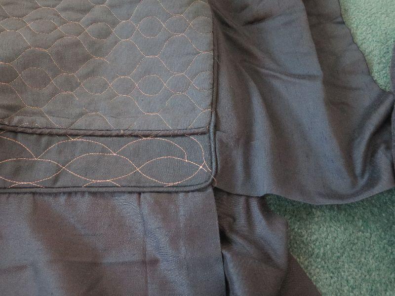 Hand crafted quilt with box ends and soft striped backing. Also, a matching bed skirt. Please review all photos and read Terms and Conditions before placing a bid. Pick up is Wednesday, November 20 from 4-7pm and Saturday, November 23 from 9am-2pm in Mantua, New Jersey. All sales are final. All sales are as is, where is. Please bring all boxes, tools, and muscle needed to remove your items. Any photo props are not included. All measurements are approximate. Items come from dog-friendly home.