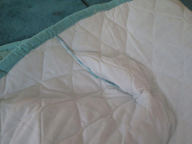 Turquoise quilt with fitted corners is 80x94, heated green throw is 50x50 and has a few soil spots. A red heated wrap with pockets is also included. Please review all photos and read Terms and Conditions before placing a bid. Pick up is Wednesday, November 20 from 4-7pm and Saturday, November 23 from 9am-2pm in Mantua, New Jersey. All sales are final. All sales are as is, where is. Please bring all boxes, tools, and muscle needed to remove your items. Any photo props are not included. All measurements are approximate. Items come from dog-friendly home.