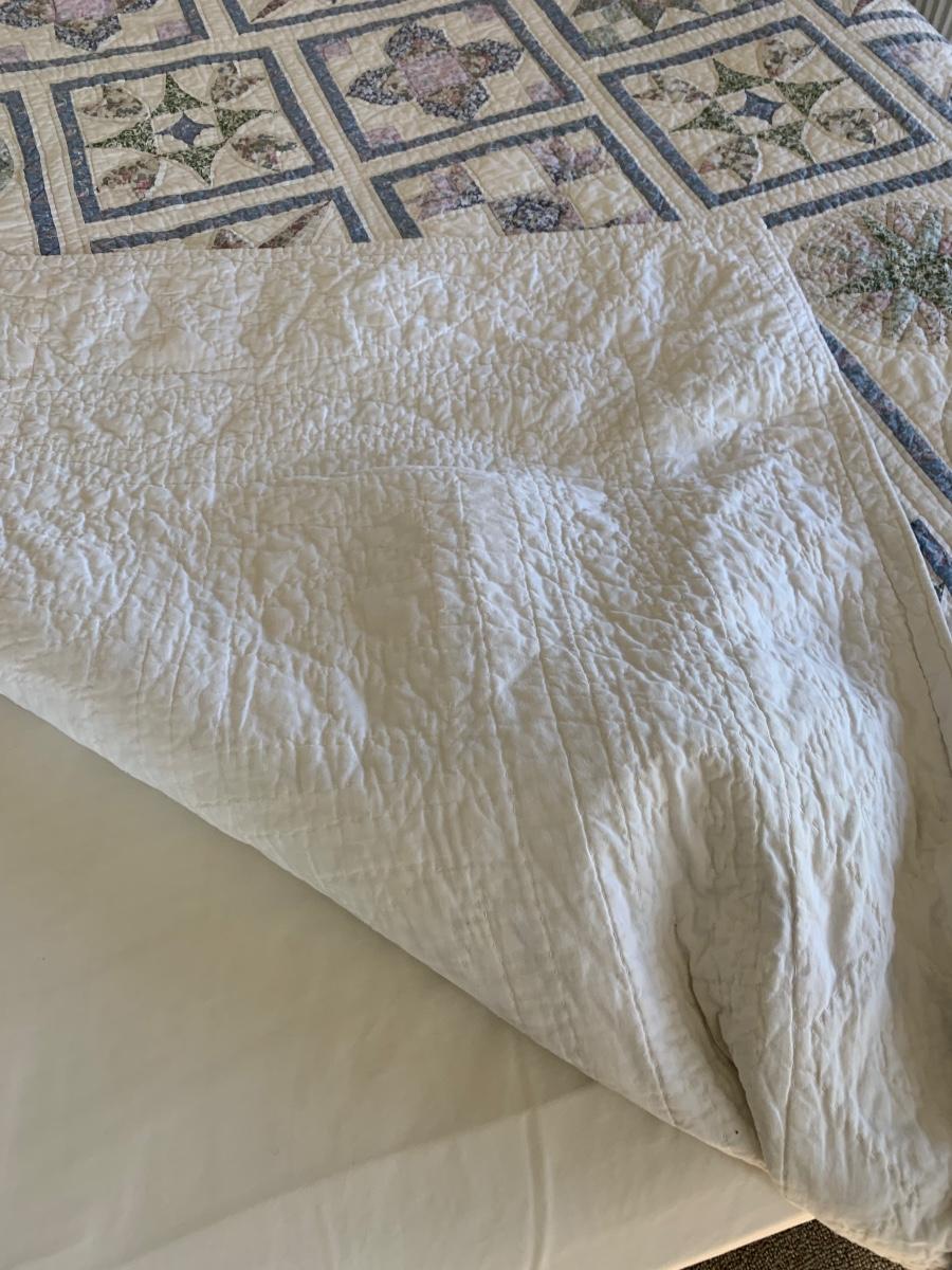Bed measures approx. 6x4 - quilt overhangs bed.