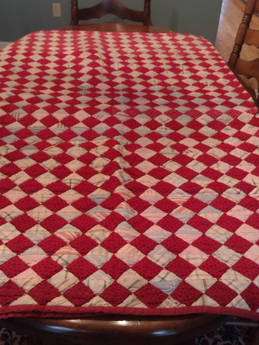 Quilted Coverlet- Approx 62" x 76". Item is in used condition.