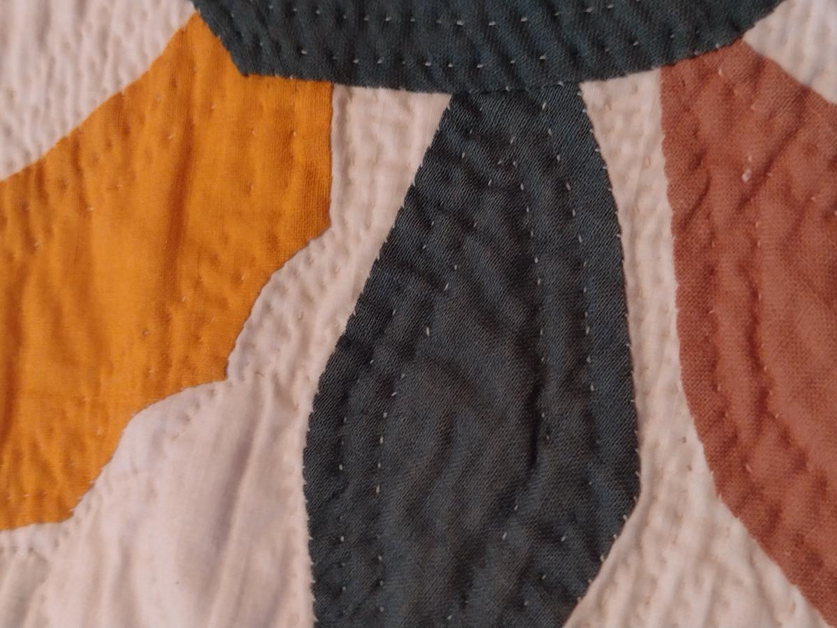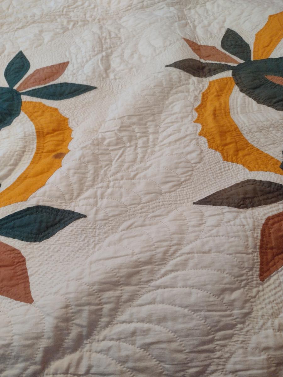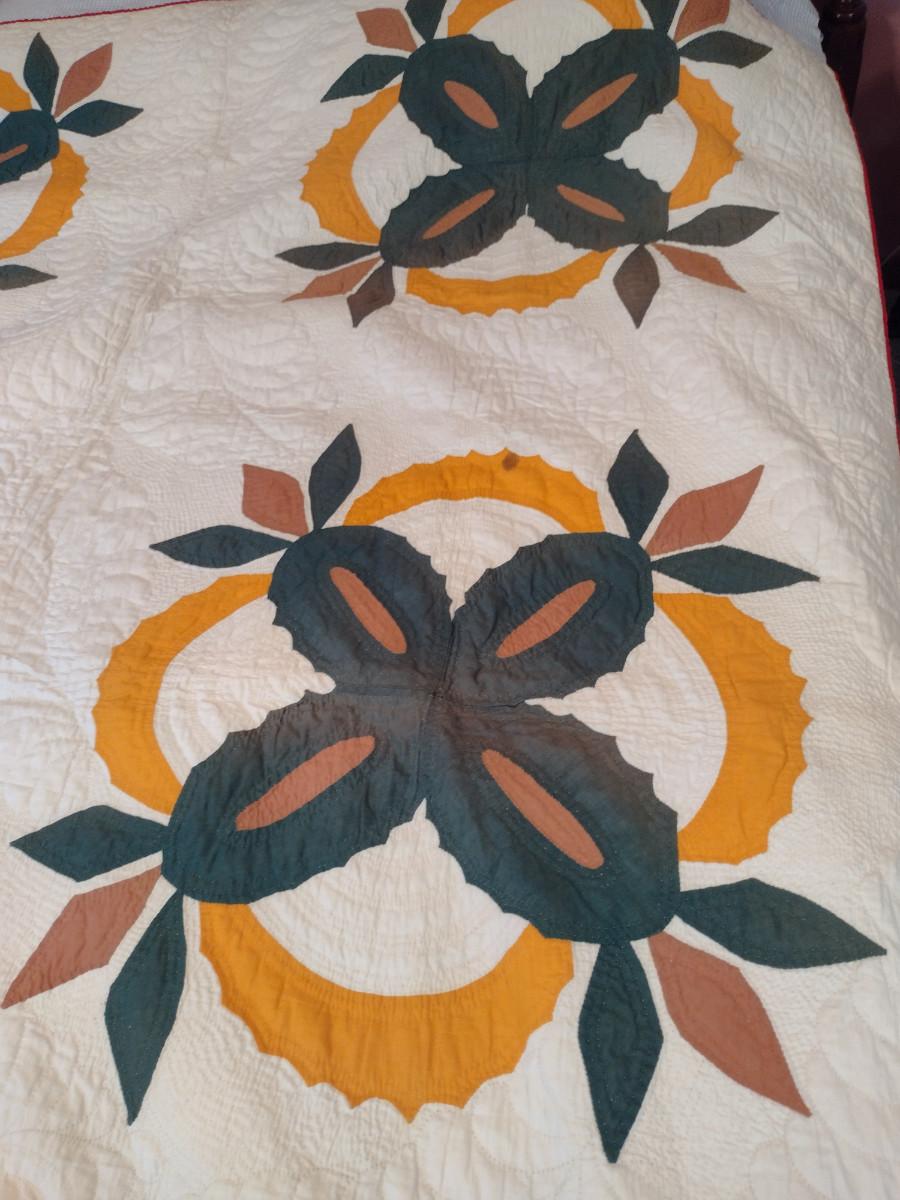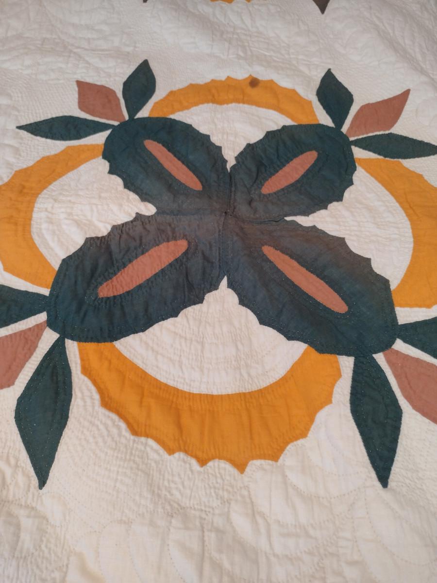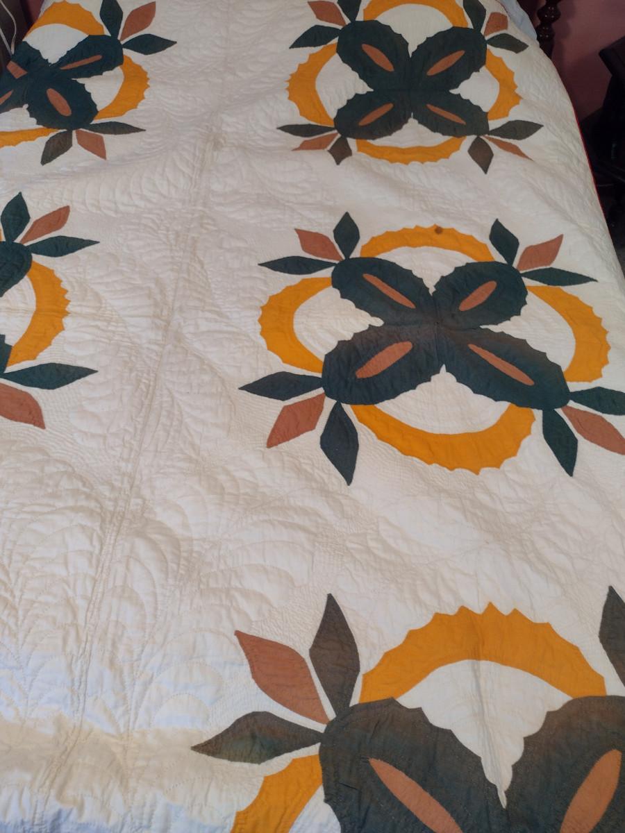 Quilted Coverlet- Approx 82" x 66". Backing has staining- please see all pictures for condition.