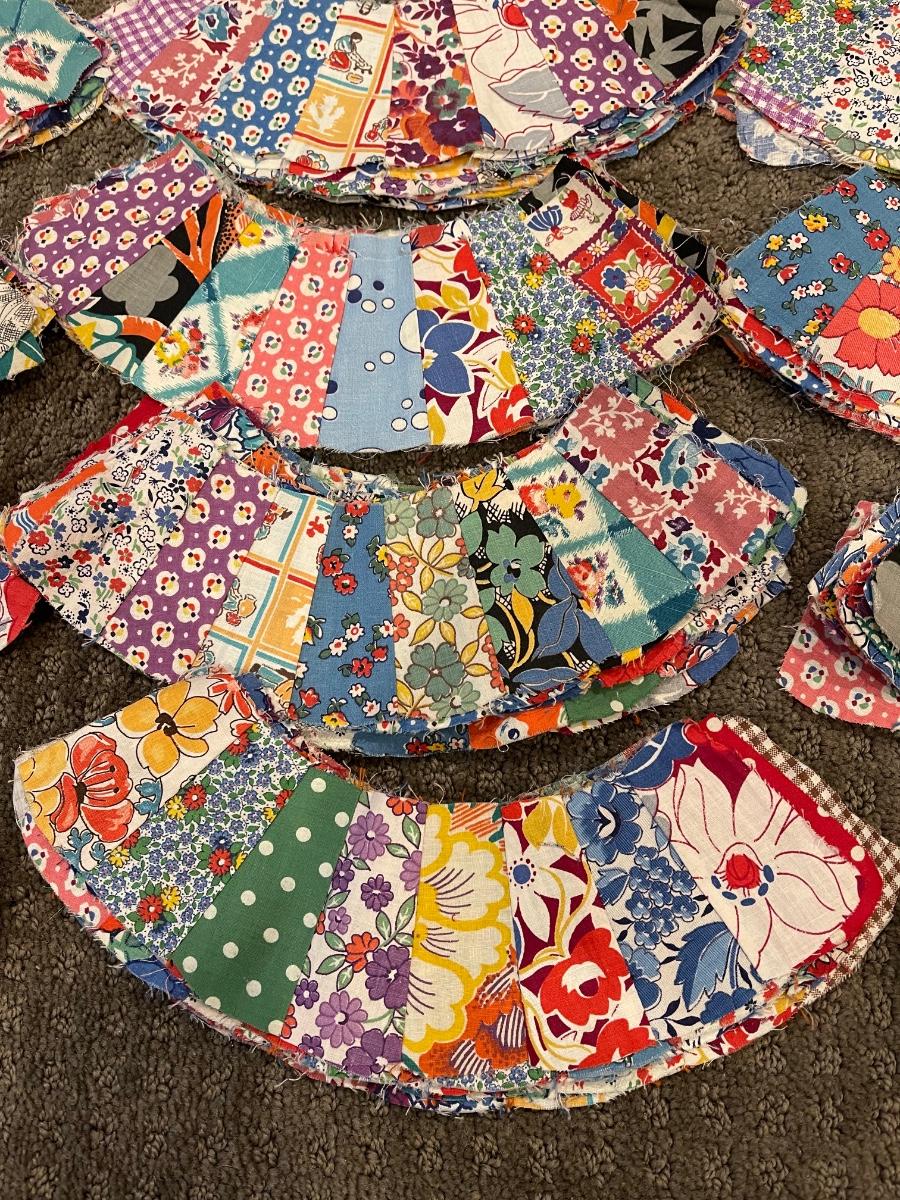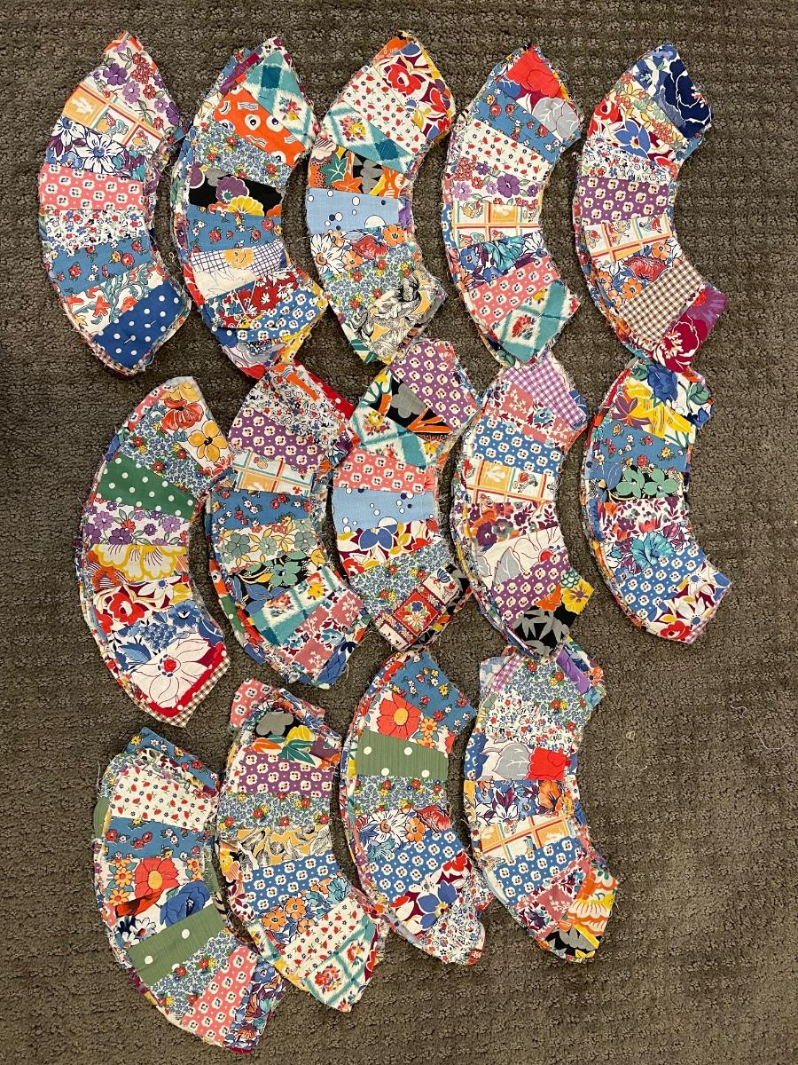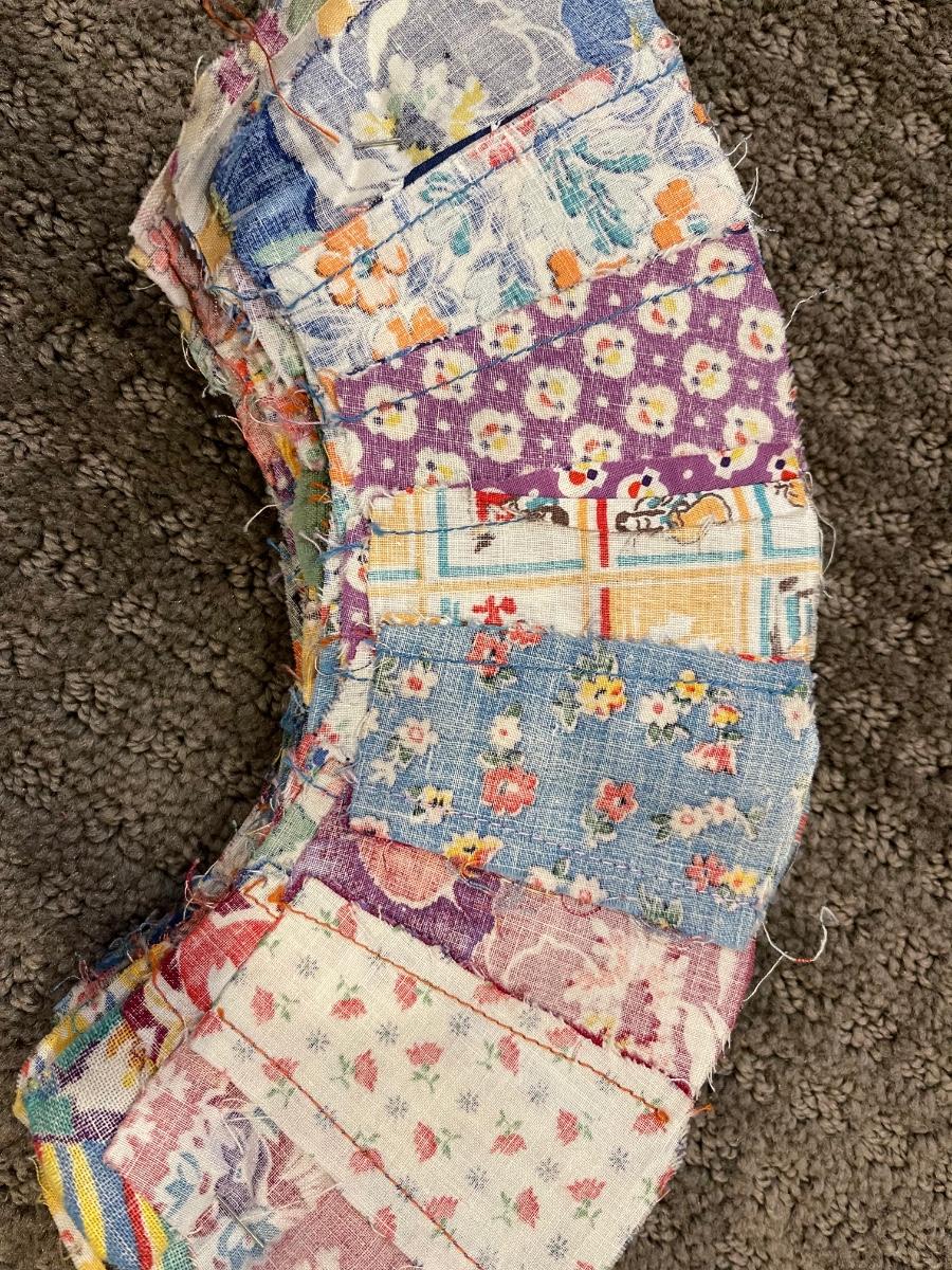 Vintage quilting pieces with great fabric. 168 pieces, all sewn and ready to quilt with.