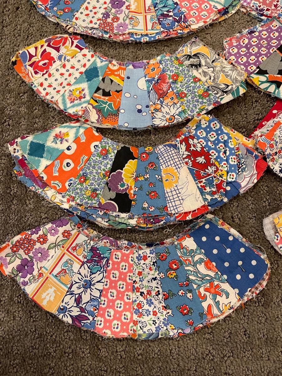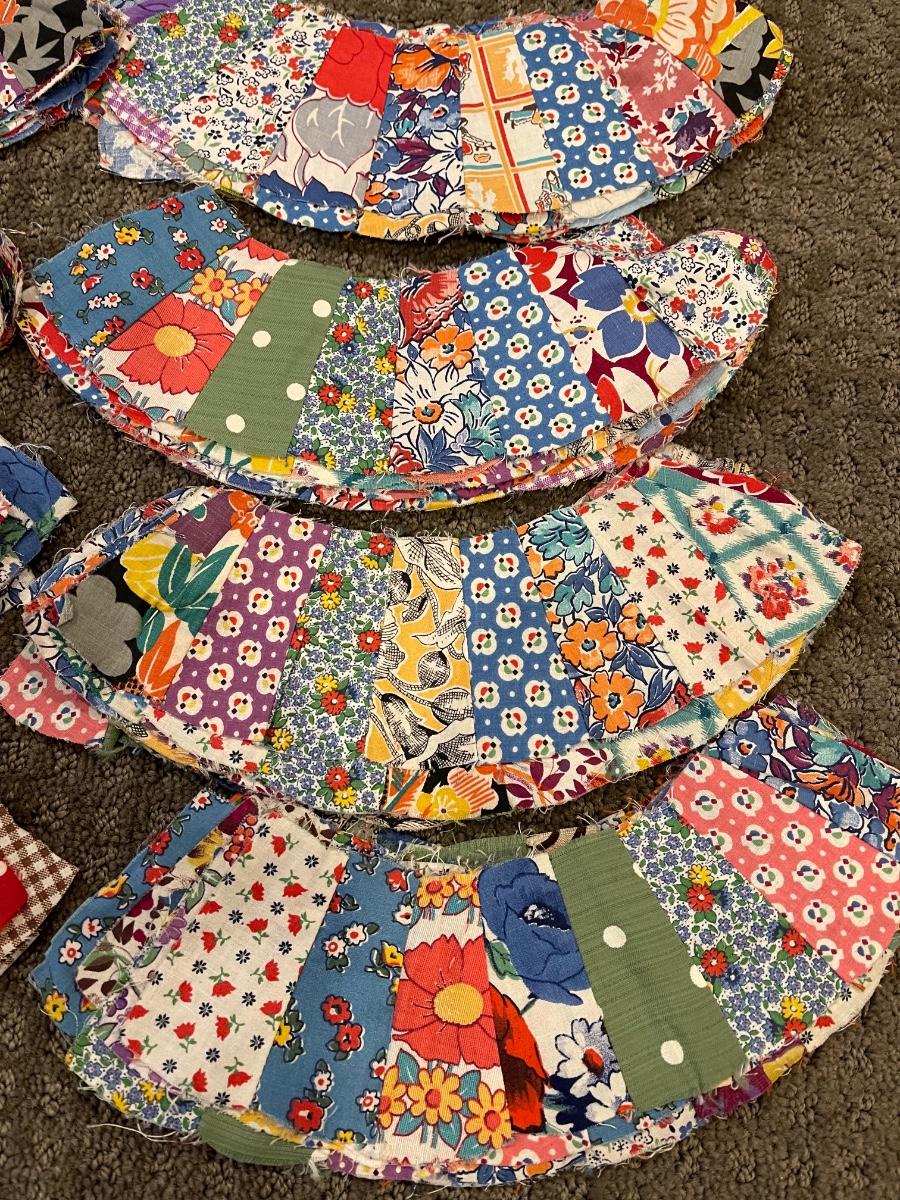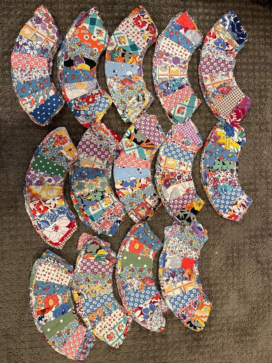 Vintage quilting pieces with great fabric. 168 pieces, all sewn and ready to quilt with.