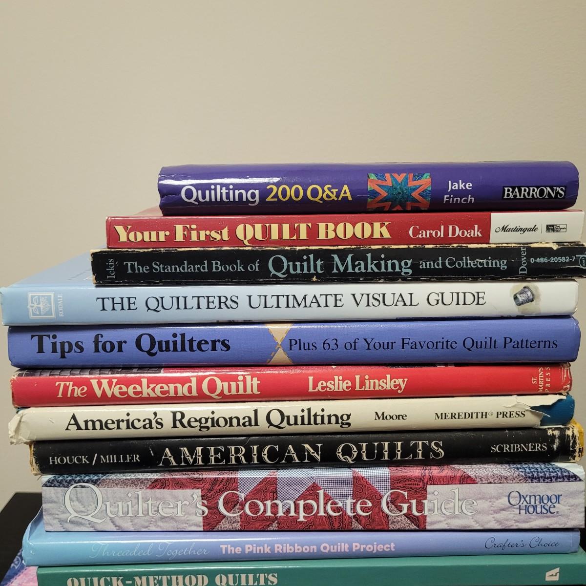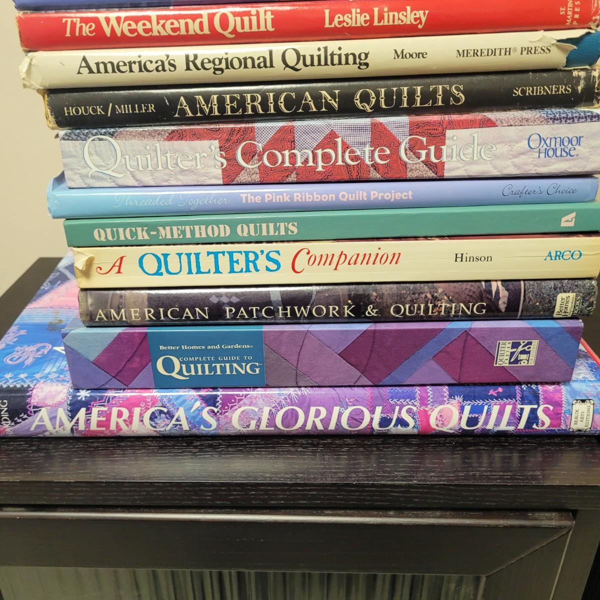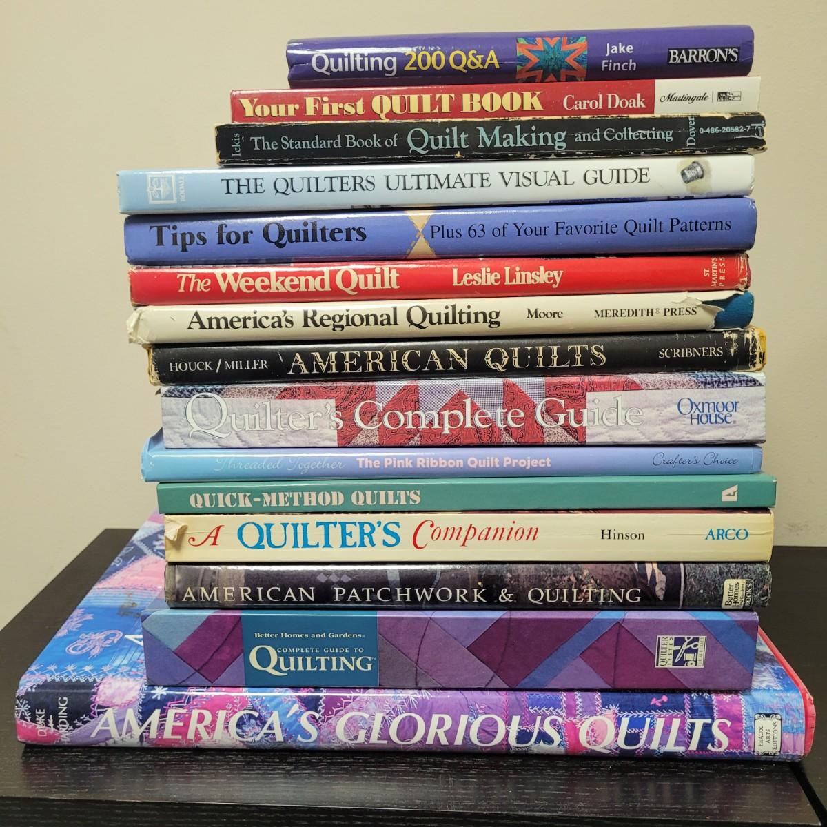 This lot includes 15 books to reference for quilting. Titles include "Your First Quilt Book", "The Quilters Ultimate Visual Guide", "Tips for Quilters", "American Quilts", "Quilters Complete Guide", "A Quilters Companion", "America's Glorious Quilts" and many more. These books are used and some show small signs of age. Most are hardback, but about four are paperback.