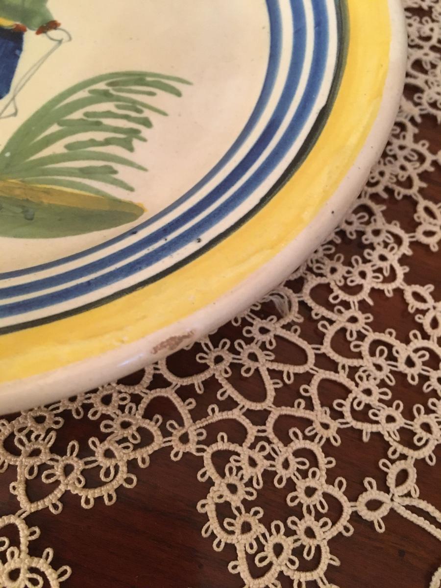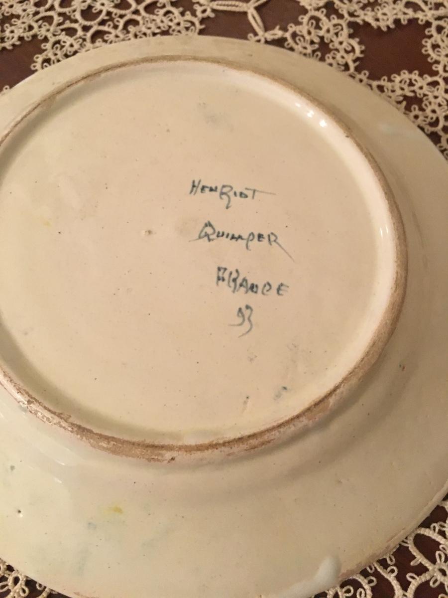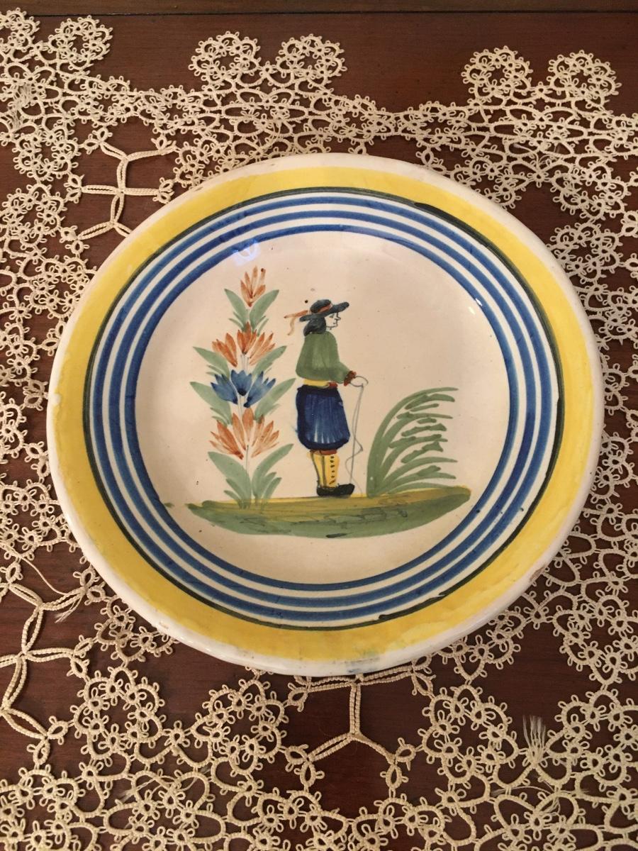 Vintage Henriot Quimper French Provincial Plate France French Charming Small Painted Bowl Trinket Dish French Breton Figure Cottage Core. Small chip in rim.