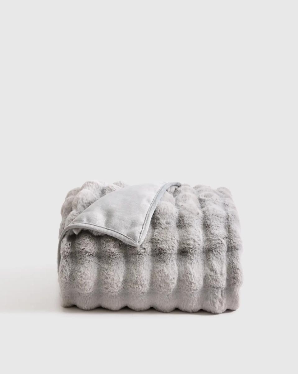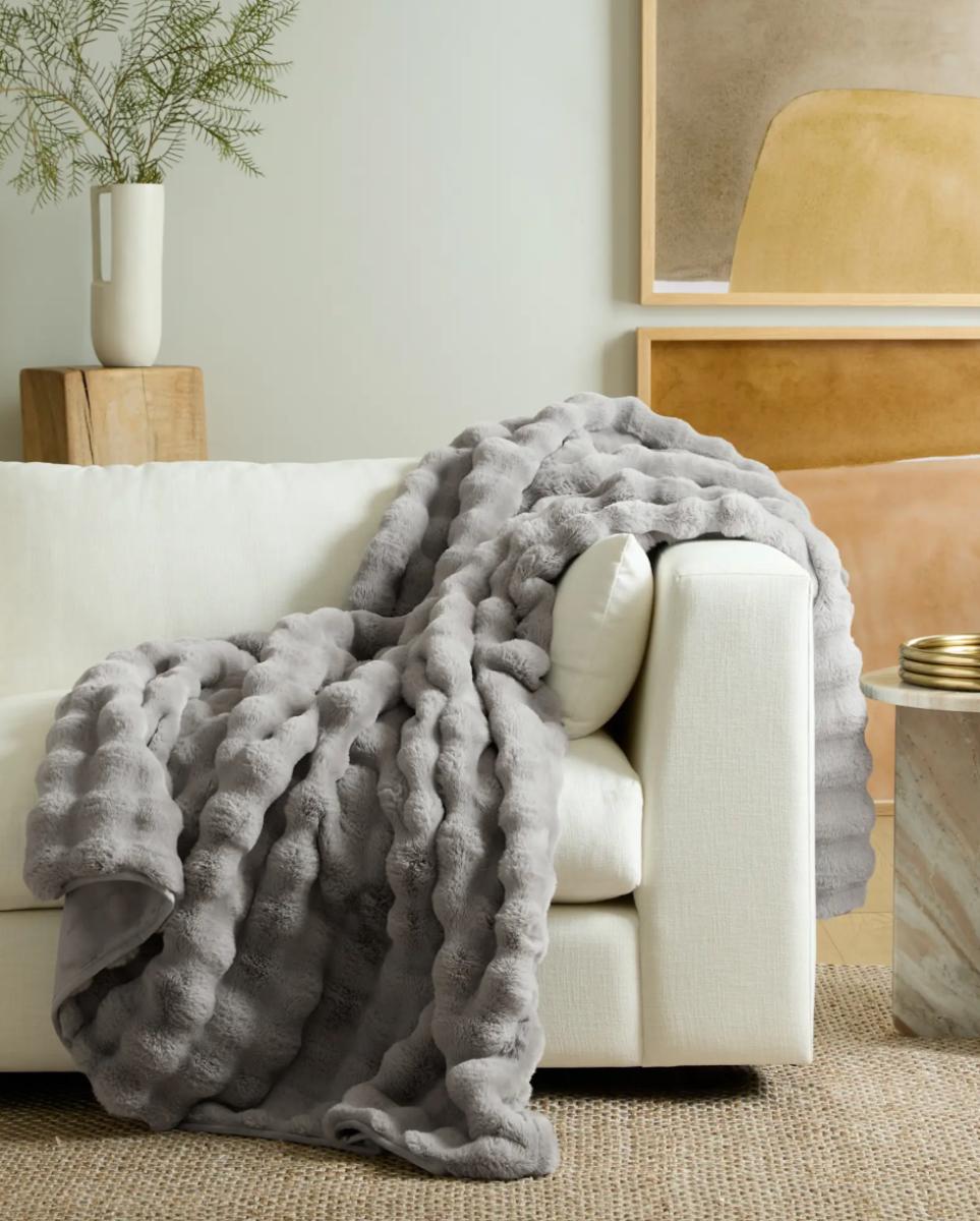 Quince Ruched Faux Fur Throw in Glacier Gray - 50" x 60" Throw Blanket, Home Decor, Bedroom Decorations, Living Room Decor