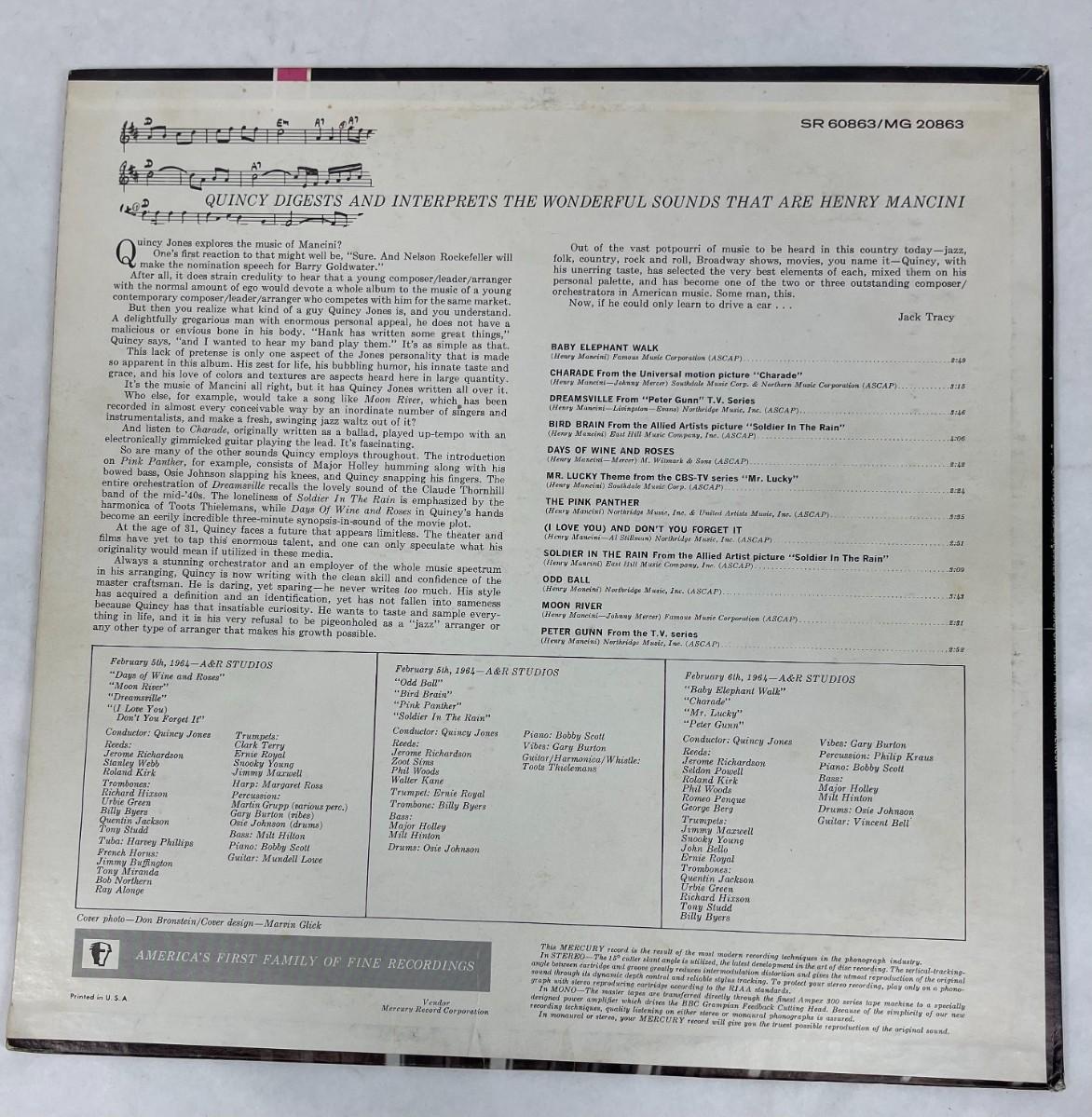 Quincy Jones Henri Mancini Vintage Vinyl Record Album