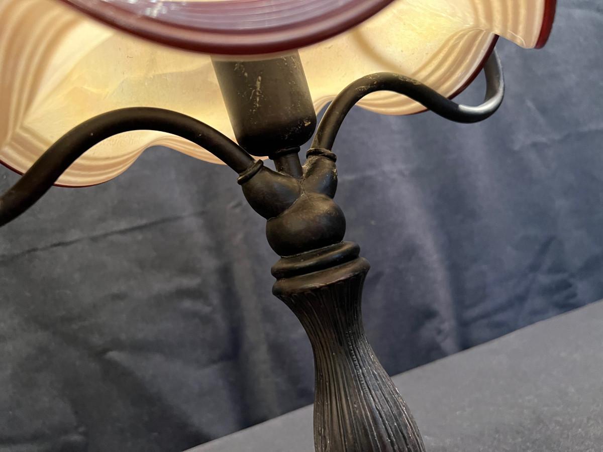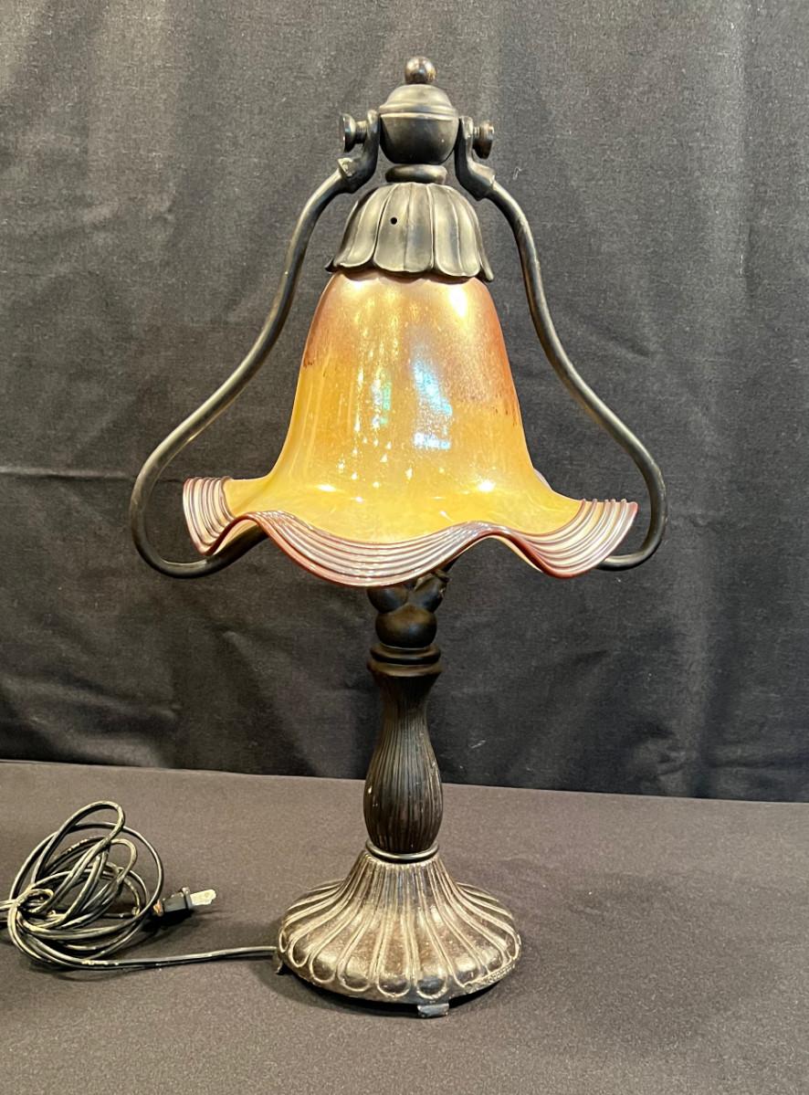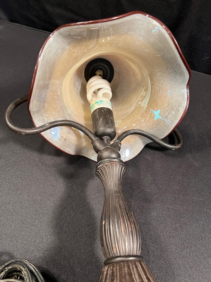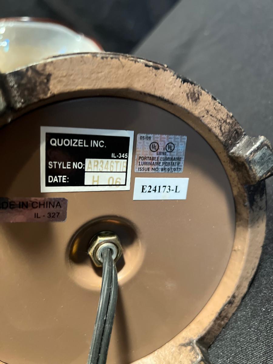 Quoizel Antique Reproduction Table Lamp Bronze w/Glass Shade