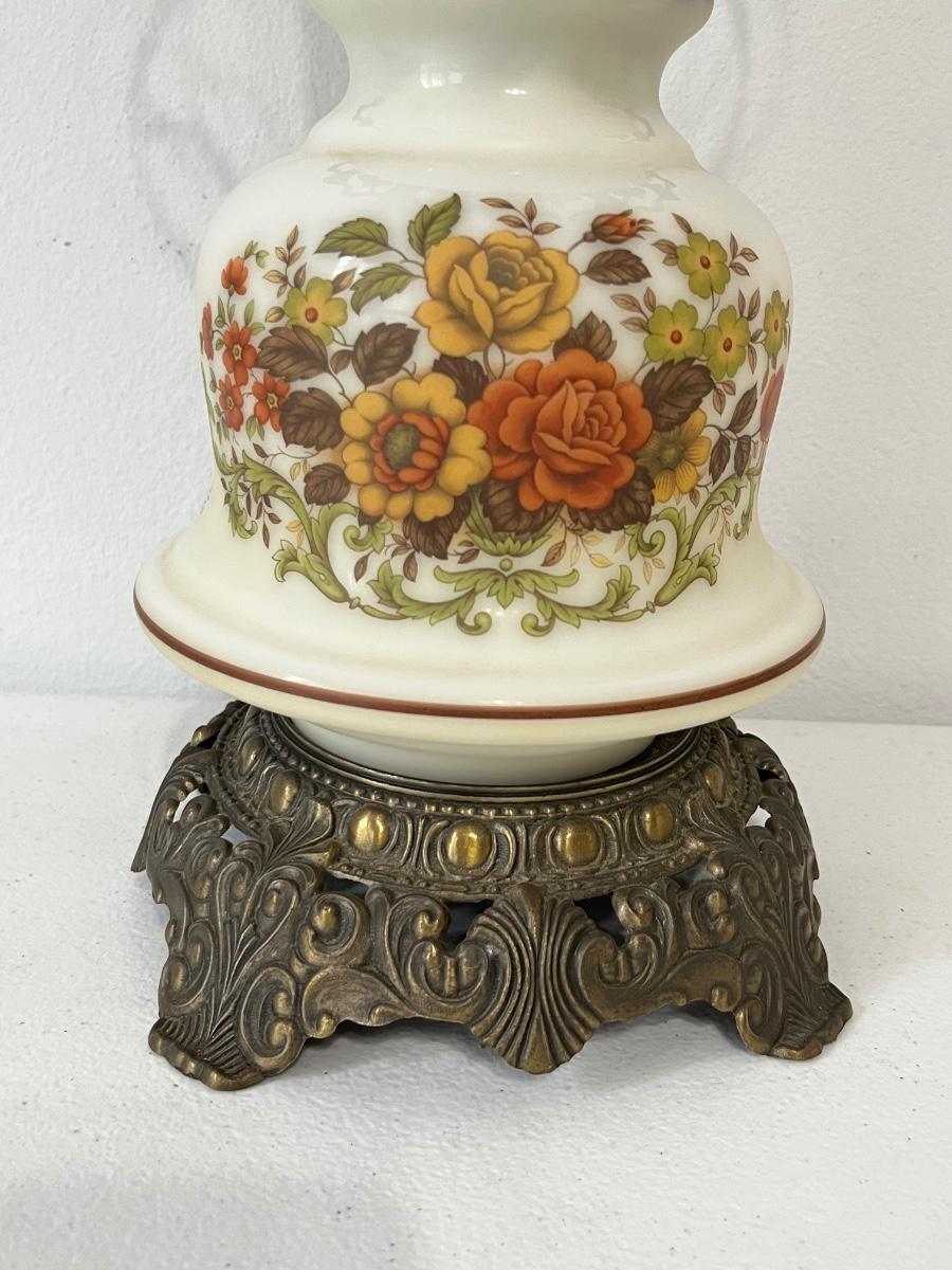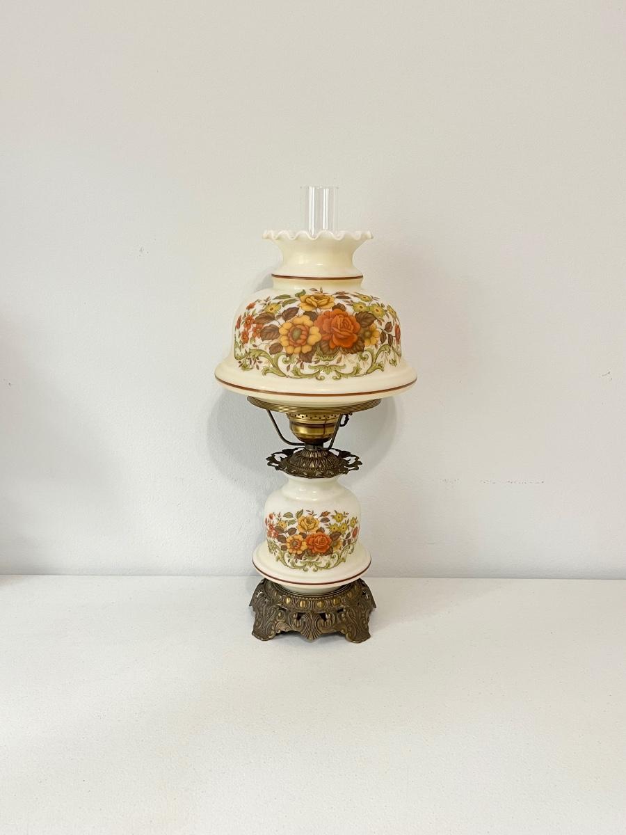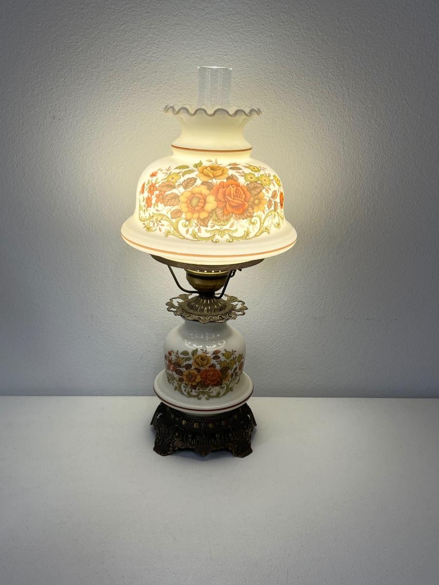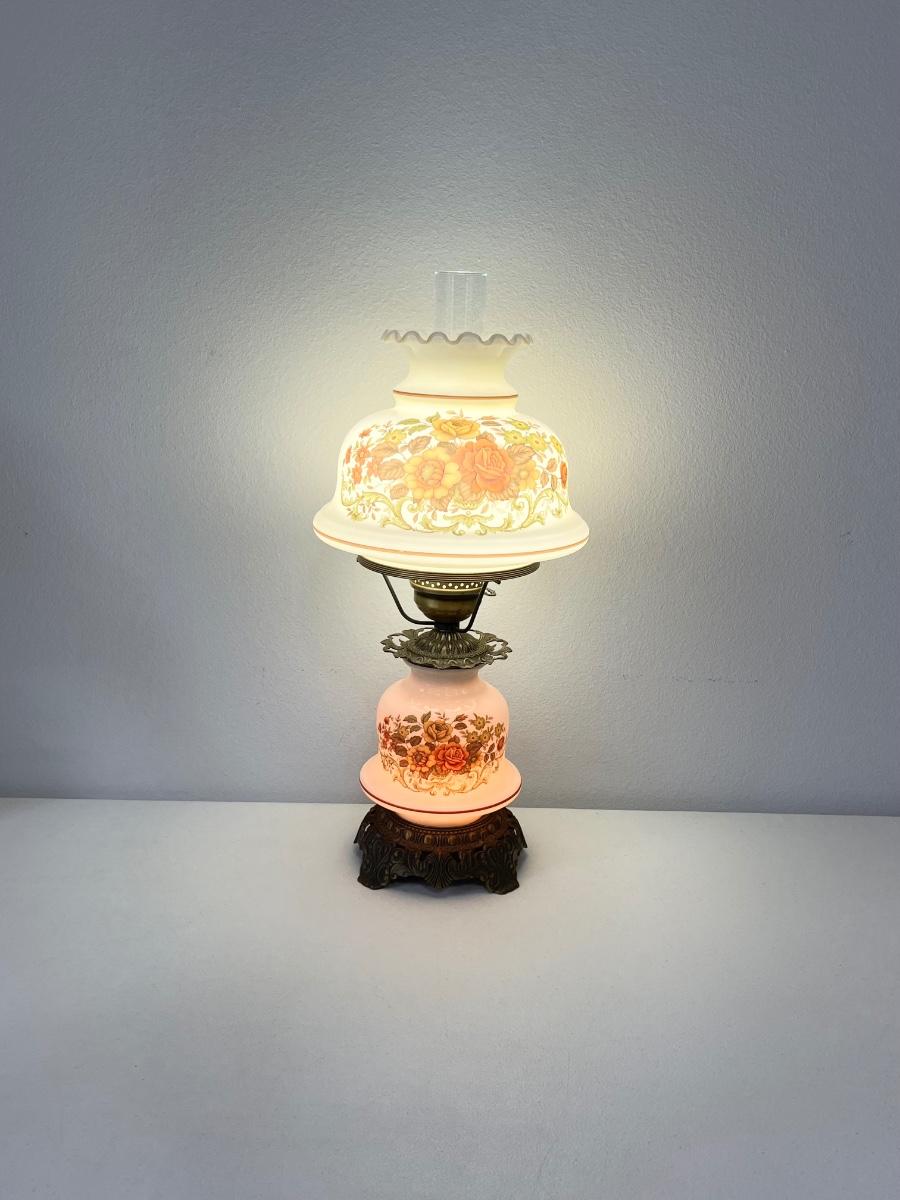 QUOIZEL INC. ~ Pair (2) Vtg. Floral Glass & Metal Hurricane Lamps ~*Read Details