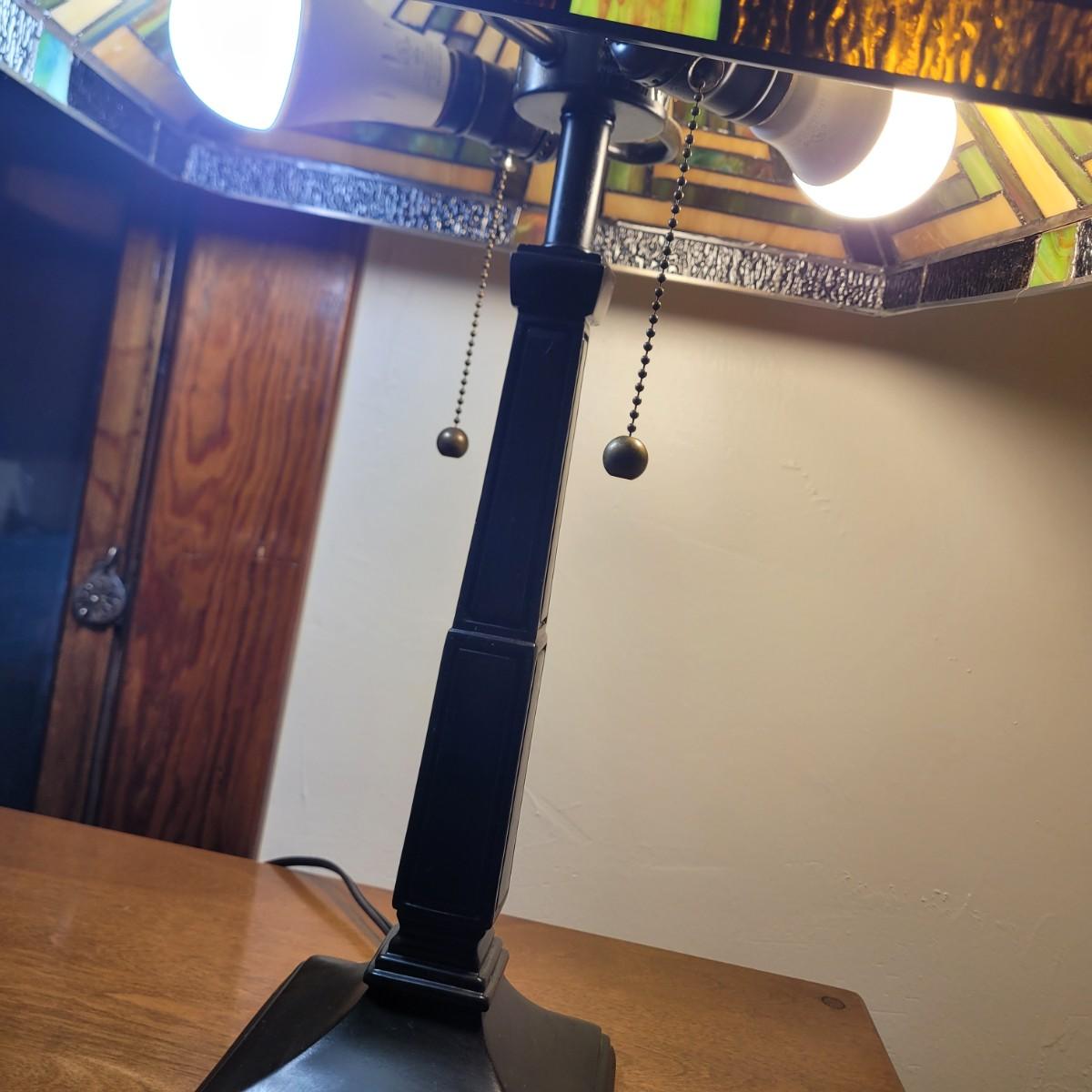 If I were a table lamp, this is the table lamp I'd like to be. 23 inches tall and the shade is 16" square. Turn off 1 bulb or use them both. Heavy and nice and it could be yours.