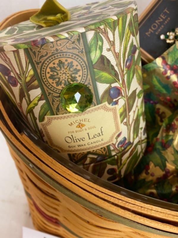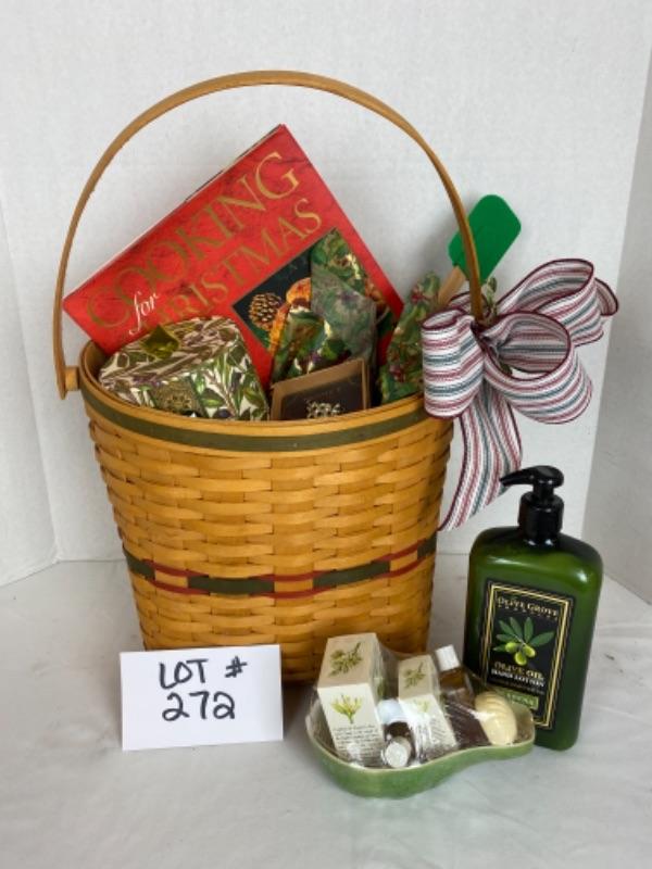 Olive Oil & Avocado Basket with cookbook, jewelry, candles, soups , lotion, cooking spatulas