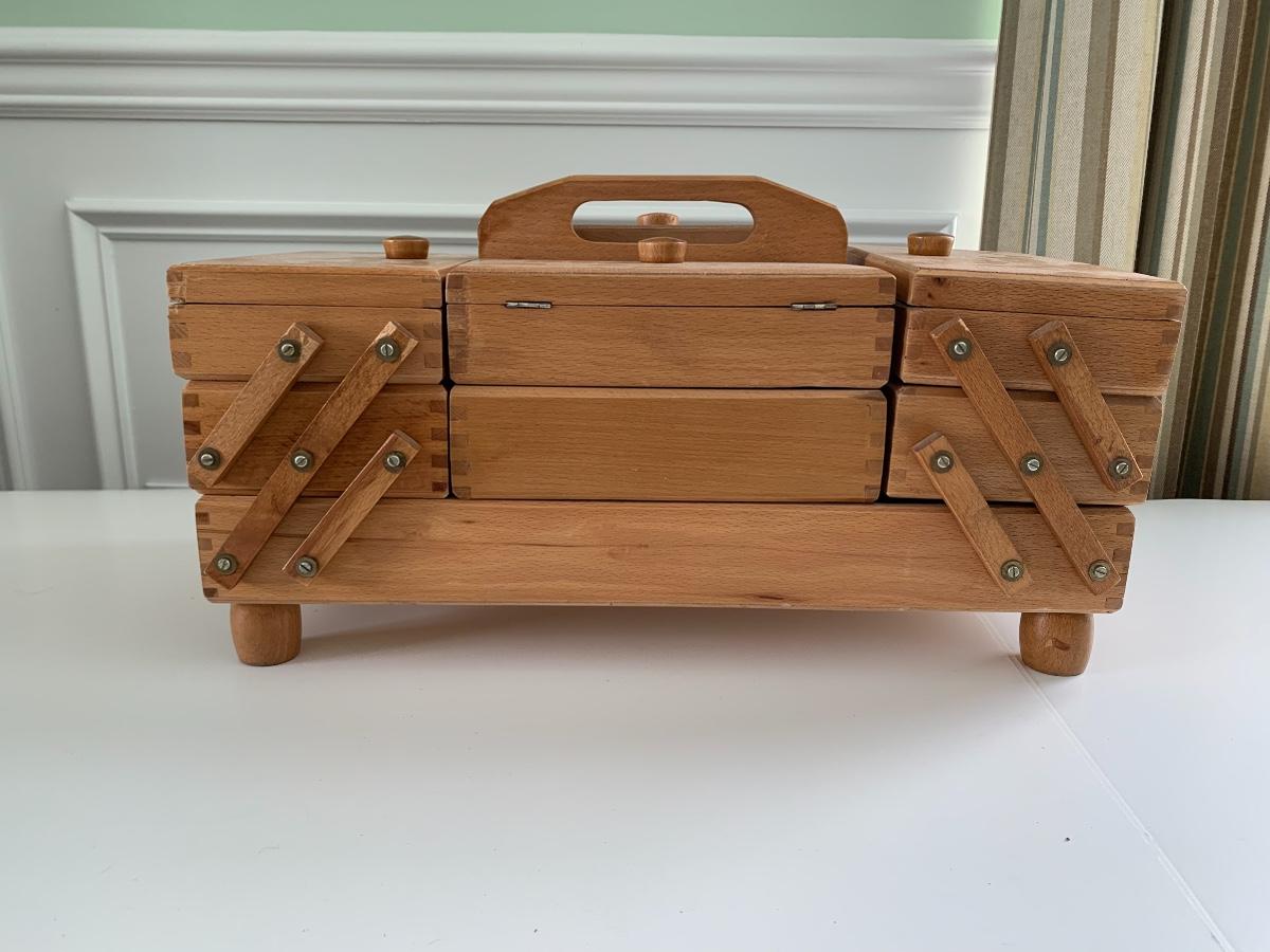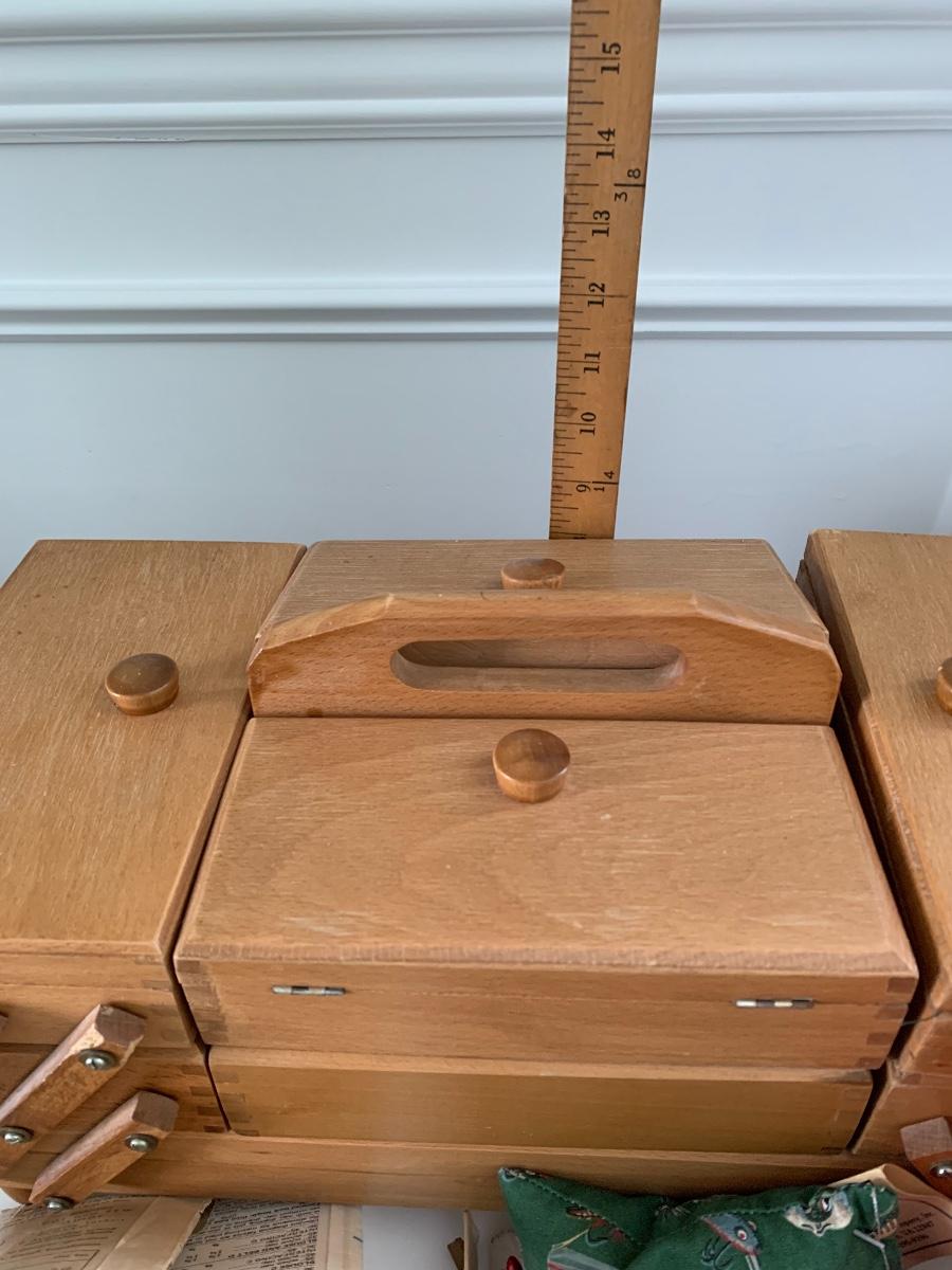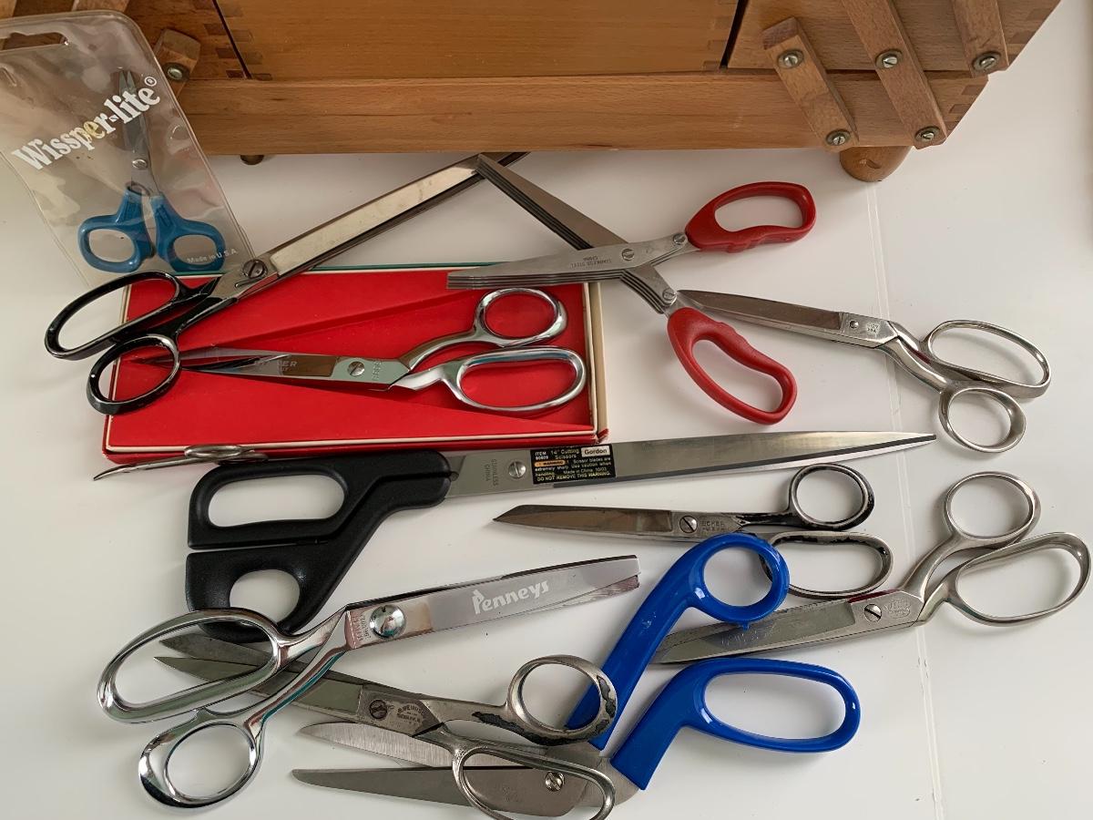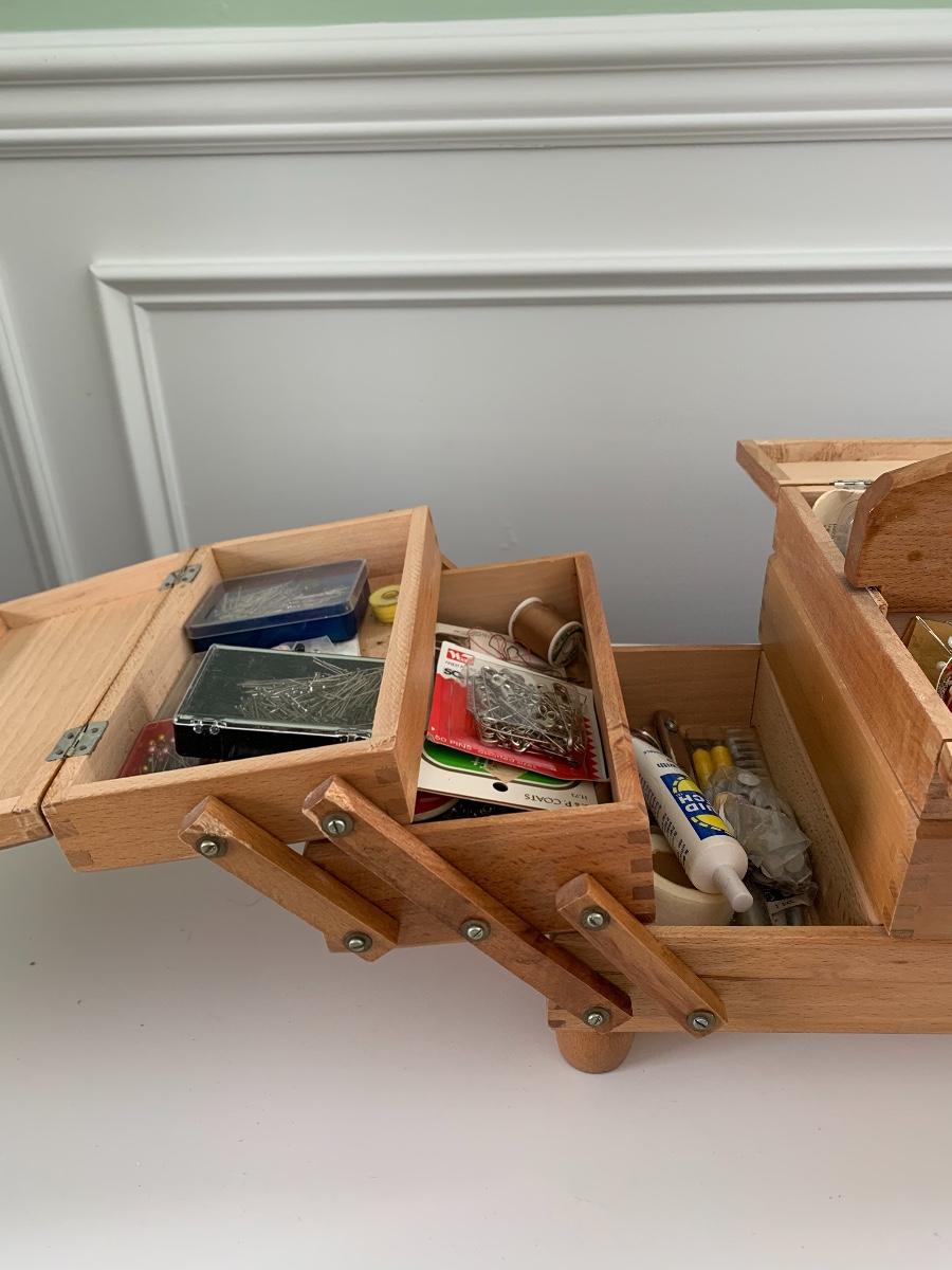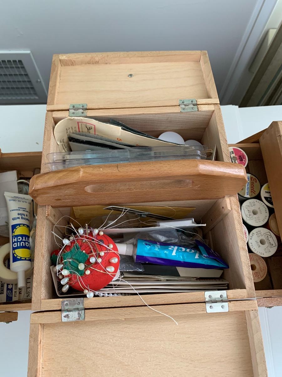 Fold out sewing box filled with sewing notions, Scissors, Knitting & Crochet Needles and more'