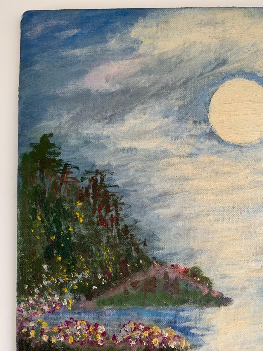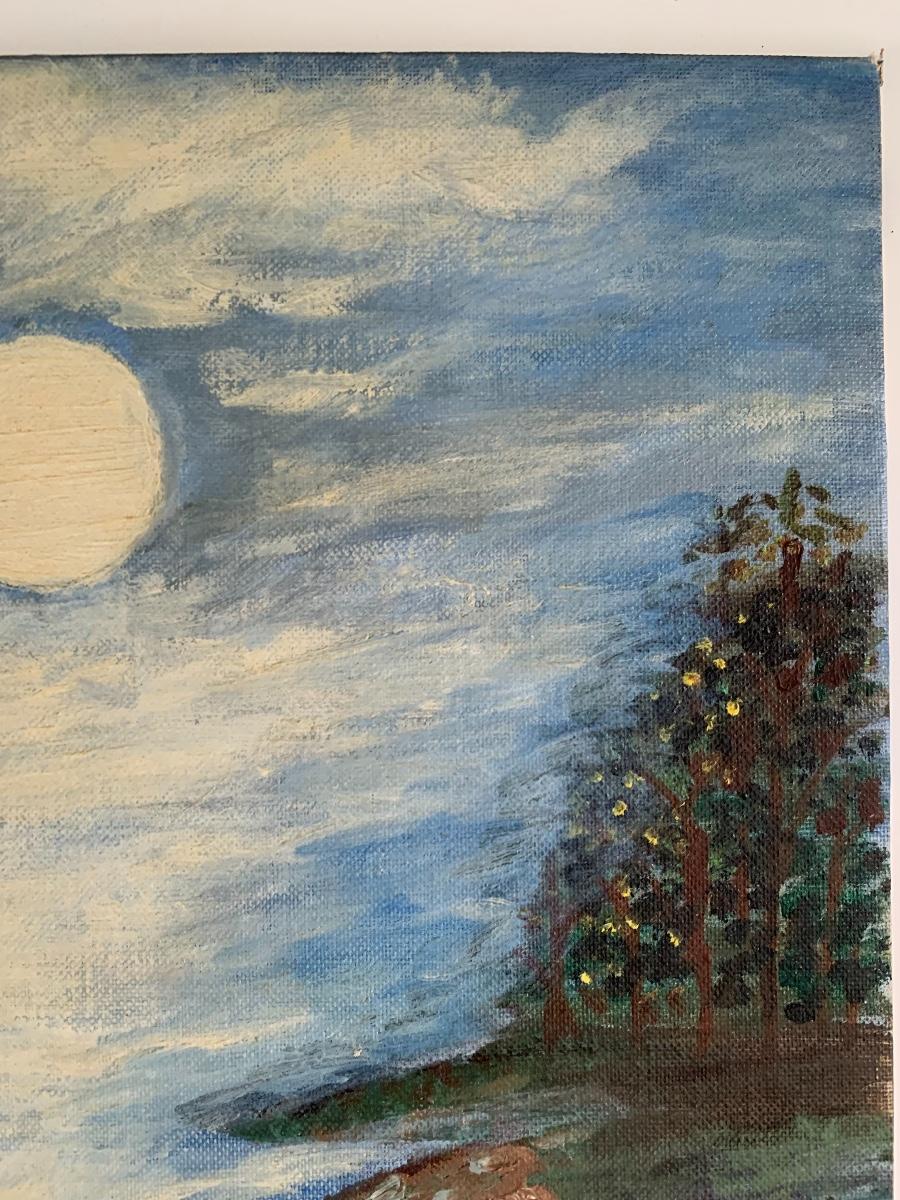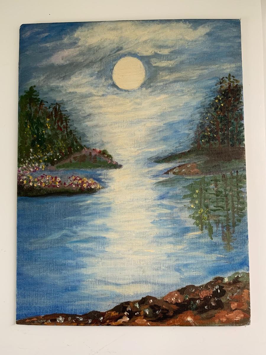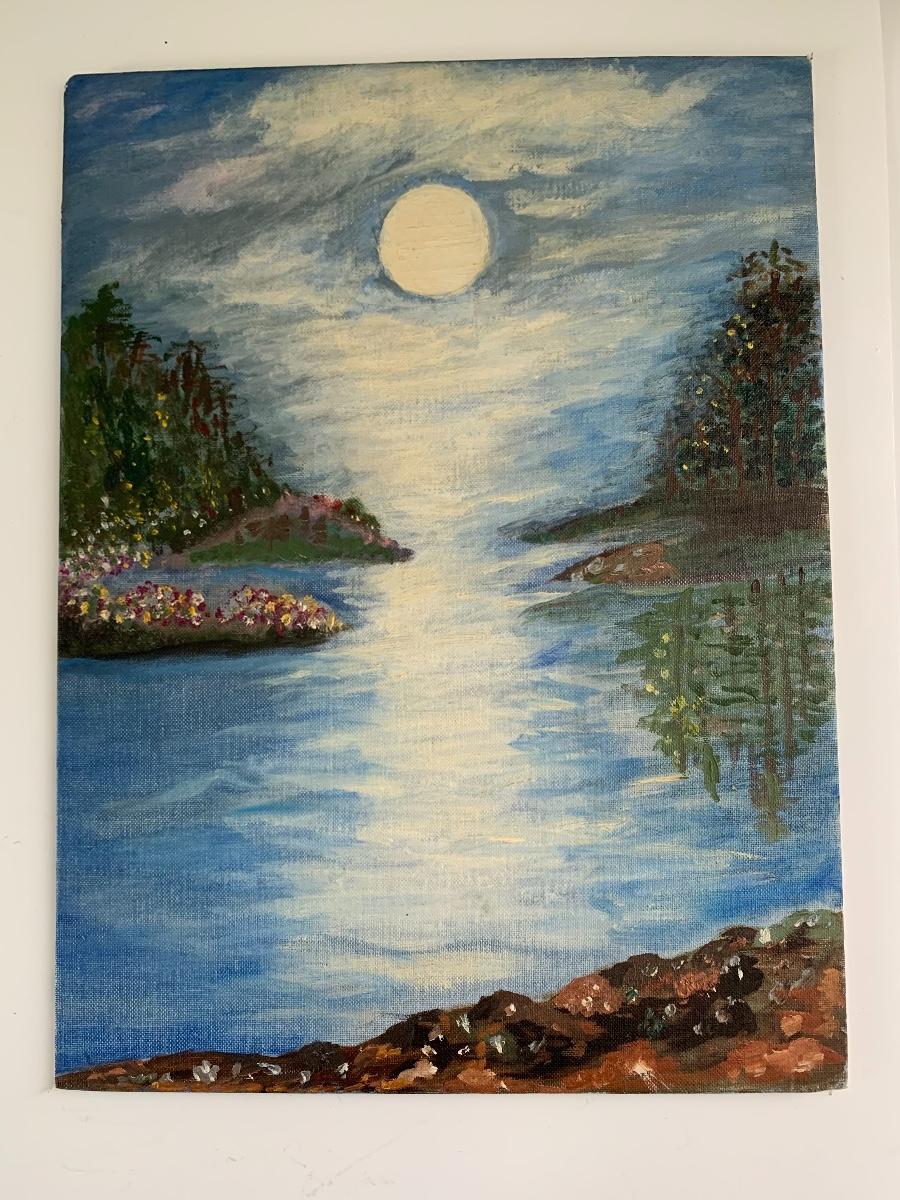 Reflection of Moon on River painting by Anna MacMaster, March 1969 (12 x 16)