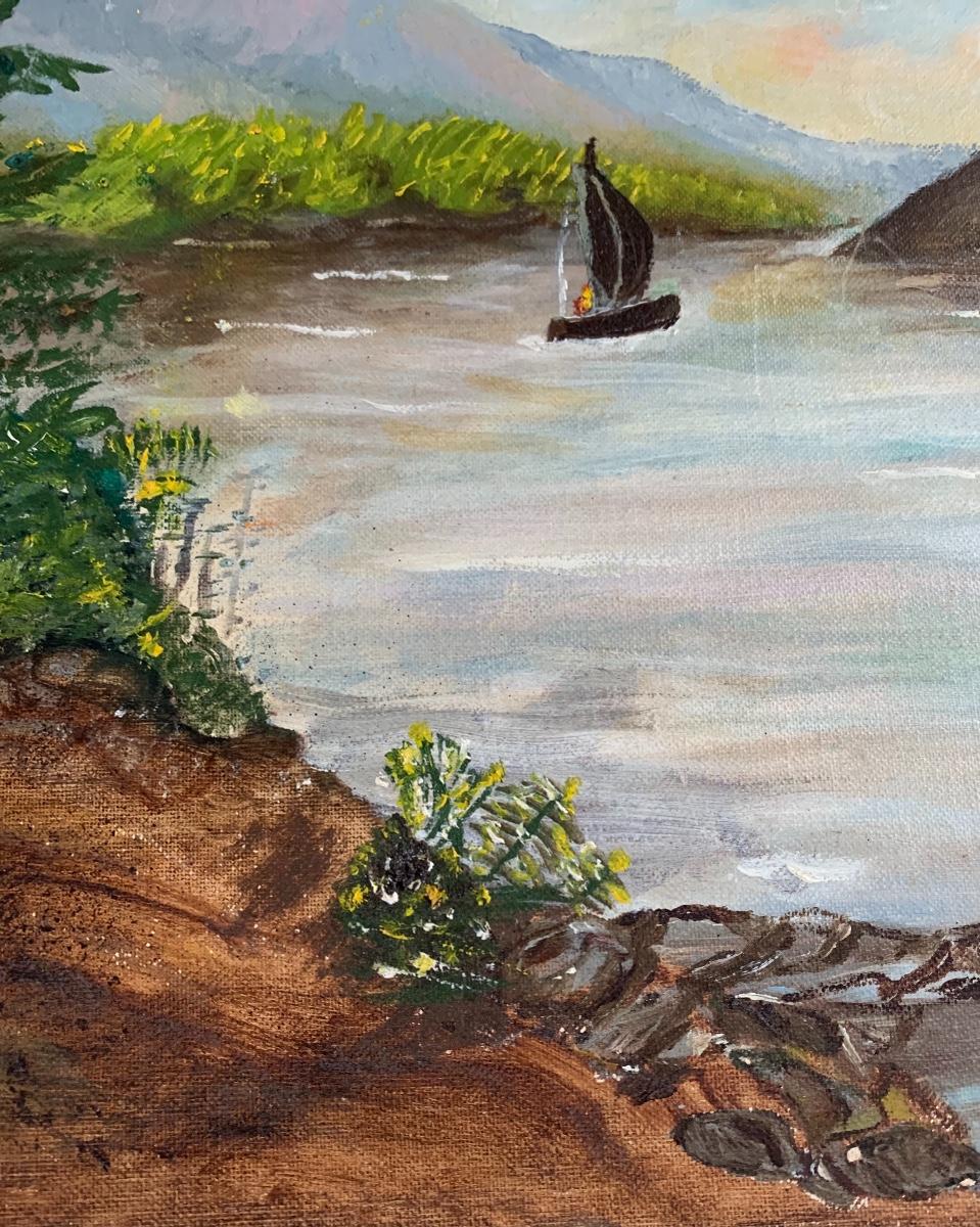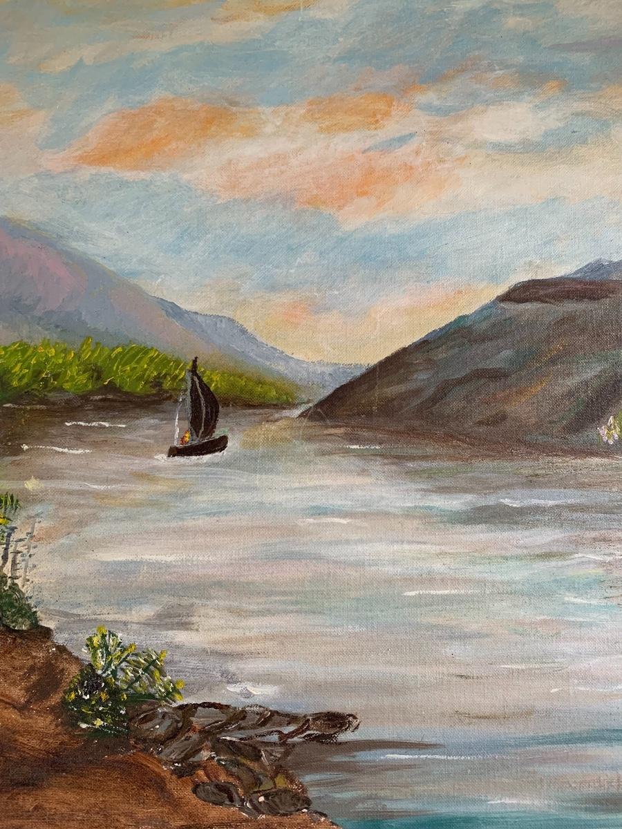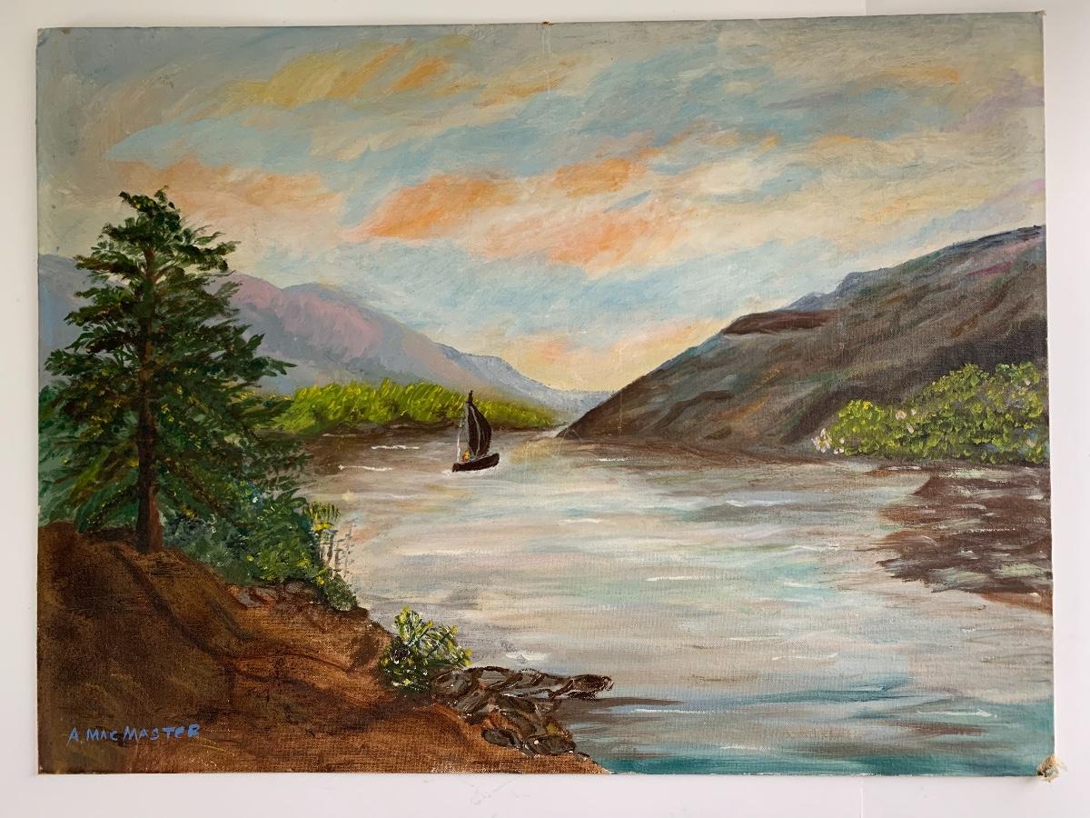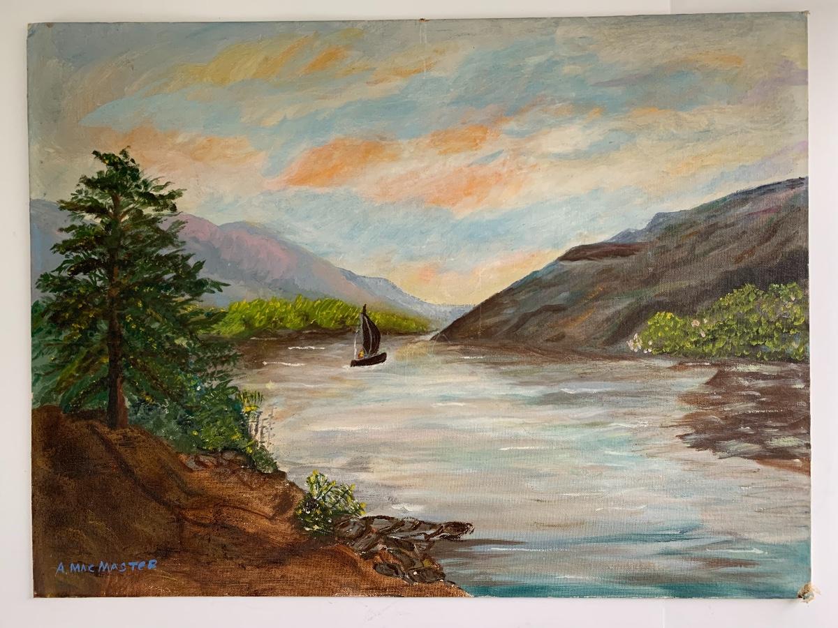 Vintage Painting Signed by Anne MacMaster (18 x24). Minimal damage to corners of painting.