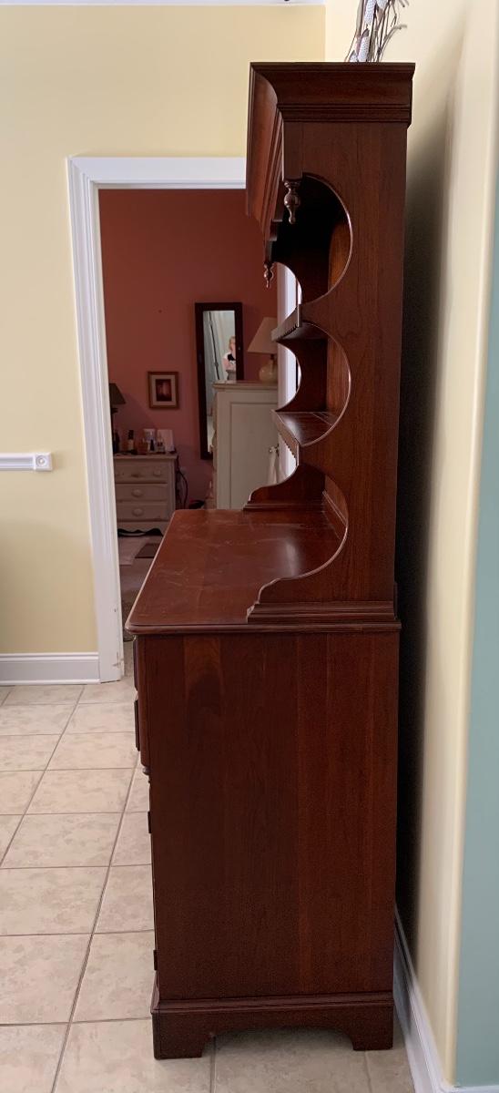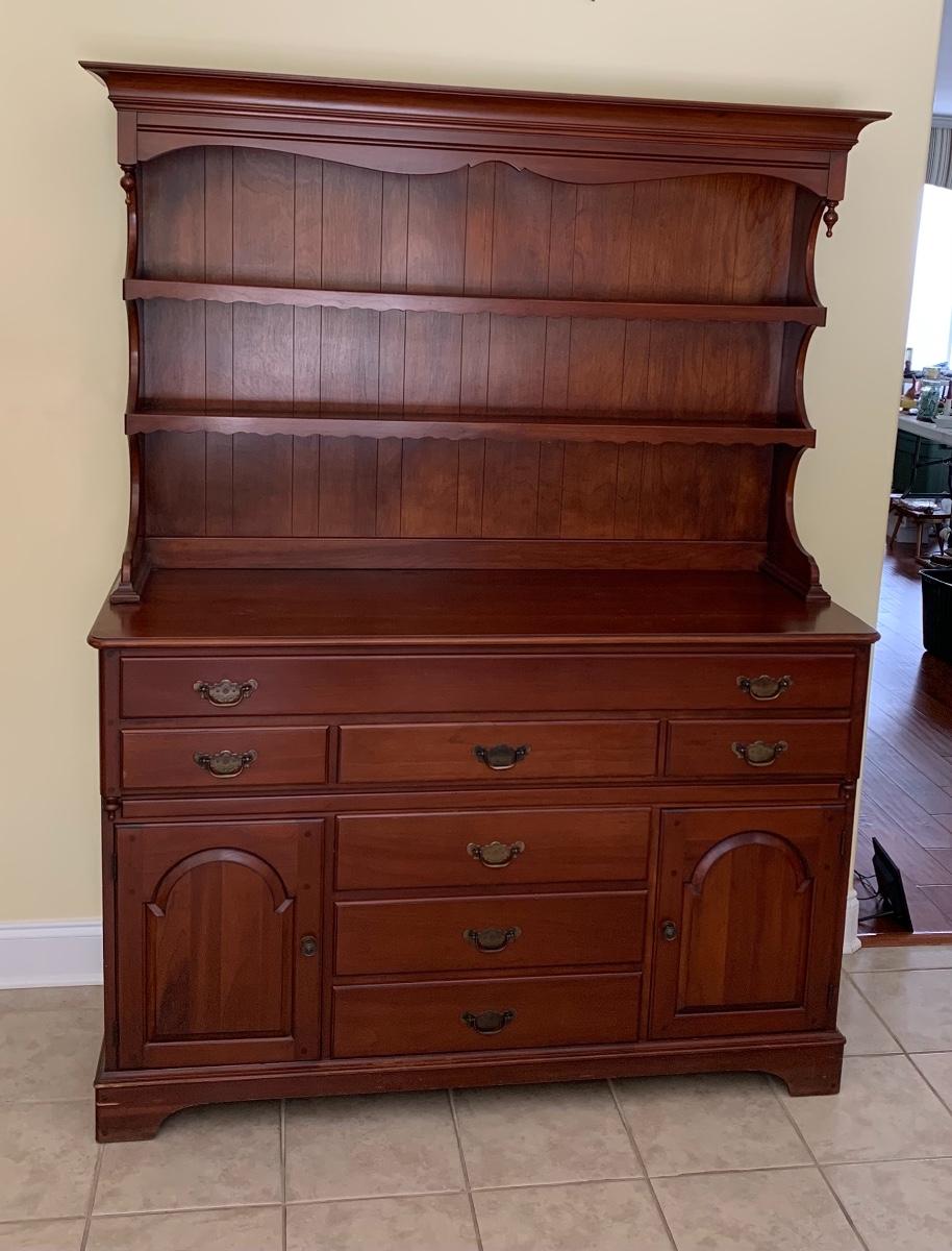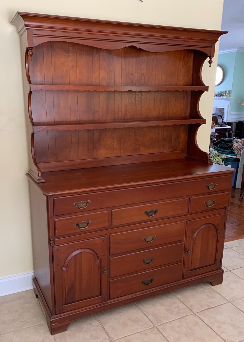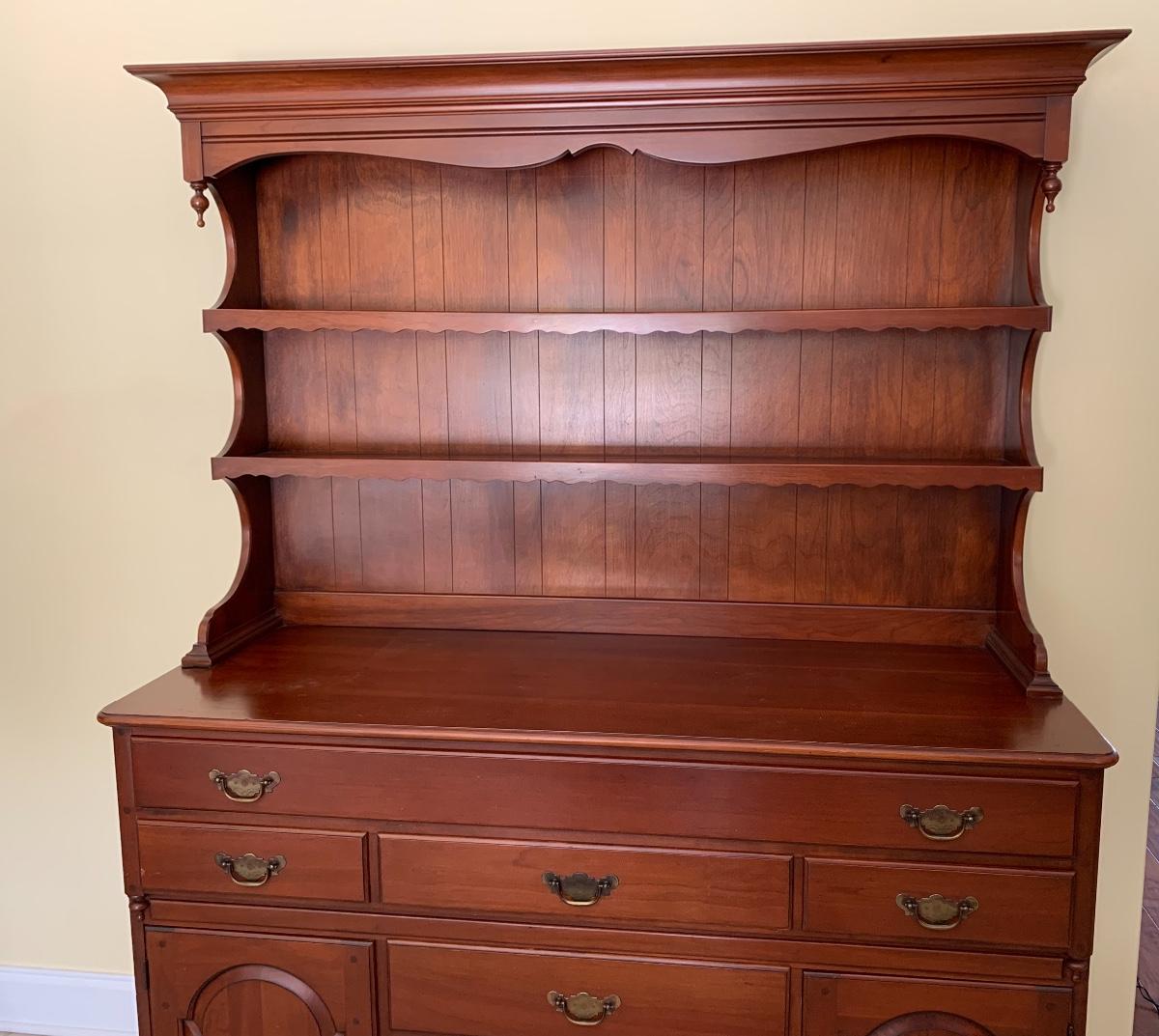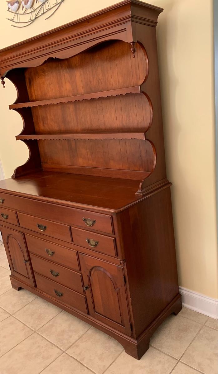 Beautiful Solid Wood furniture with minor nicks (easy to fix with stain marker). This is designed like a Pennsylvania House Hutch but is made by Lewisburg Chair Company.