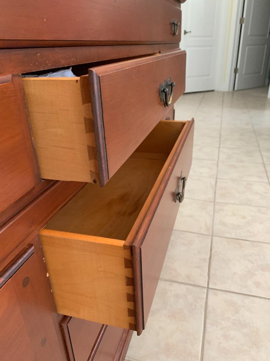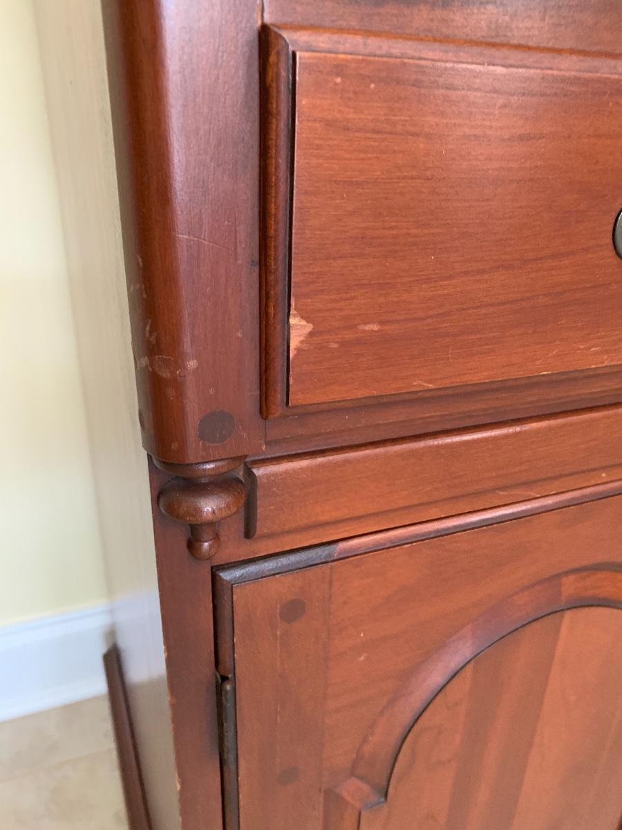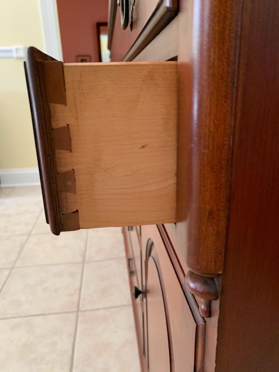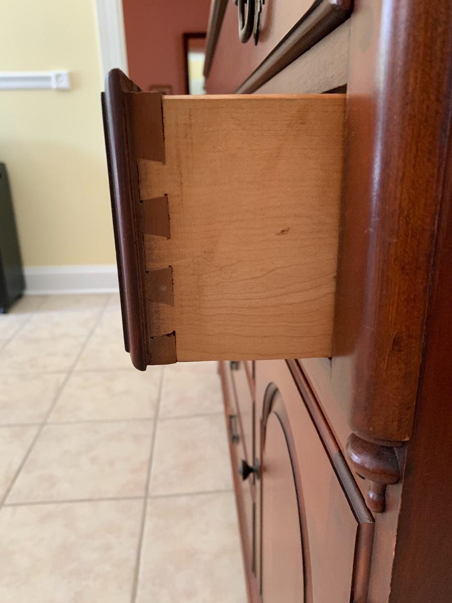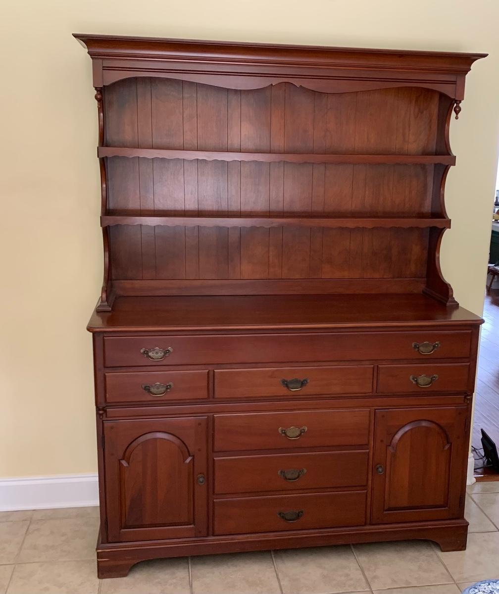 Beautiful Solid Wood furniture with minor nicks (easy to fix with stain marker). This is designed like a Pennsylvania House Hutch but is made by Lewisburg Chair Company.