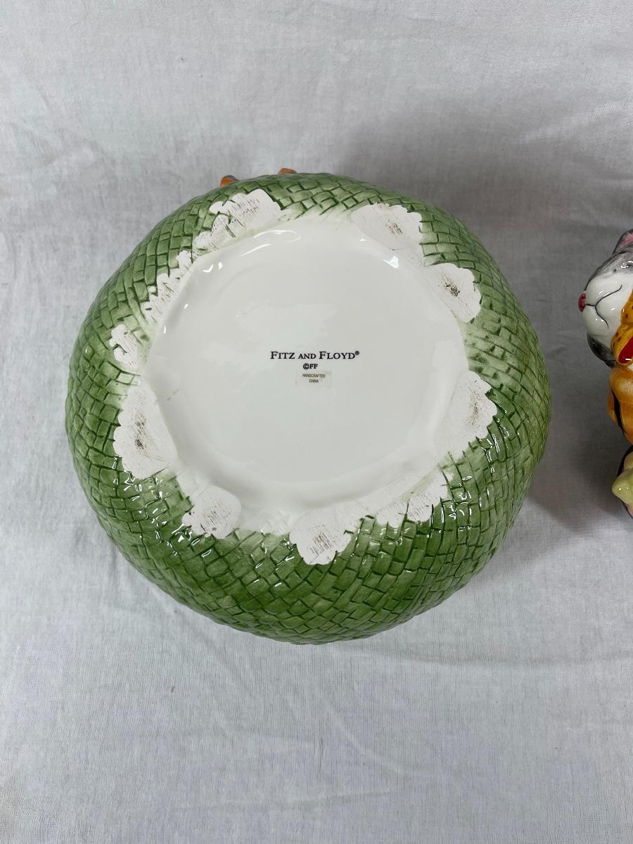 Cute vintage Fitz and Floyd cookie jar. Halloween themed with a witch, ghost, black cat, vampire and more. Good condition, no chips, may have light crazing.