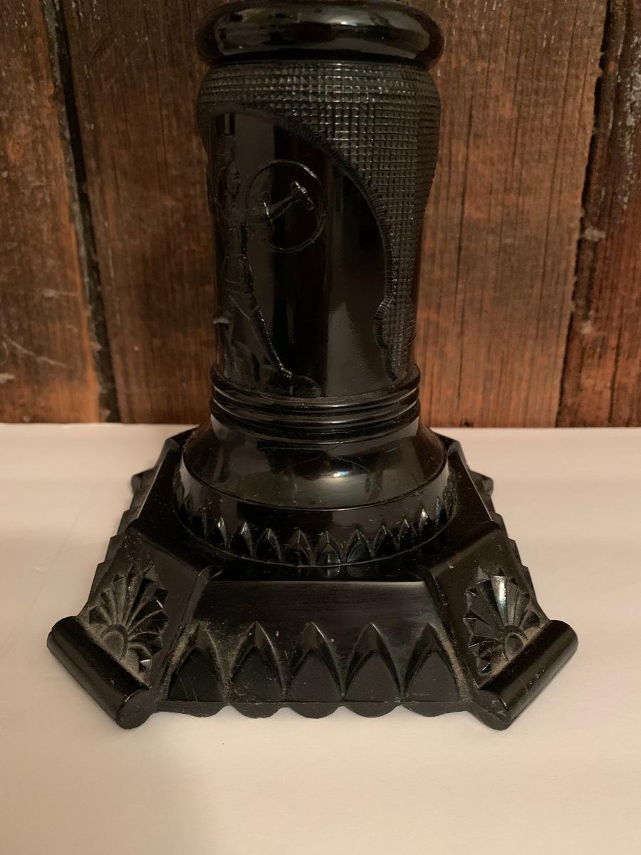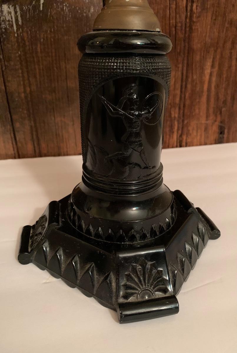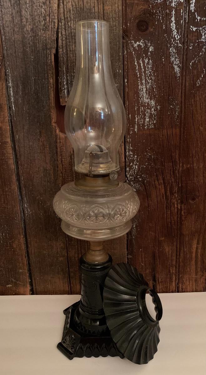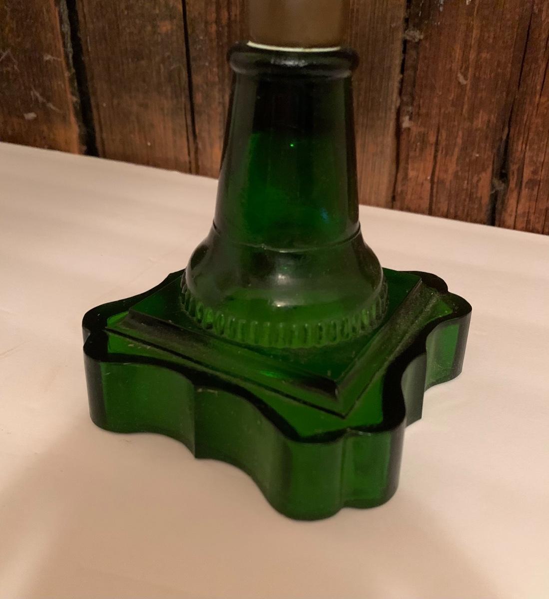 Antique/Vintage green, black and milk glass oil lamps.. More ornate/decorative than the average oil lamp.