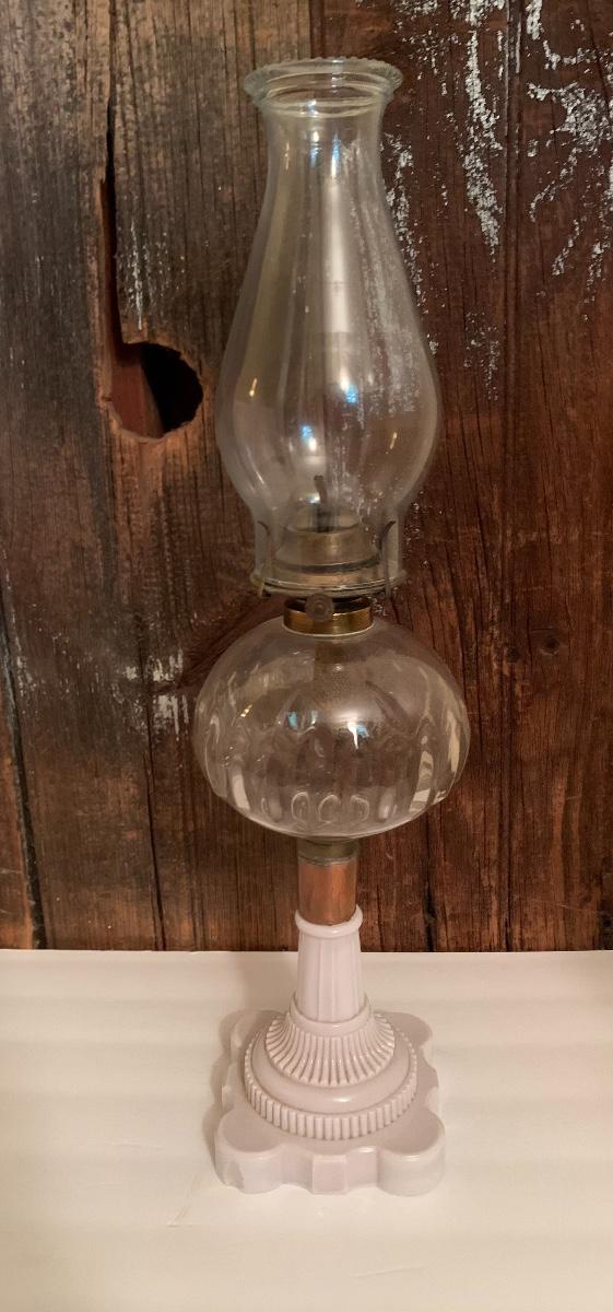 Lot 35: Antique Oil Lamps w/Colorful Glass Bases
