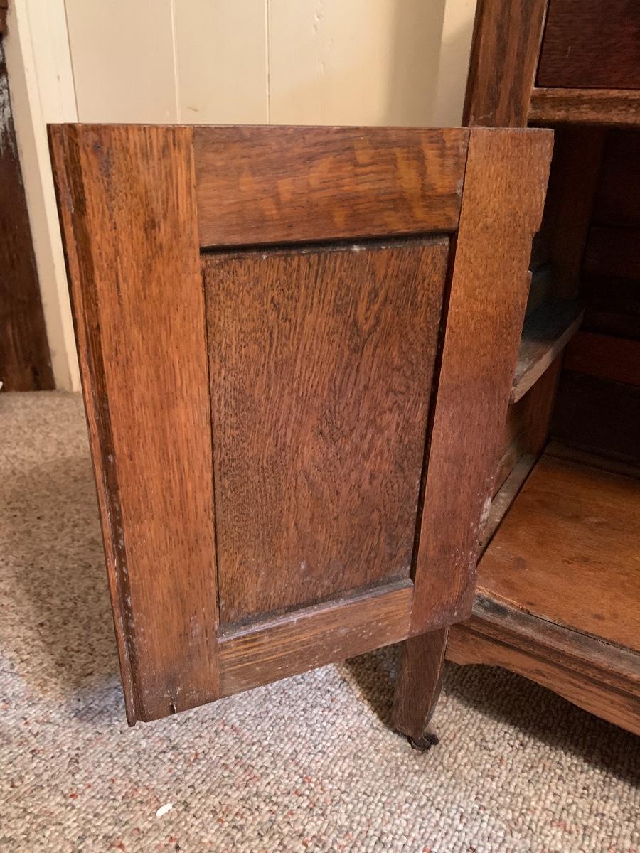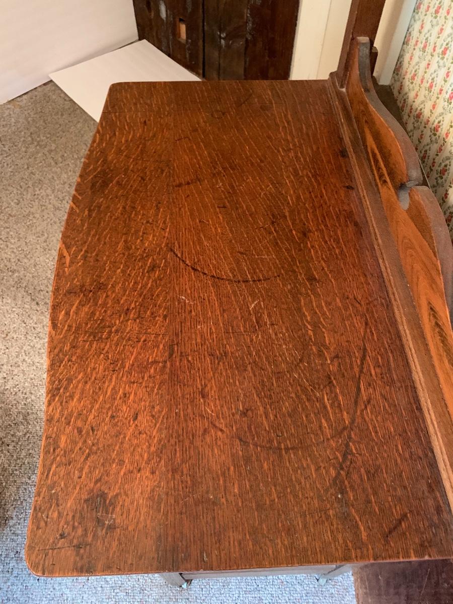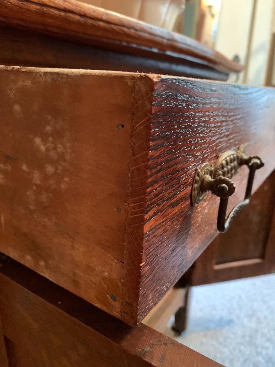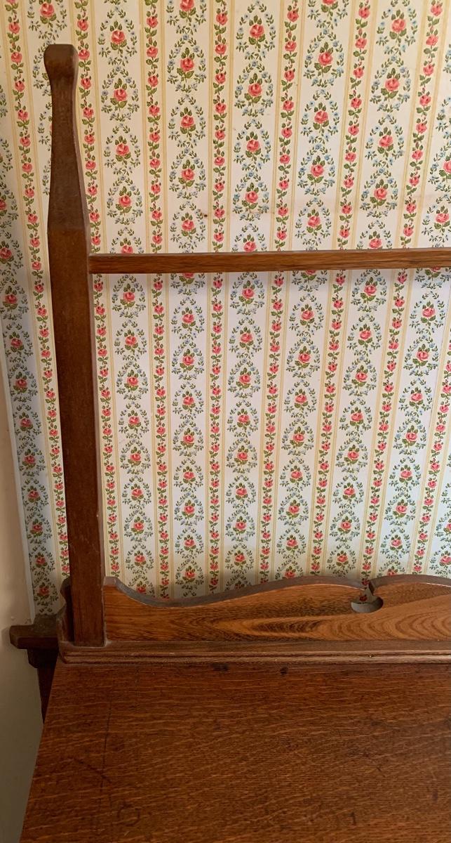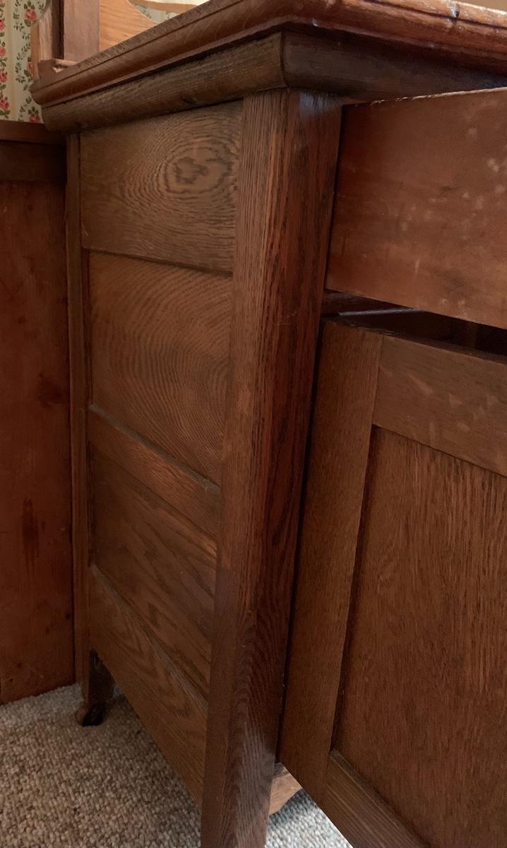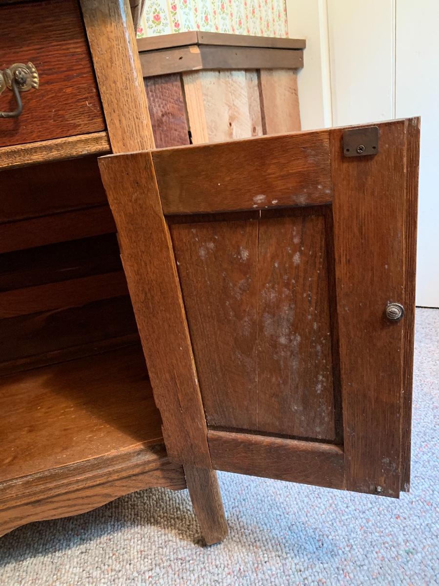 Vintage Oak Washstand along with Handmade Pitcher & Bowl Set.