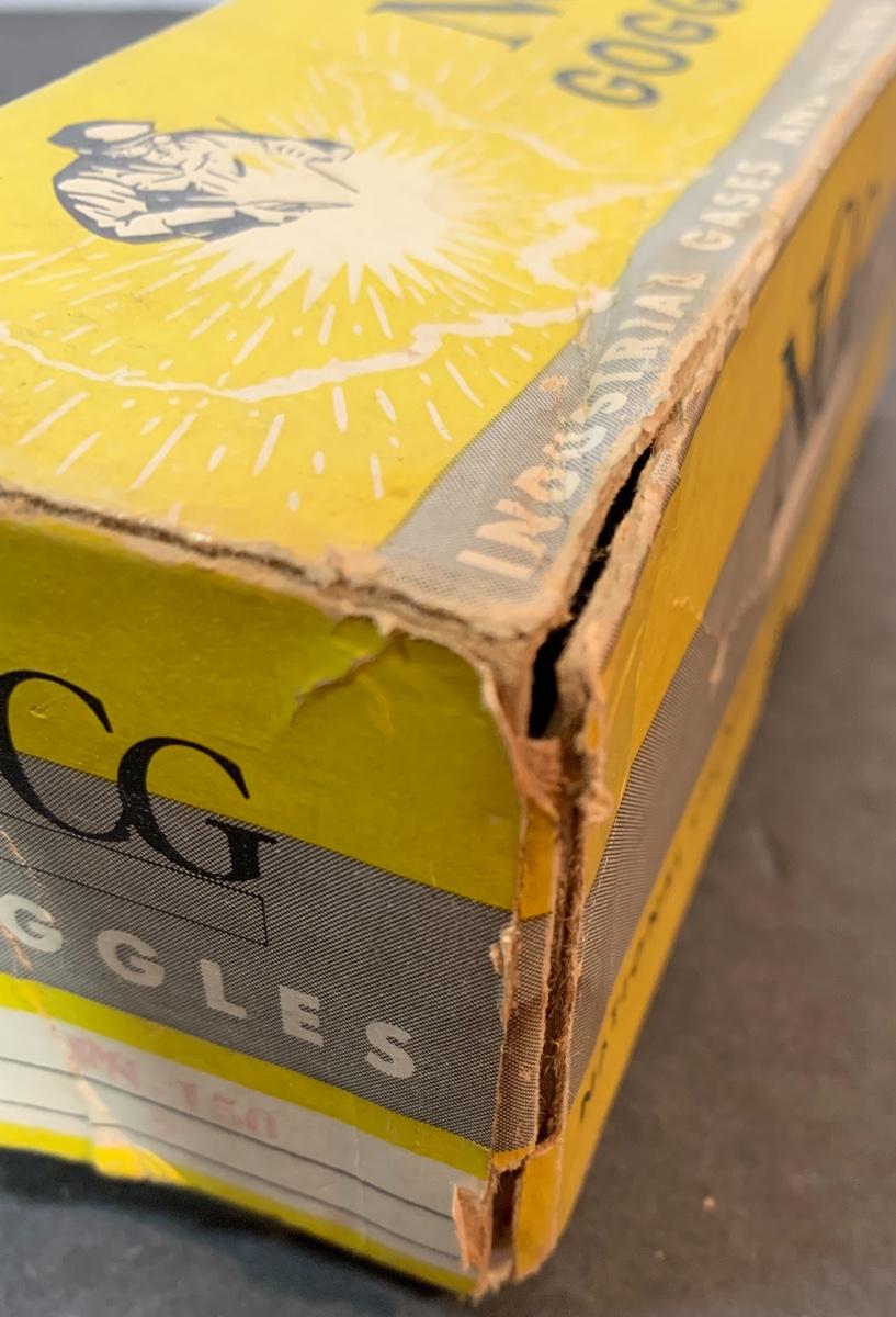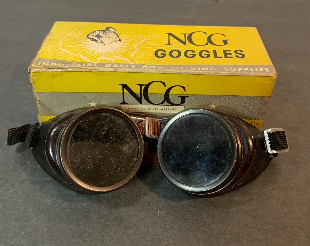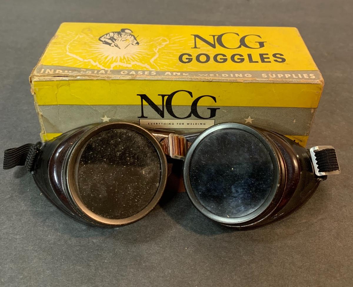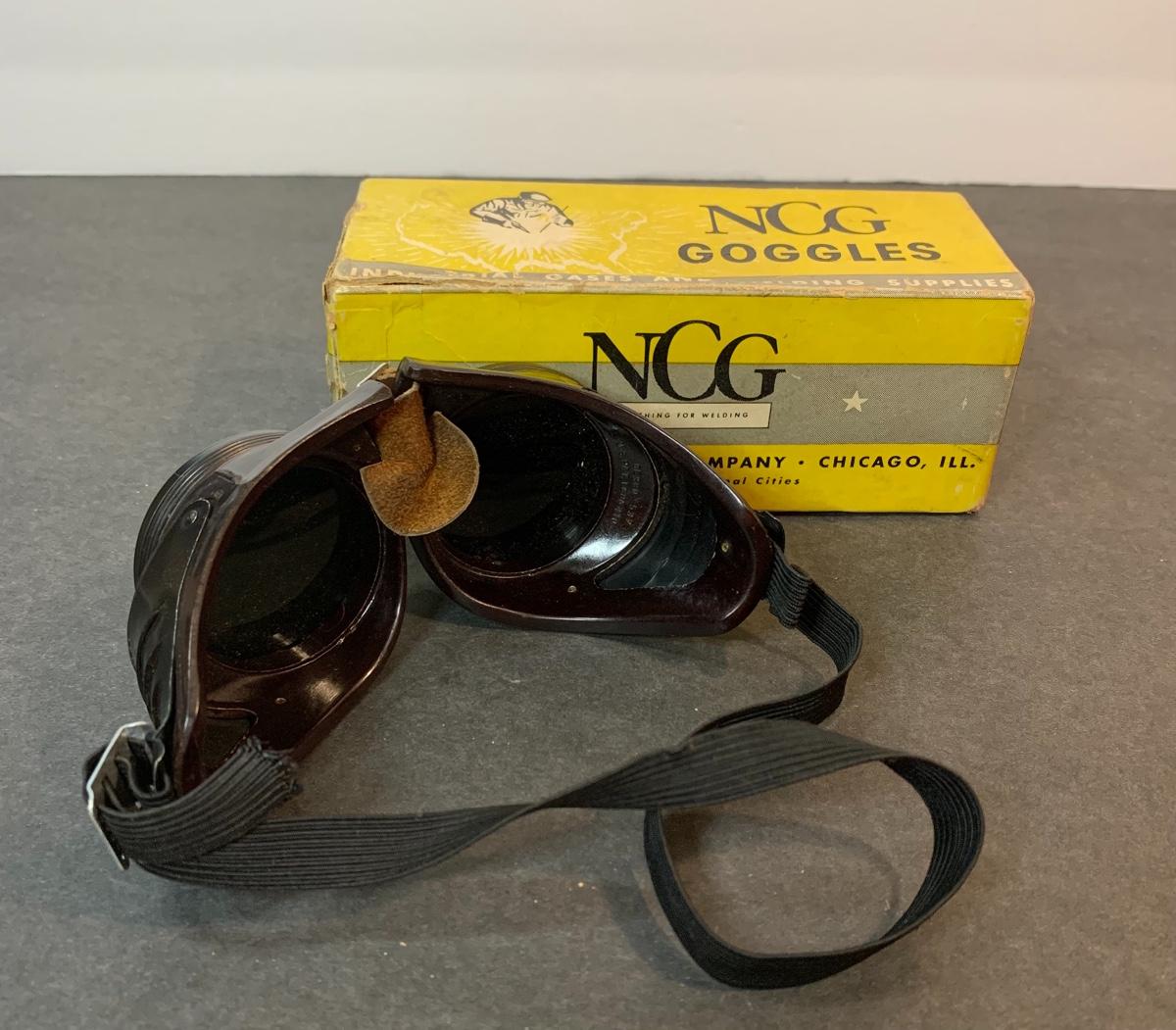 Vintage NCG Gas & Welding Googles, vintage MOTH-GAS TIN Lewy Chemical Co. NY - hangs(hook) and Binoculars