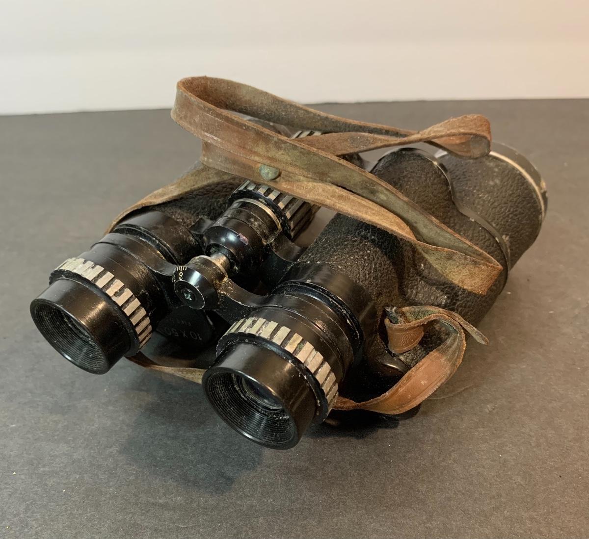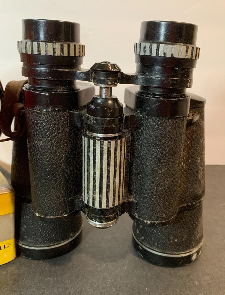 Lot 140: Vintage Binoculars, NCG Steampunk Welding Goggles and Tin