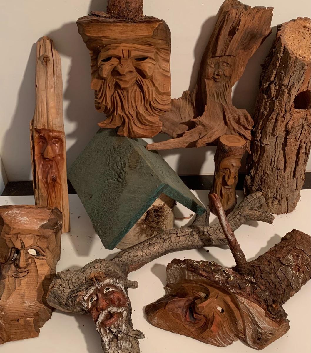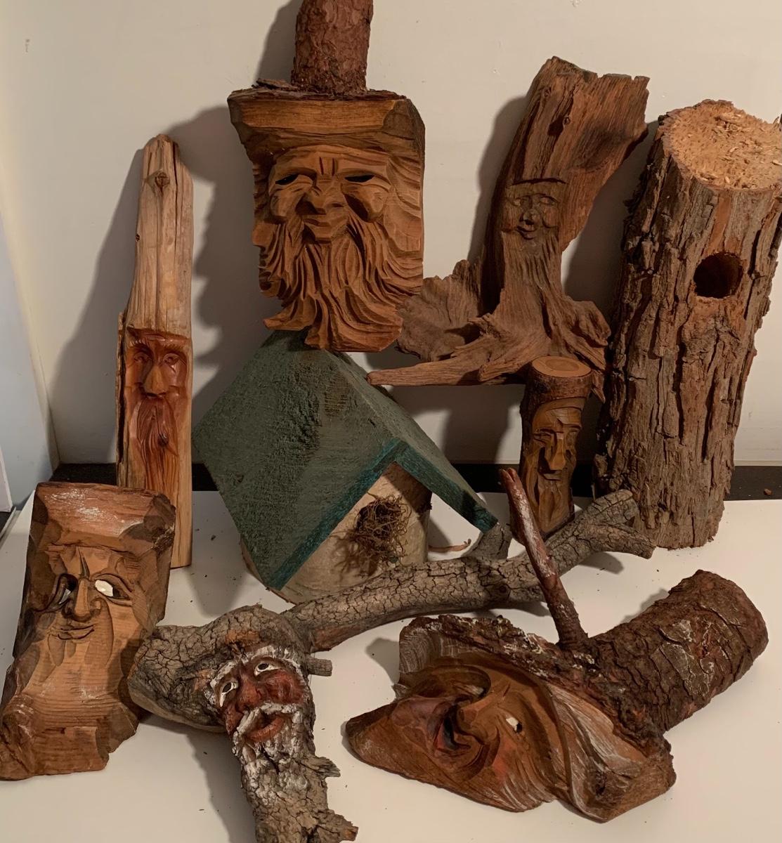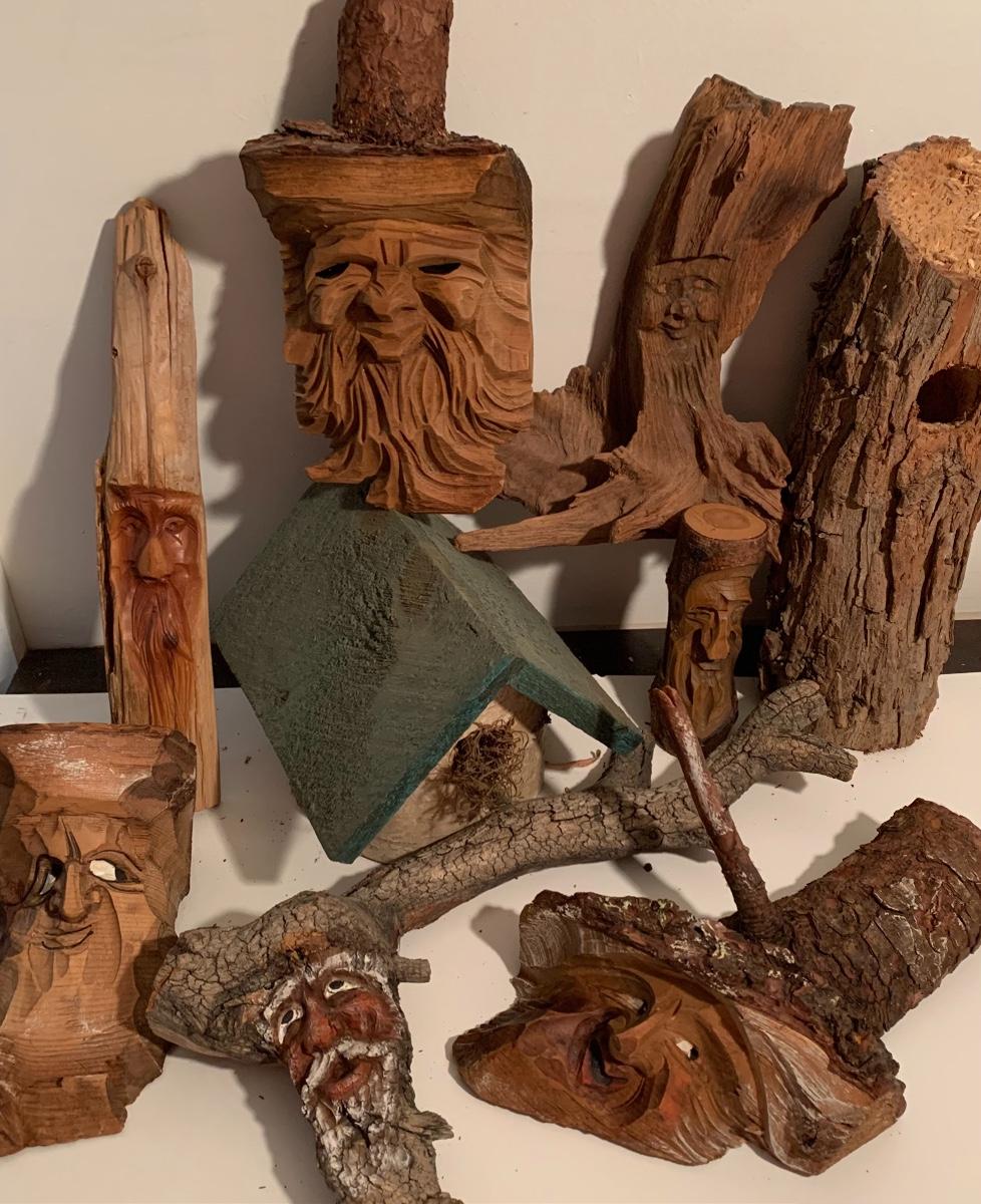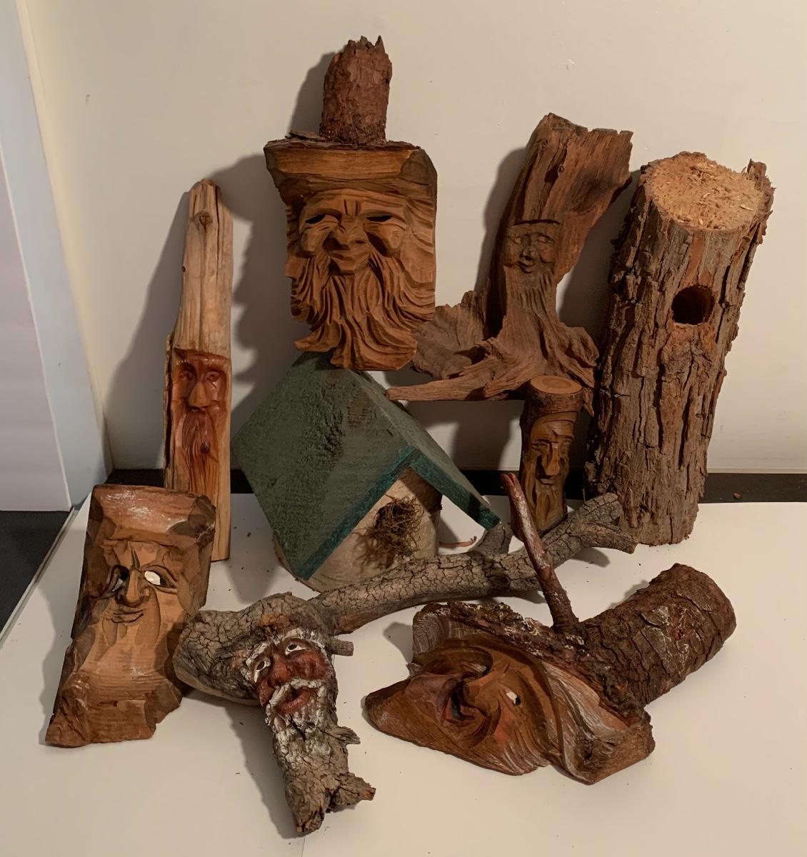 Lot of wood carvings: showing exquisite craftsmanship and birdhouse.