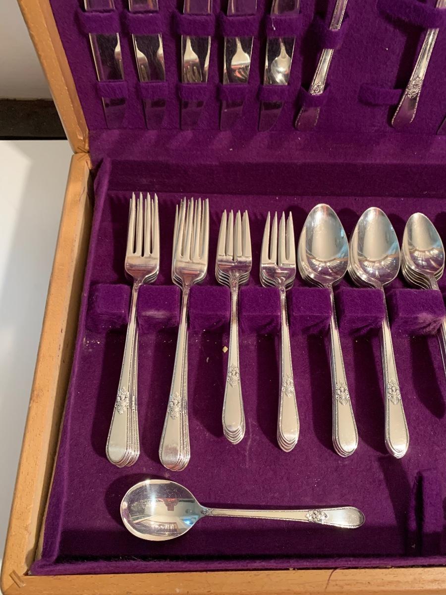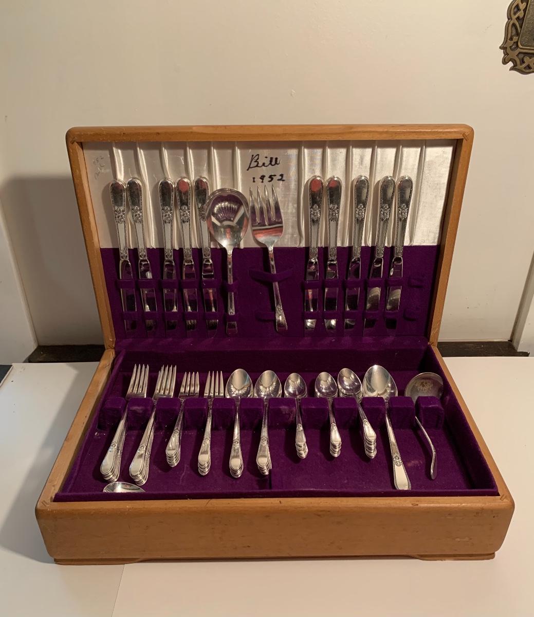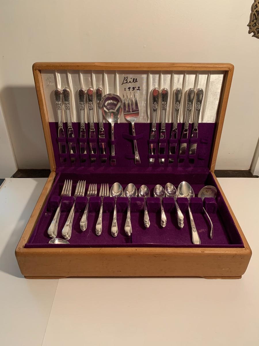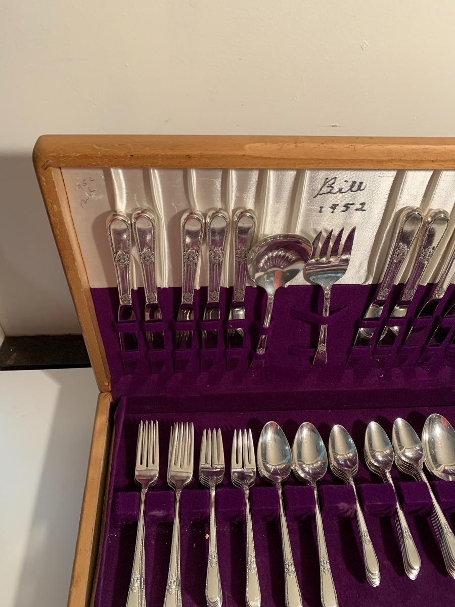 Lot 138: International Silver Co "Adoration" Silverplated Serving Set for 8