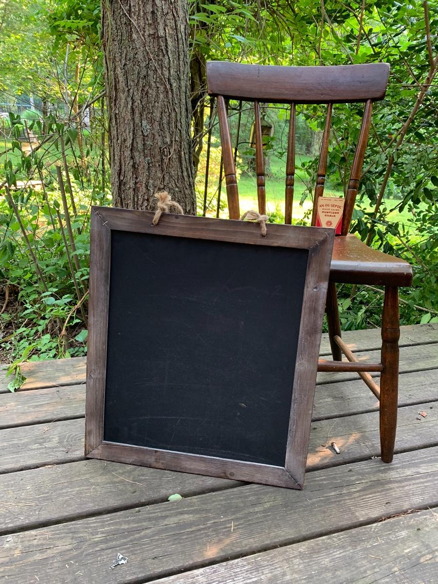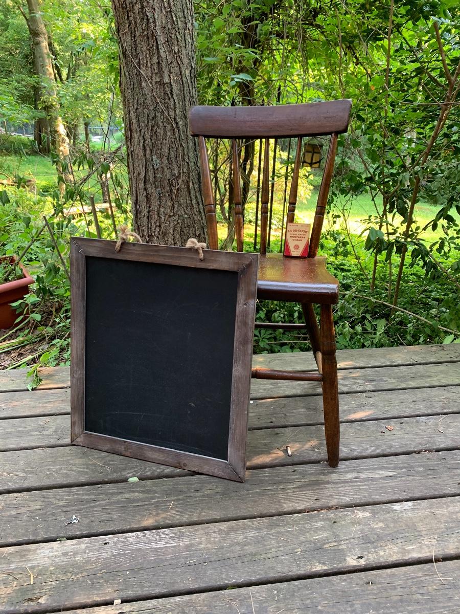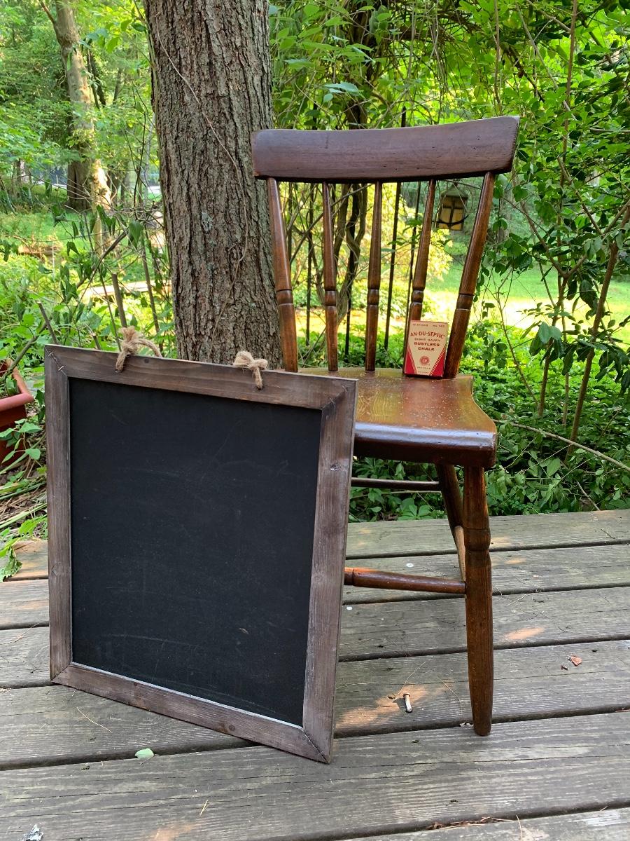 School House Lot complete with Vintage Chair , Chalk Board & An-Du-Septic Dustless Chalk by Binney & Smith (The Crayola Makers) box of chalk.