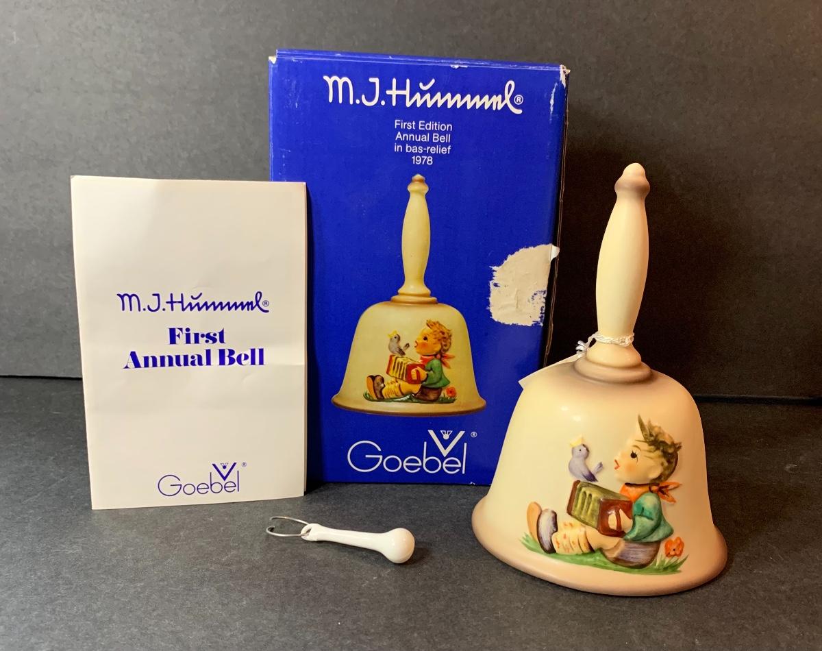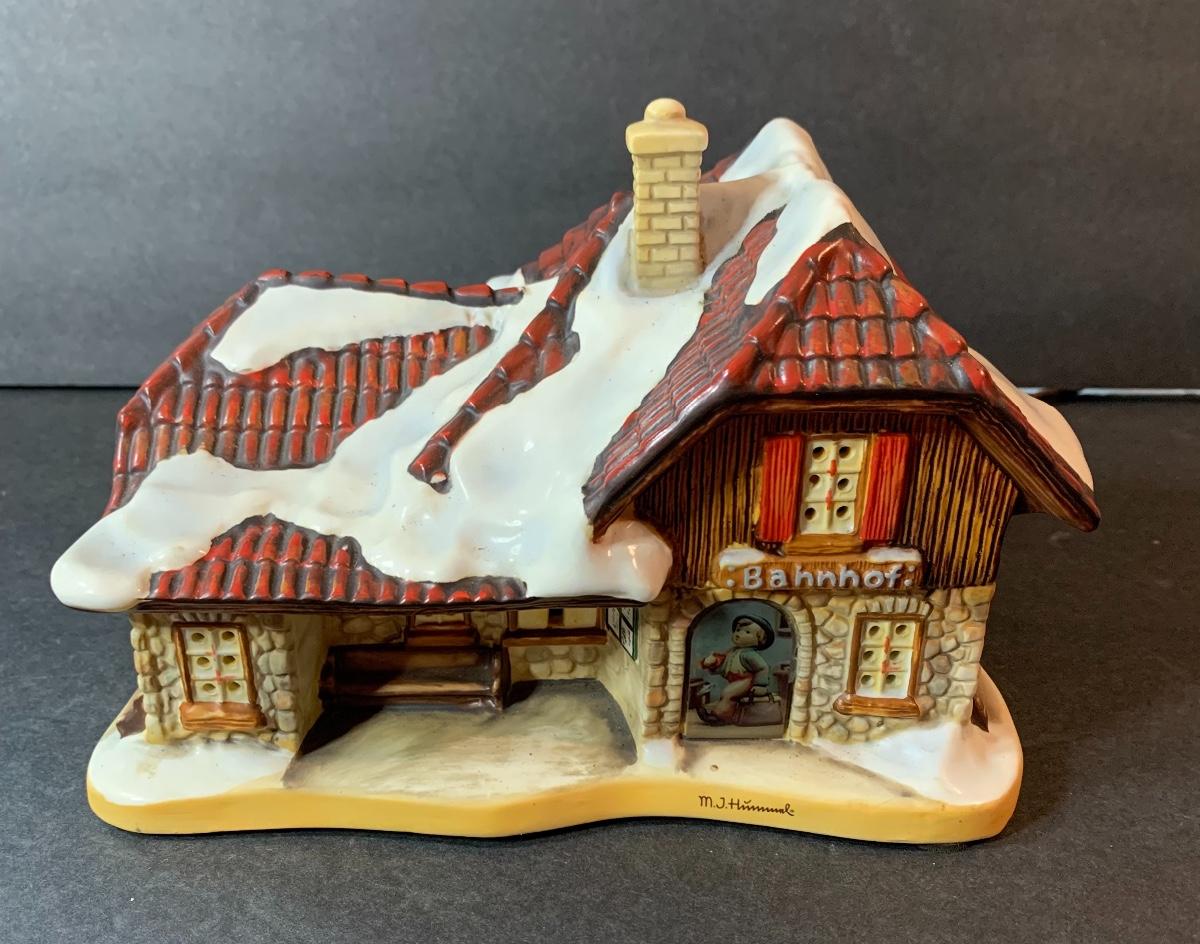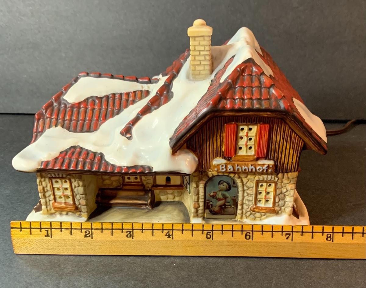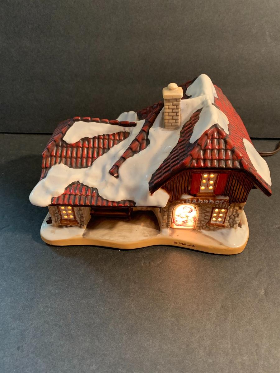Lot 128: Hummel Lighted Cottage, Goebel Bell and signed Pencil Drawing.