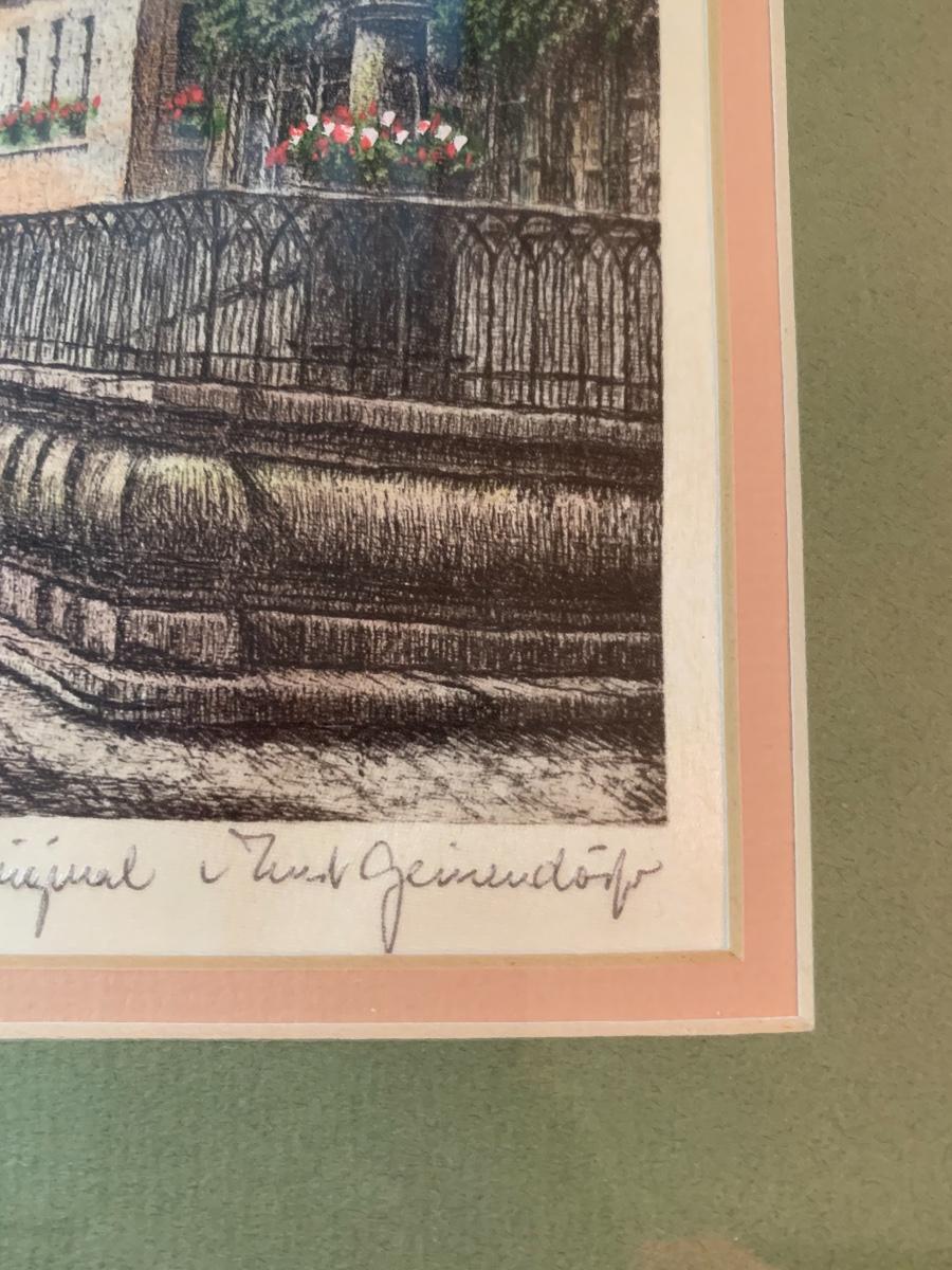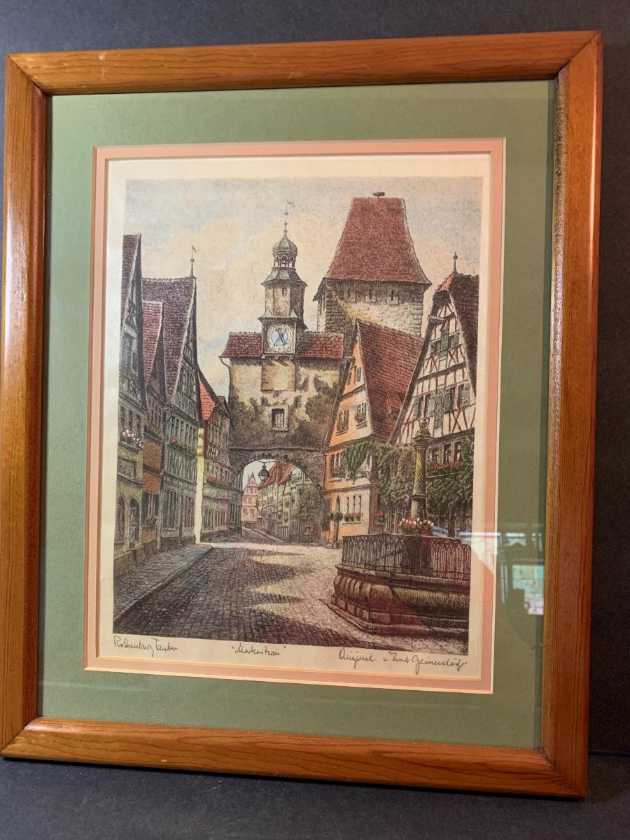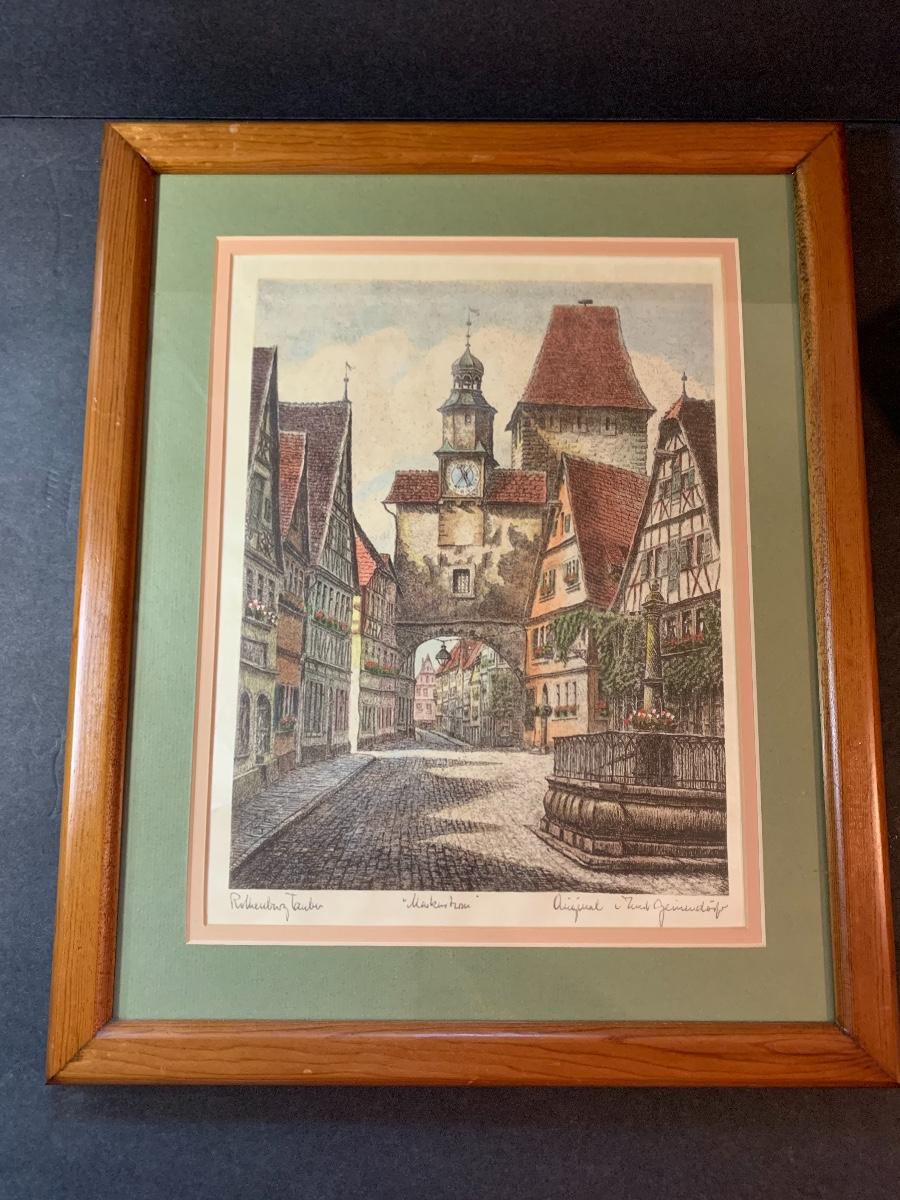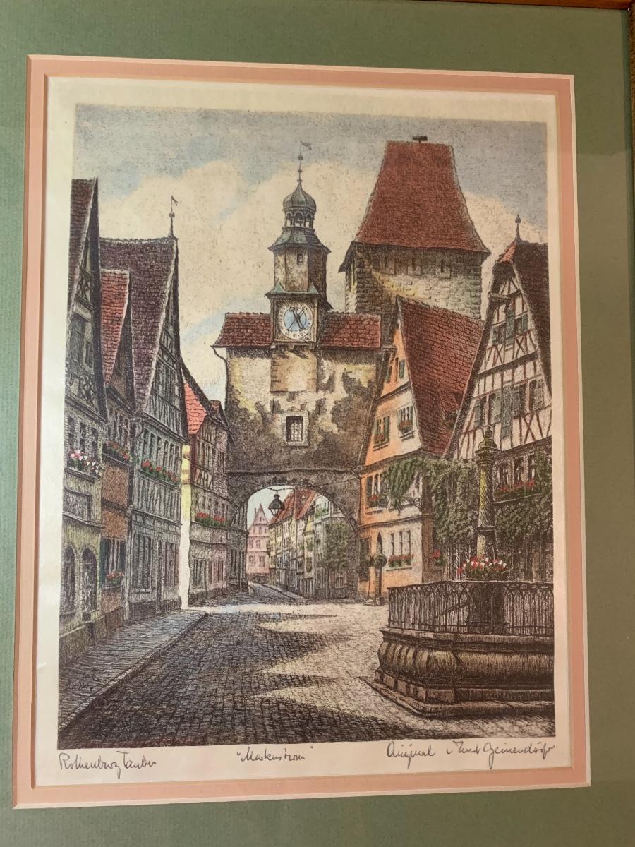Lot 128: Hummel Lighted Cottage, Goebel Bell and signed Pencil Drawing.