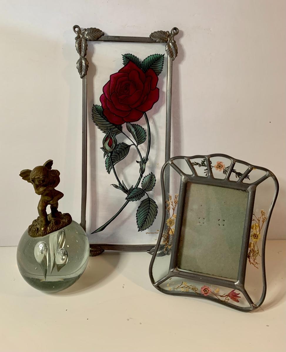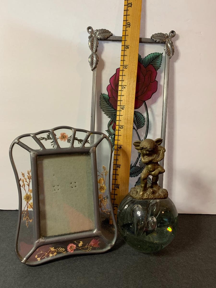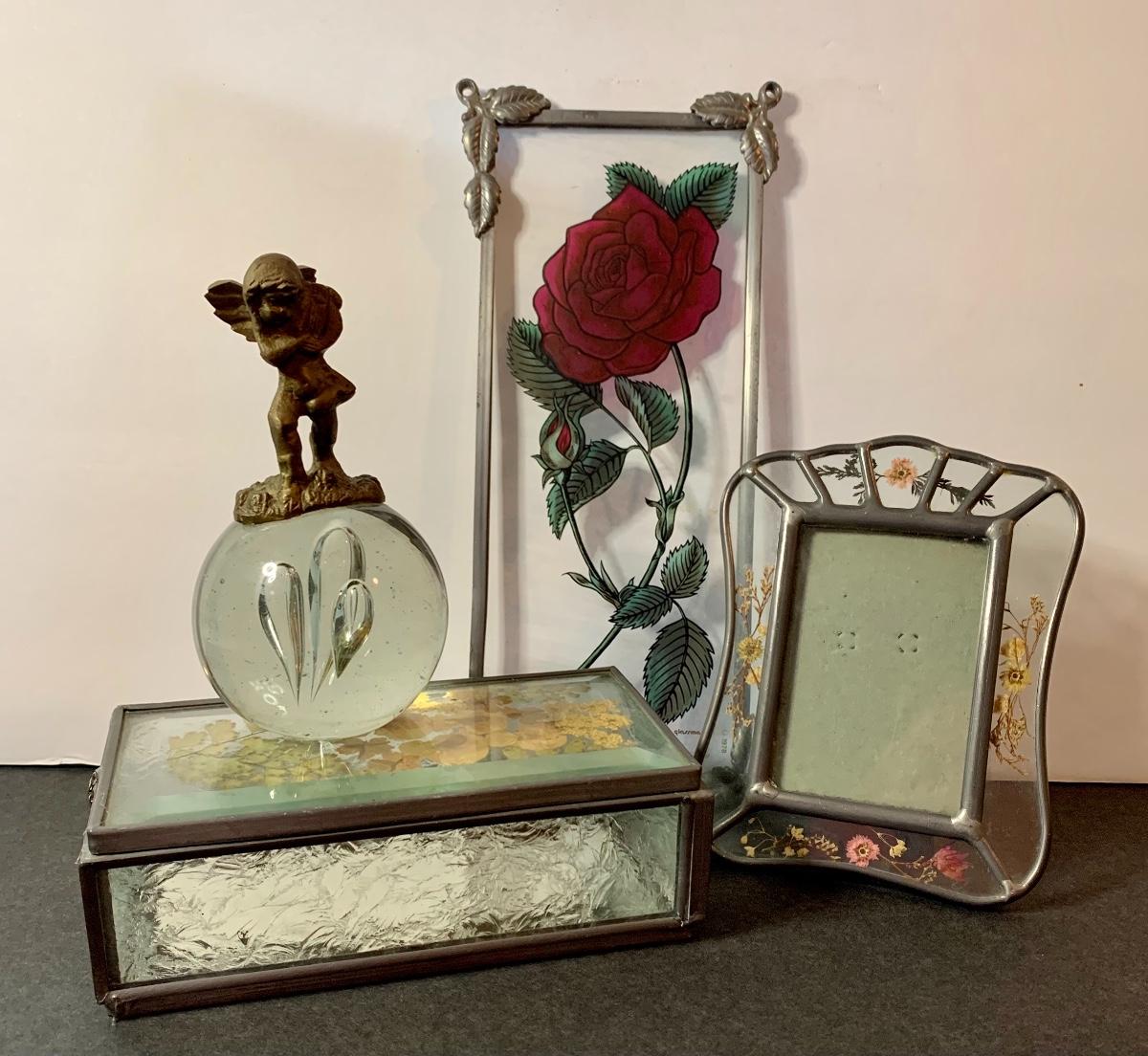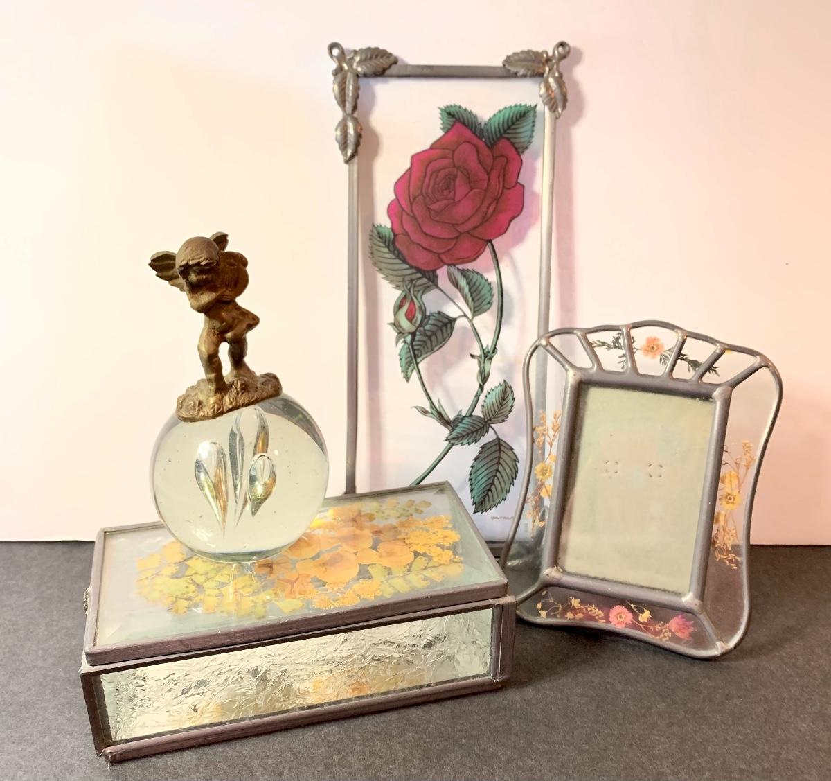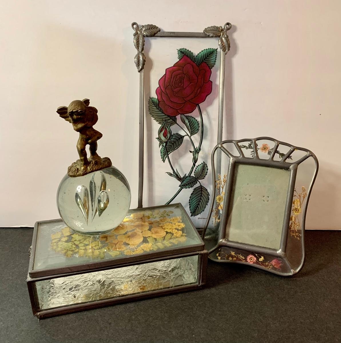Lot 123: Trinket Box, Brass and Blown Glass Paperweight and More