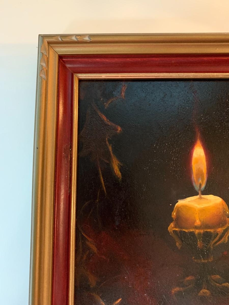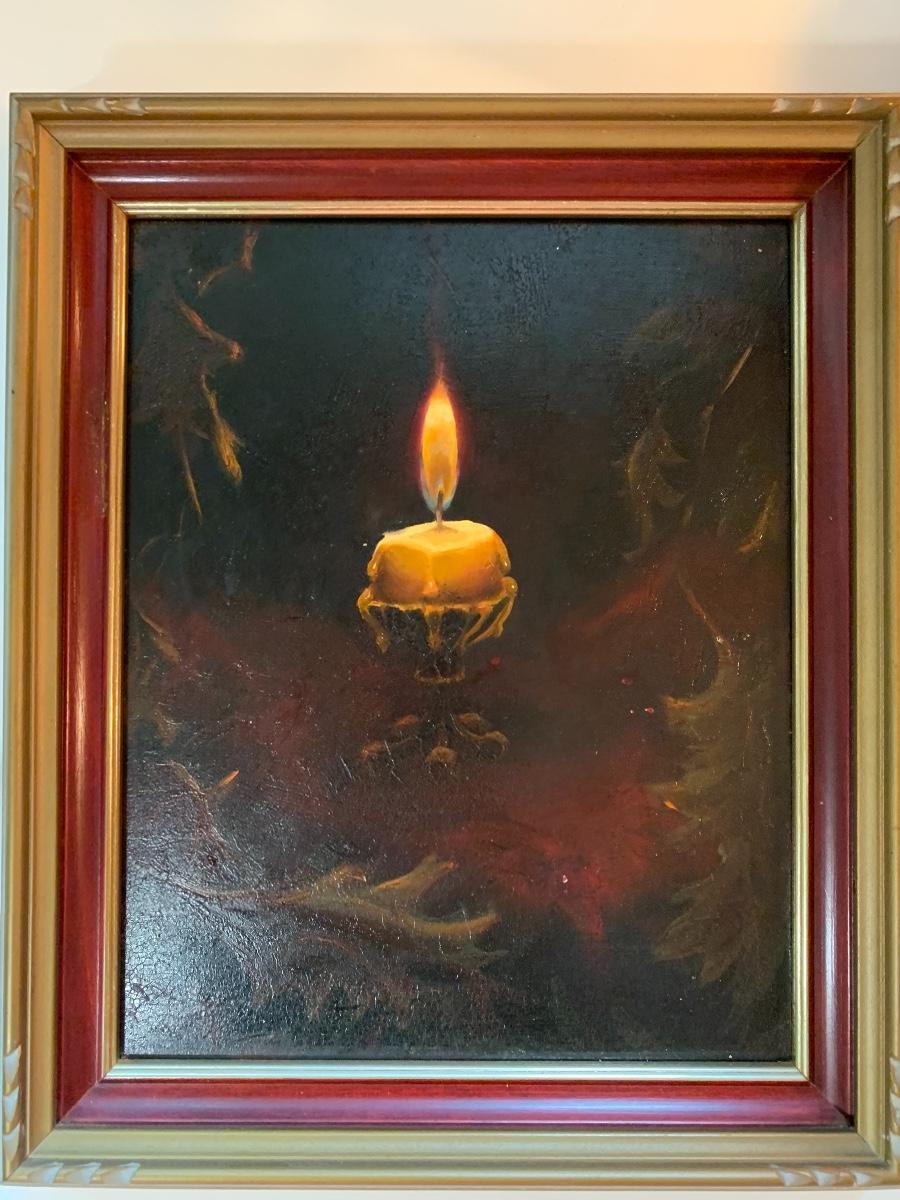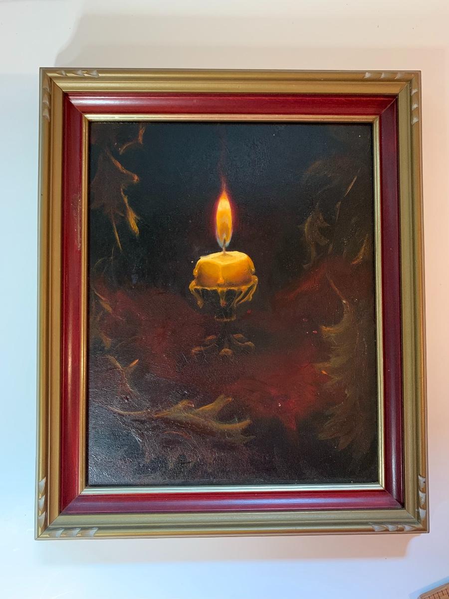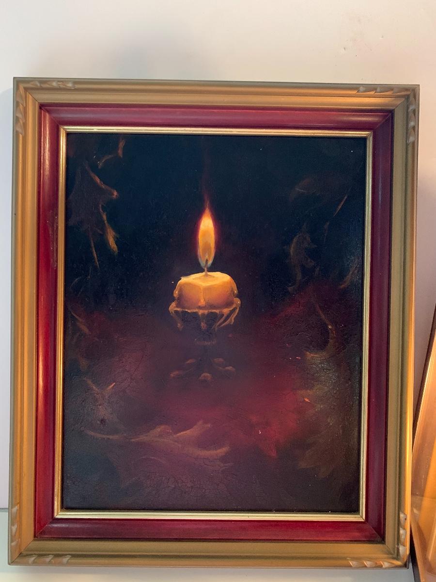 This painting is gorgeous, but unsure of medium as it looks to be on corrugated thin wood. The candle glows when the right light hits it. The lantern has been rewired to be used as wall lantern. Please see all pictures for content of the lot, condition of the lot, and measurements if taken. Pictures are the best representation of the items listed and items are untested unless indicated in description. Thank you for looking and have fun bidding!