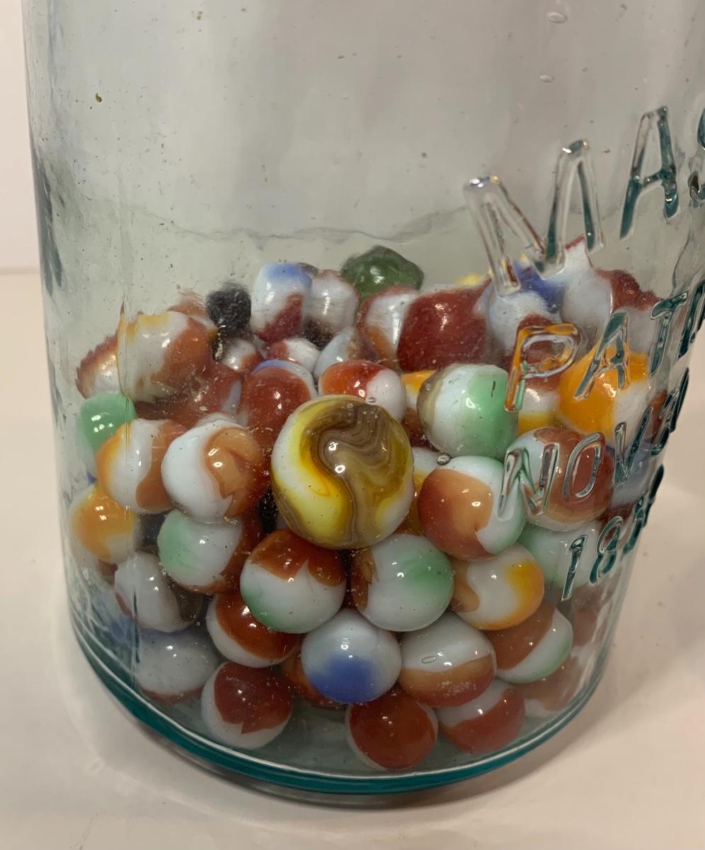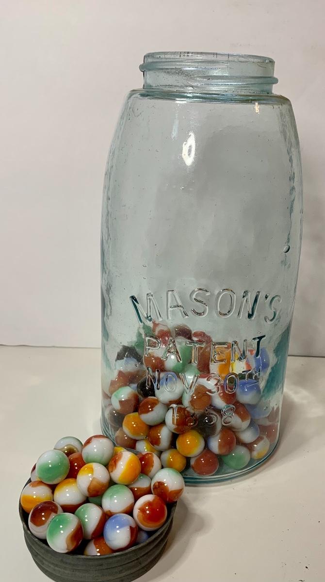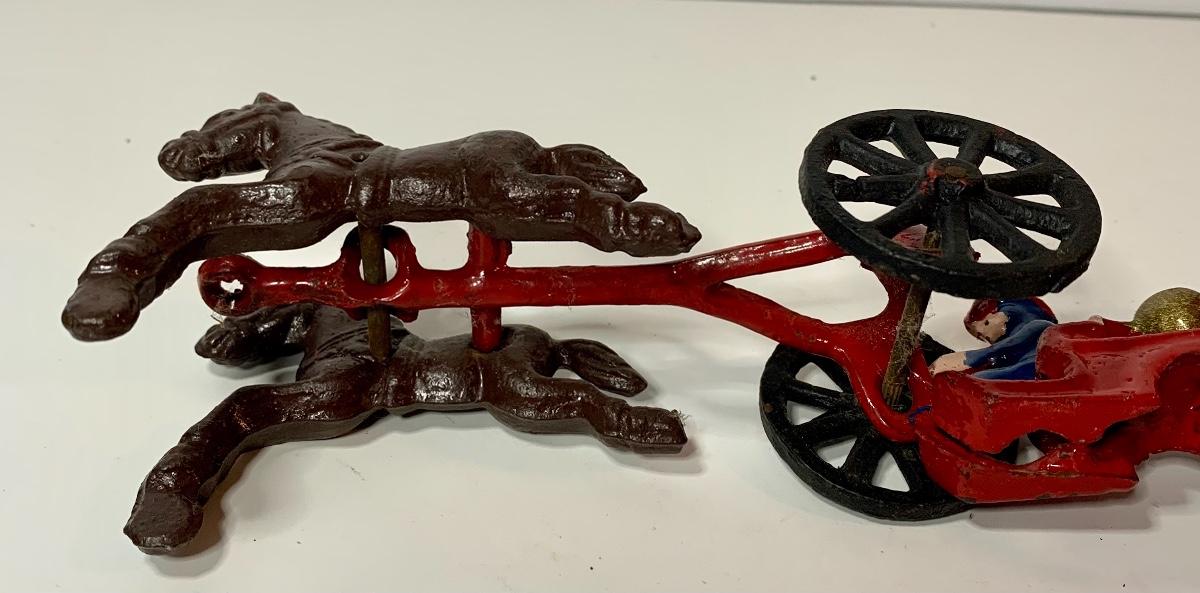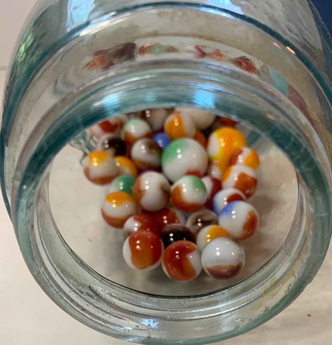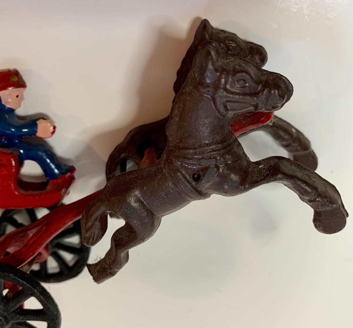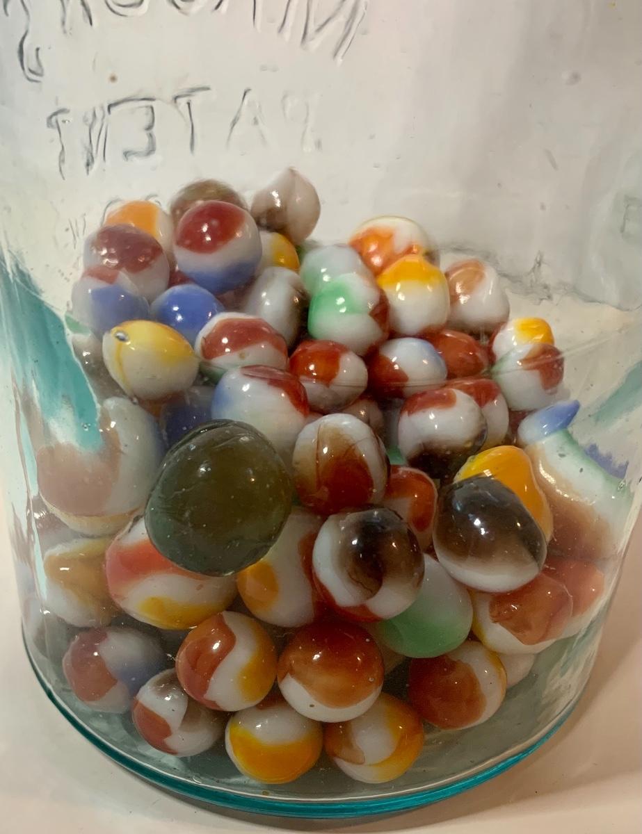 Lot 121: Vintage Marbles, Cast Iron Firetruck, Primitive Painted Spinning Top and More