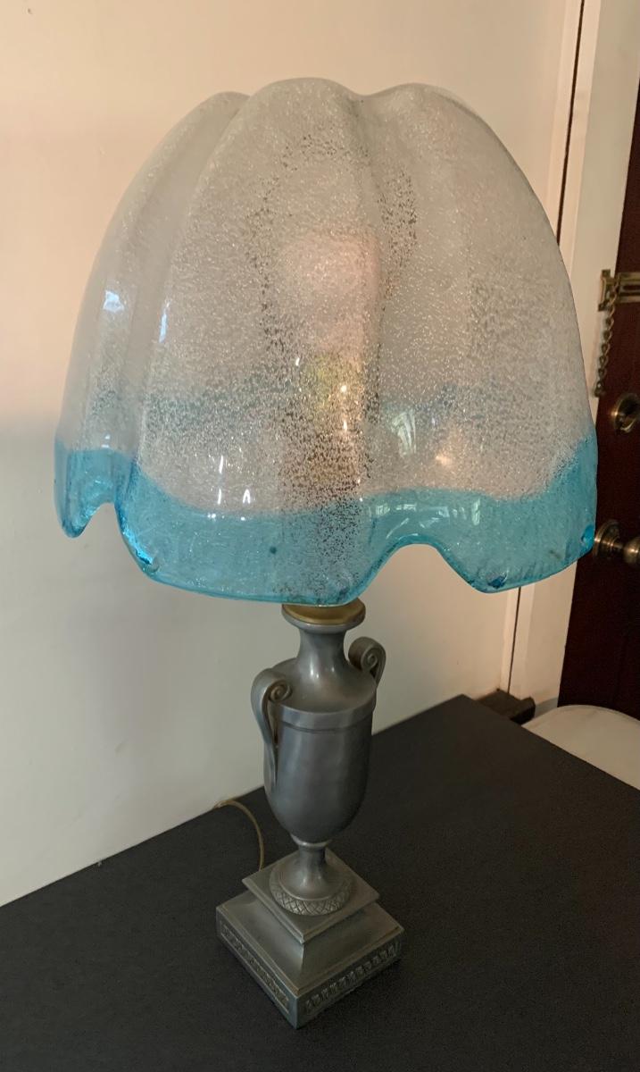 Beautiful "Unique" Glass Shade w/lamp, not sure if Murano Glass or not. Lamp works shade looks fabulous when lit..