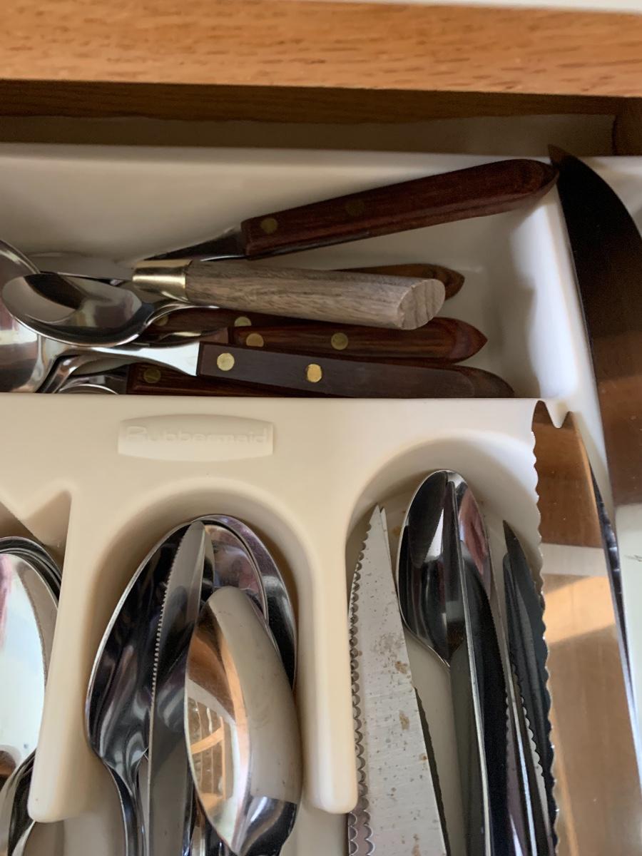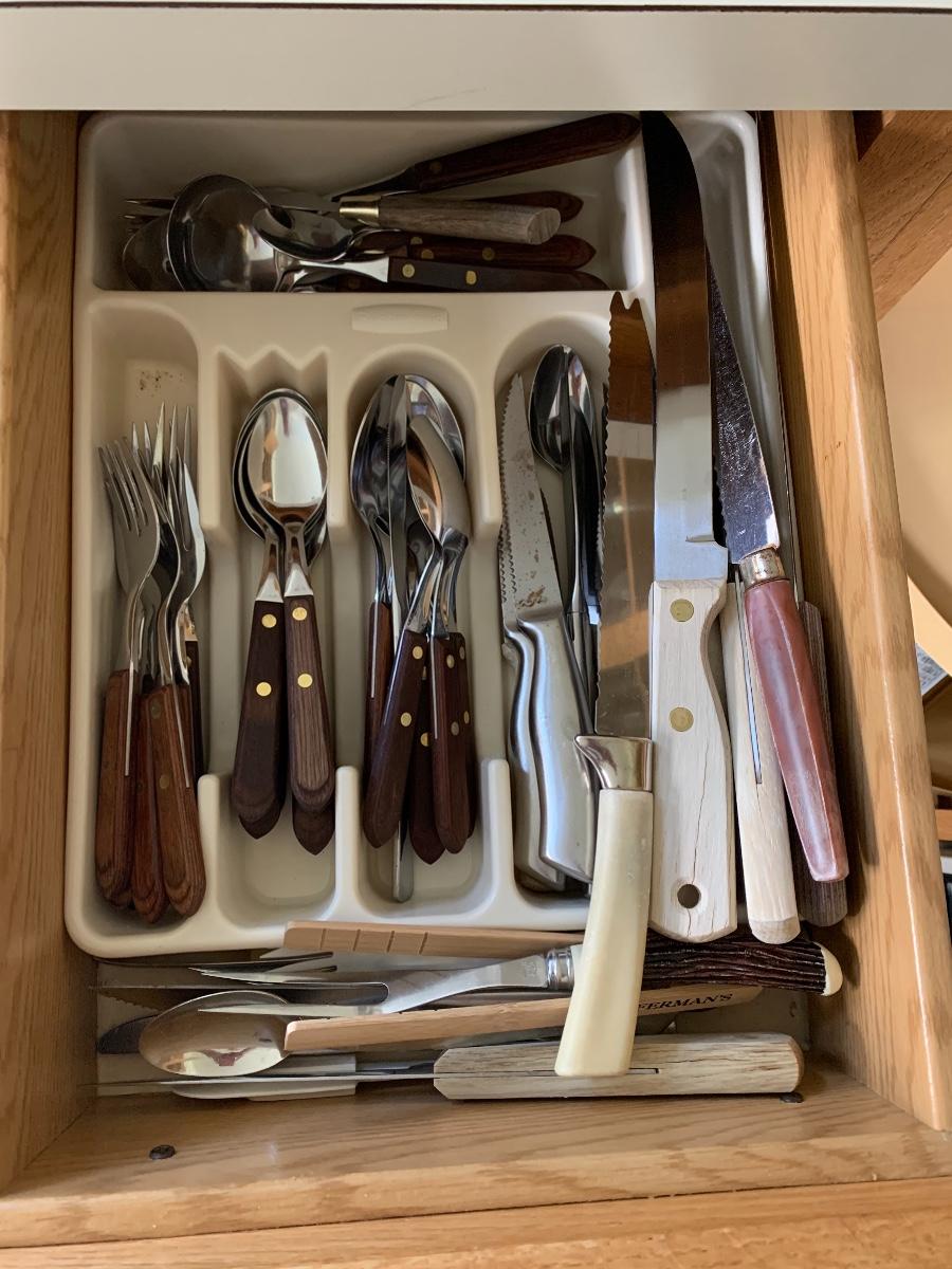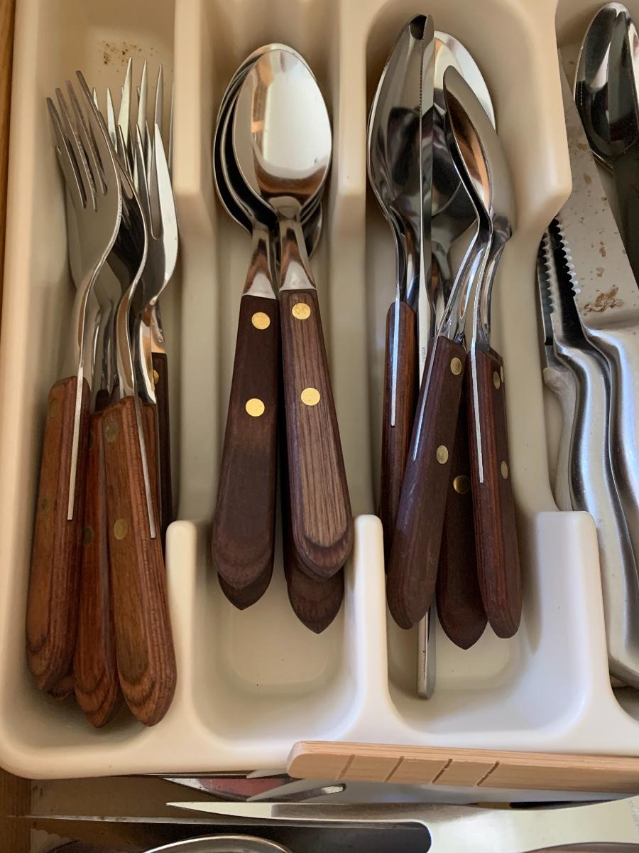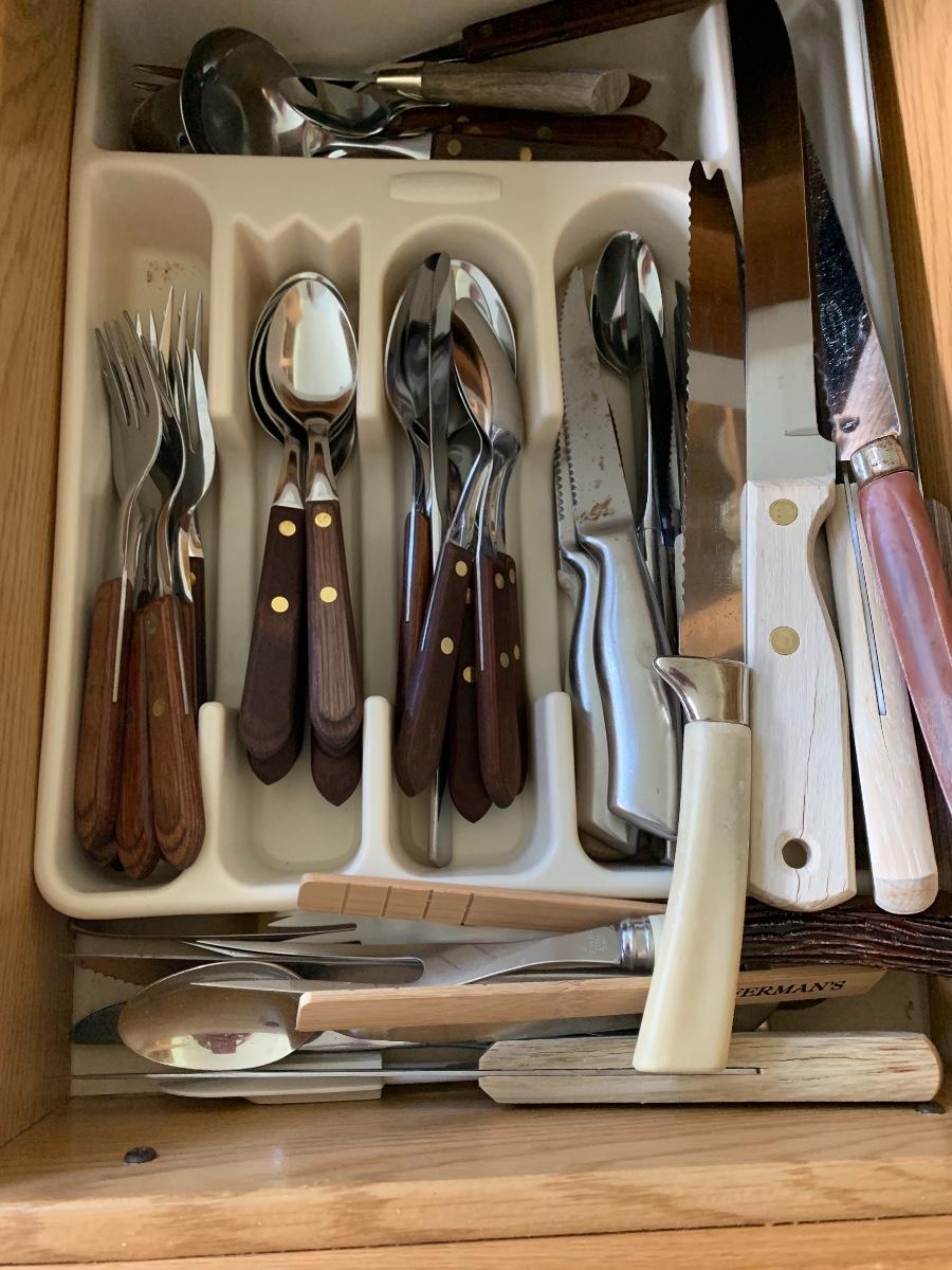 MCM Wooden Handles Flatware along with misc. knives.
