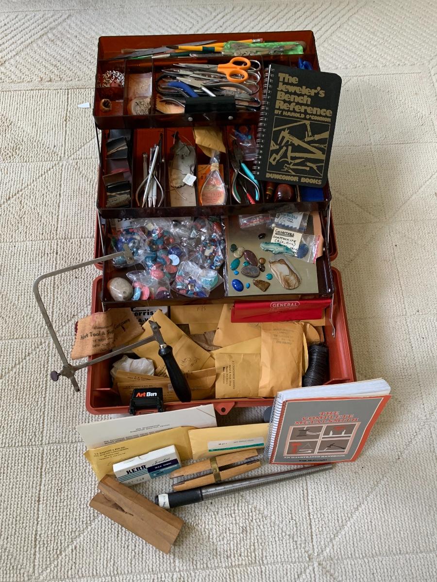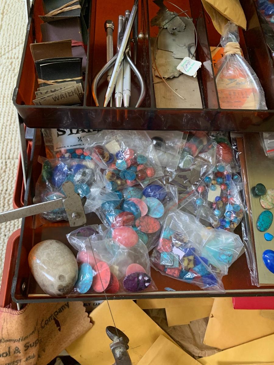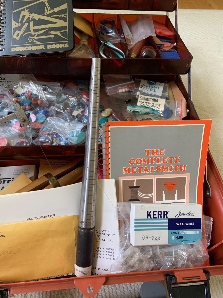 Almost everything you need to make jewelry including stones, how to books, some metals., tools, ring mandrel etc.