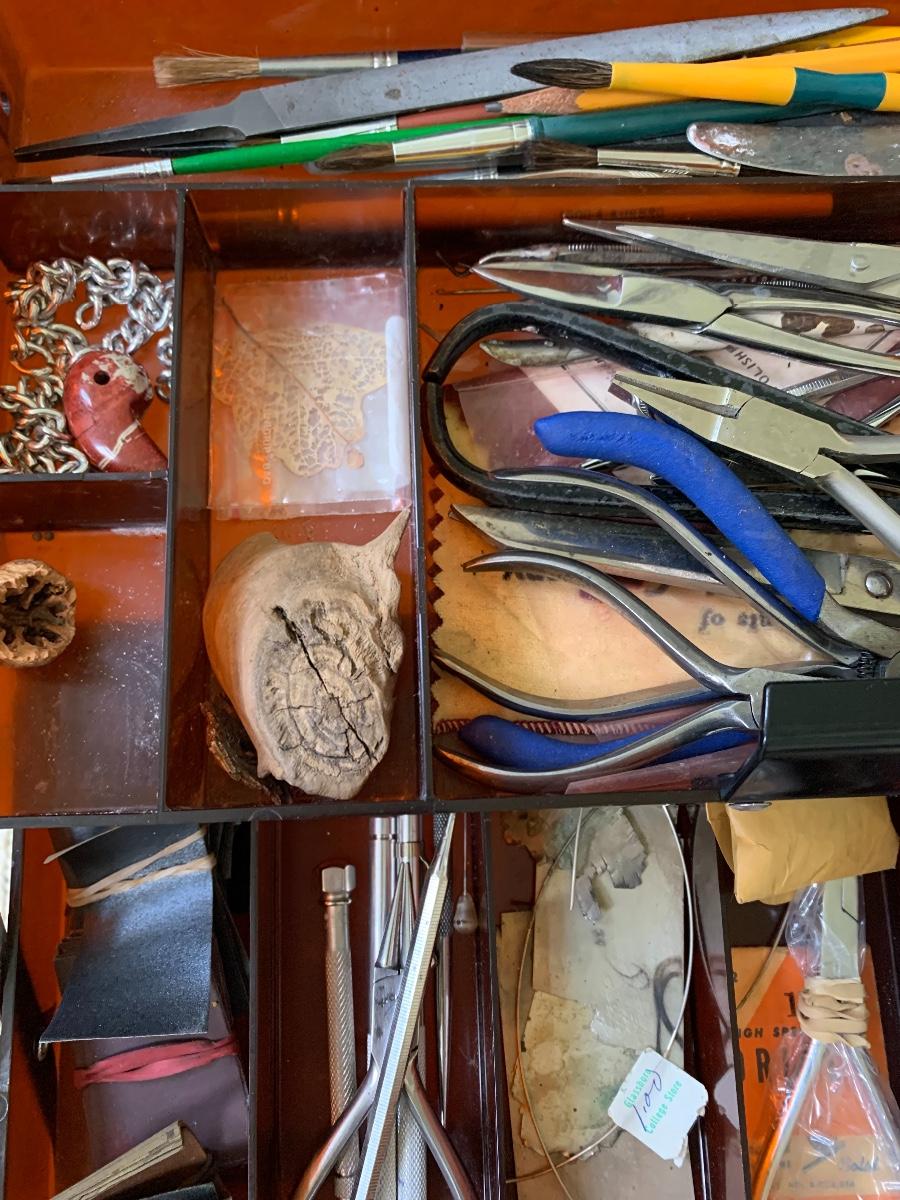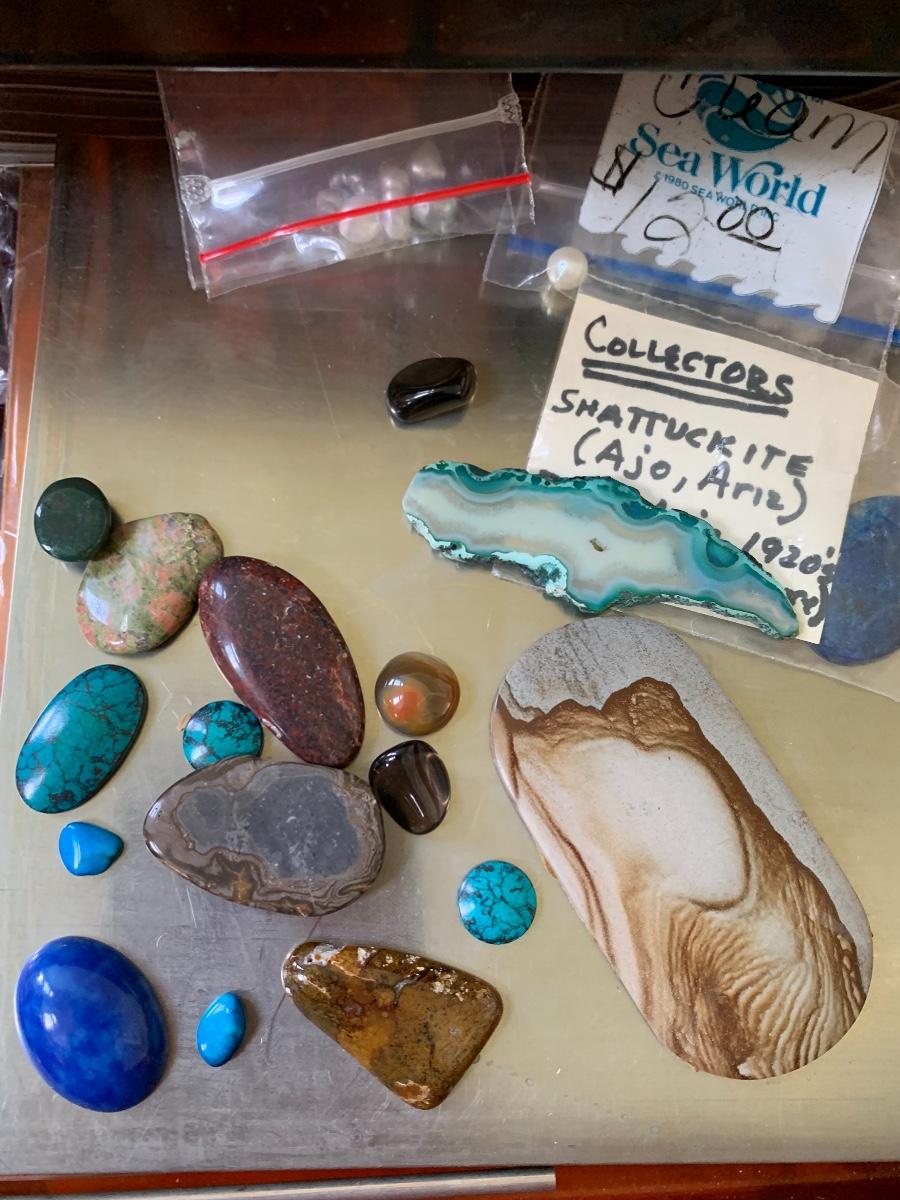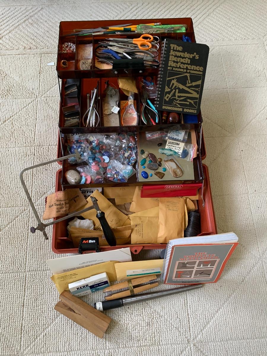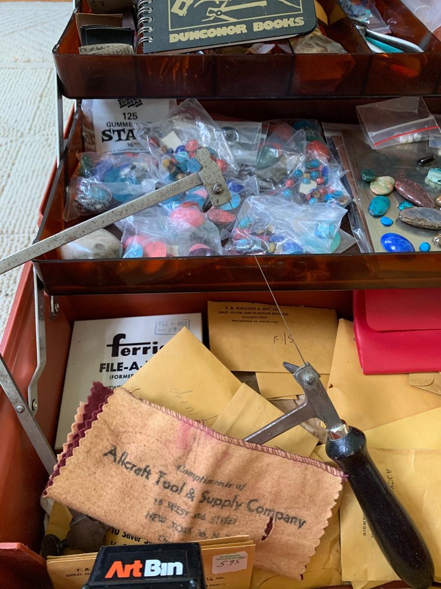 Almost everything you need to make jewelry including stones, how to books, some metals., tools, ring mandrel etc.