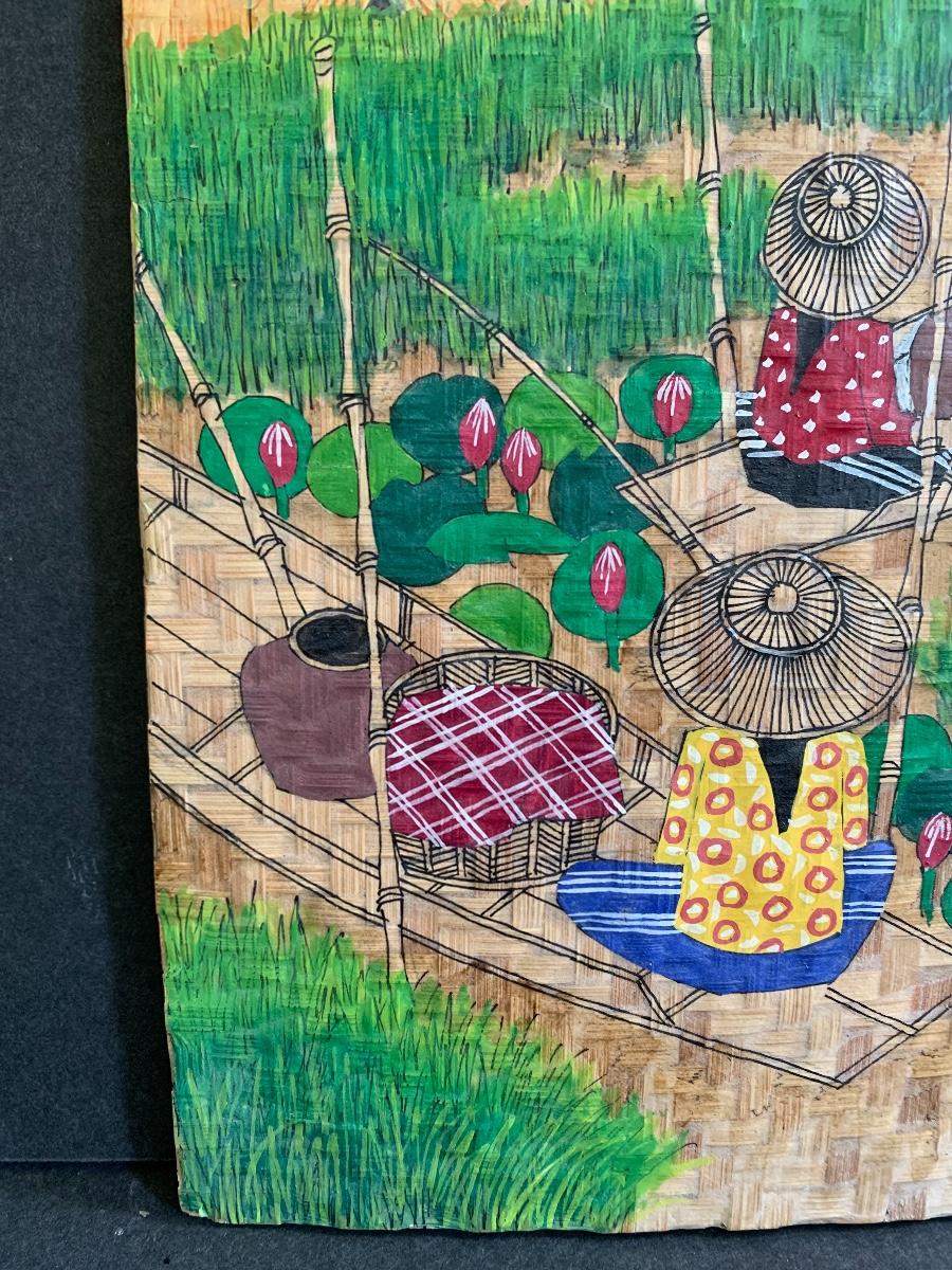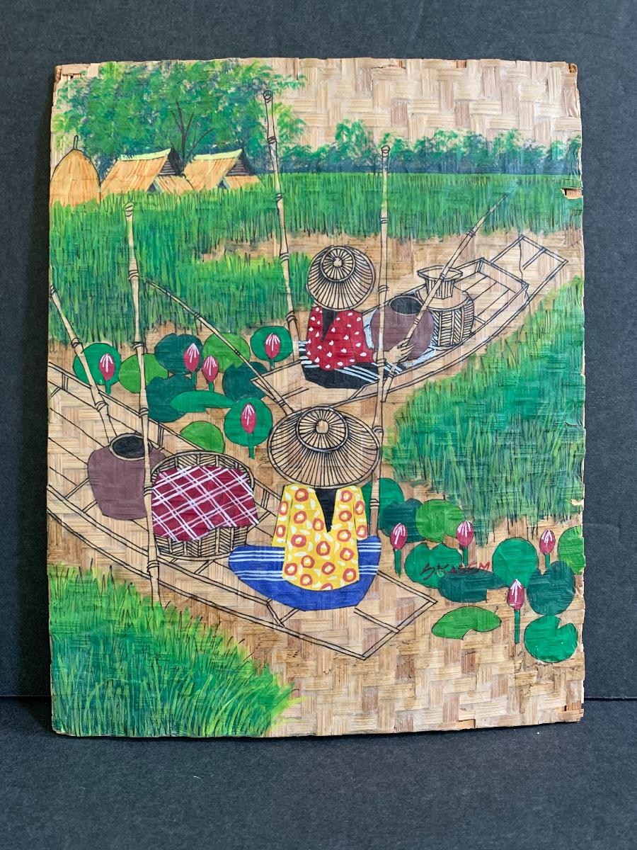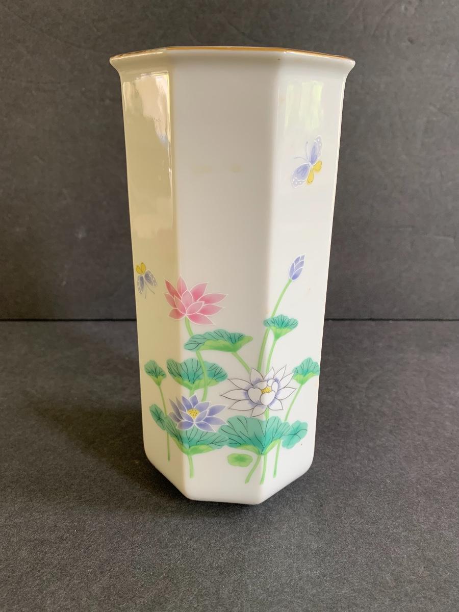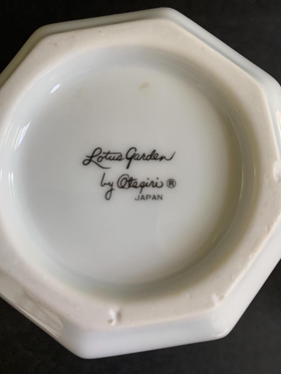 Otagiri Octagon Porcelain Vase with Gold Trim, Lotus Garden Design. Oval Stoneware Dish/Planter and with Hand Painter oil on Bamboo