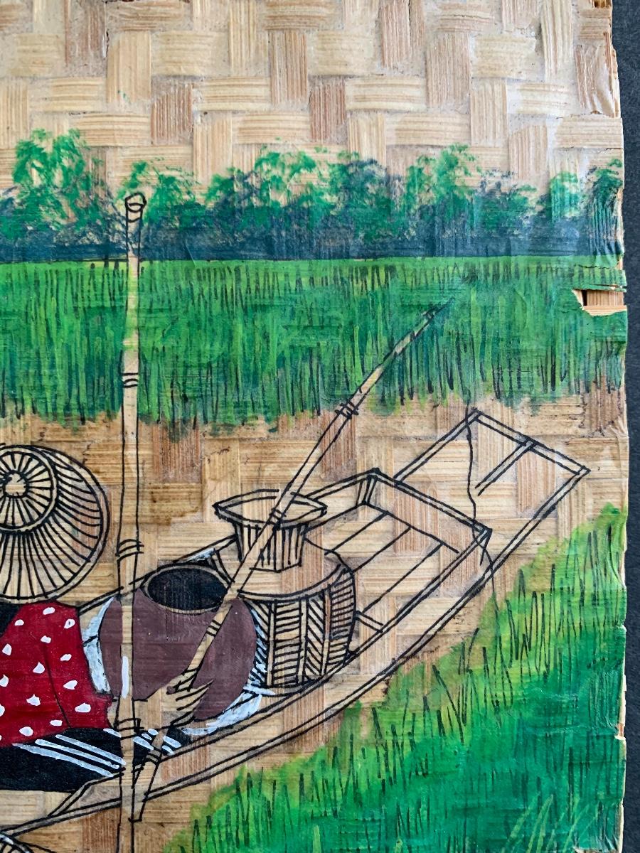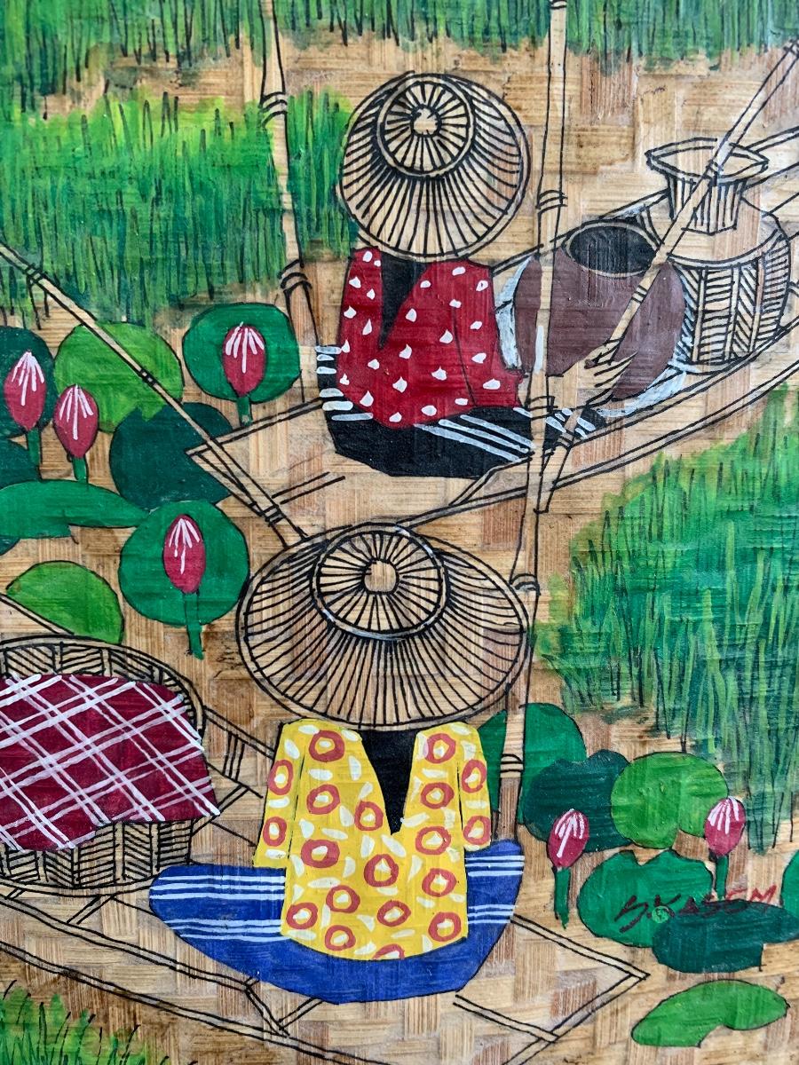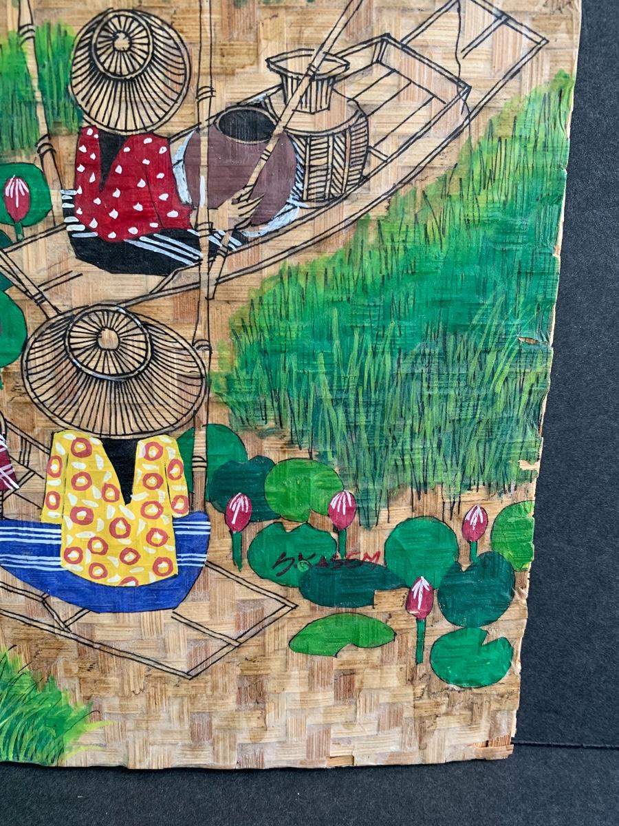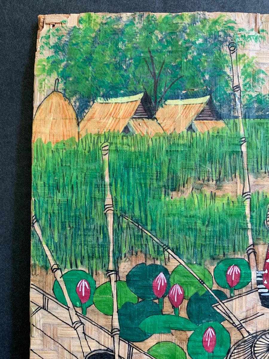 Otagiri Octagon Porcelain Vase with Gold Trim, Lotus Garden Design. Oval Stoneware Dish/Planter and with Hand Painter oil on Bamboo
