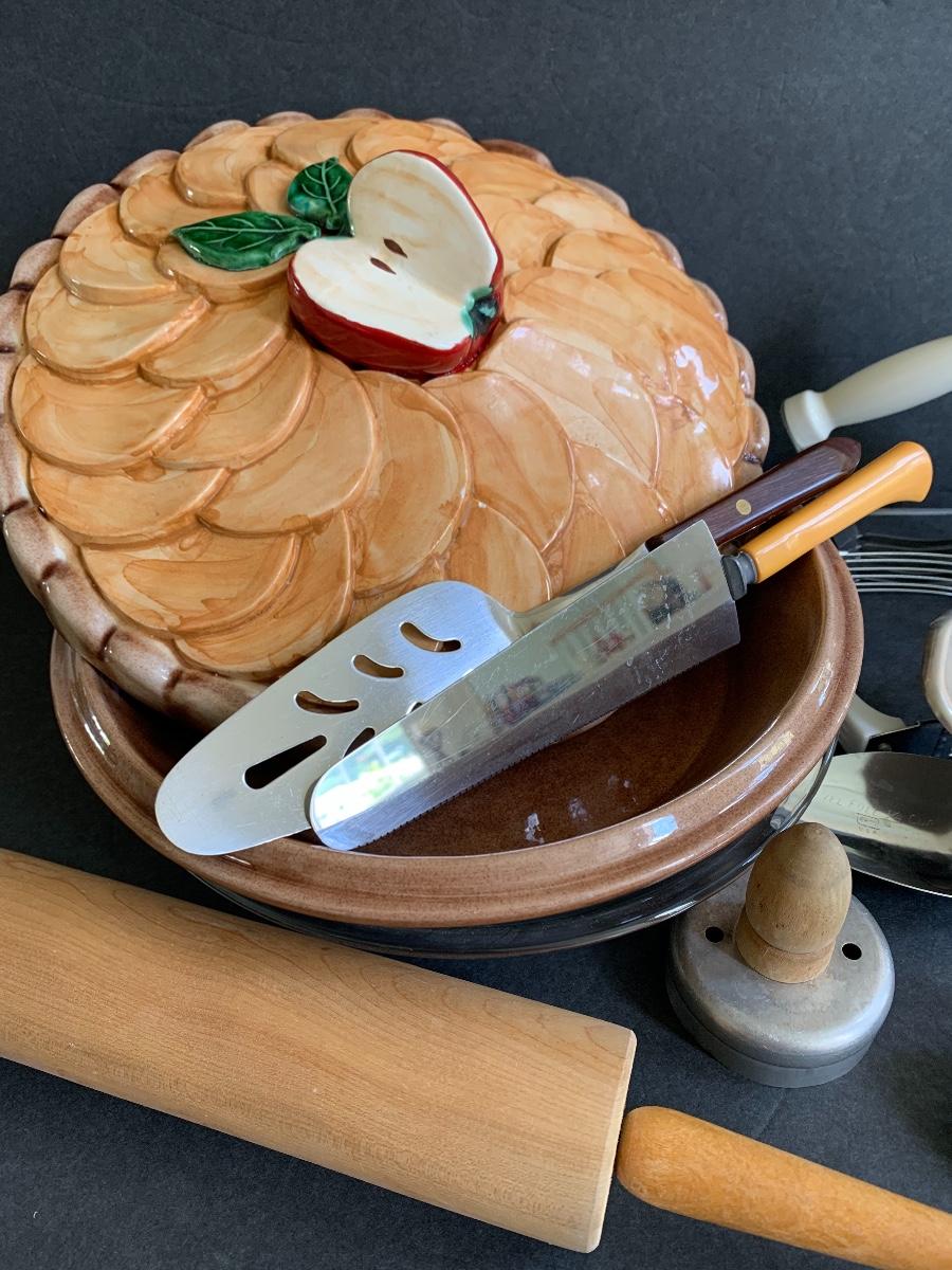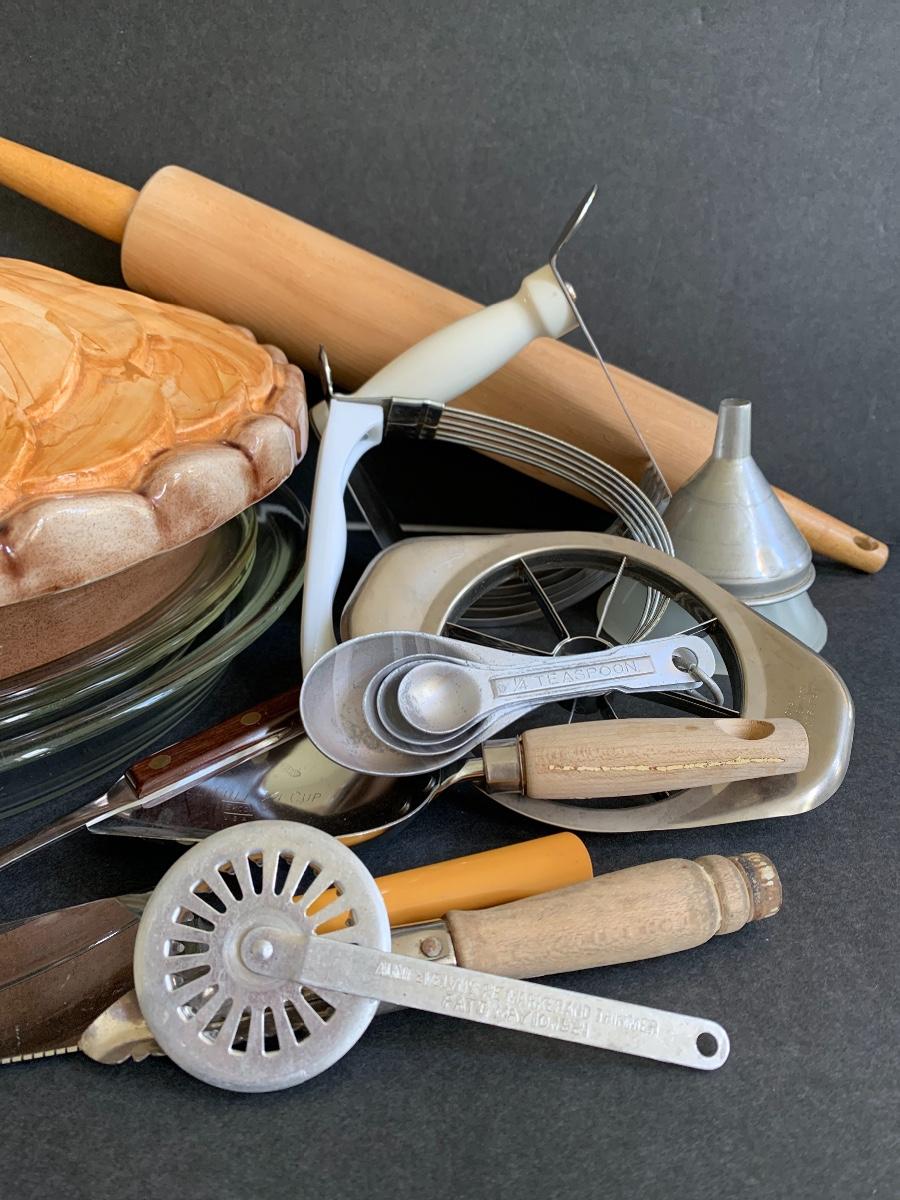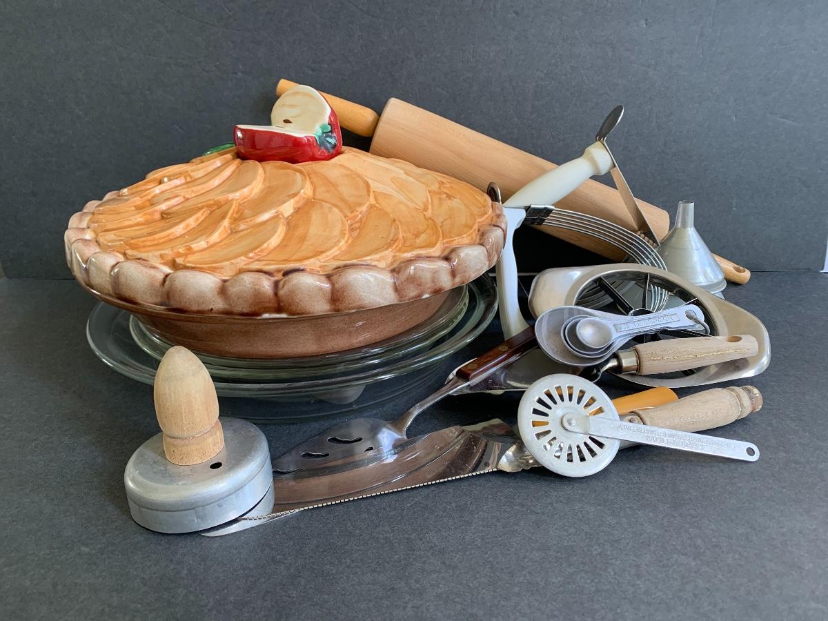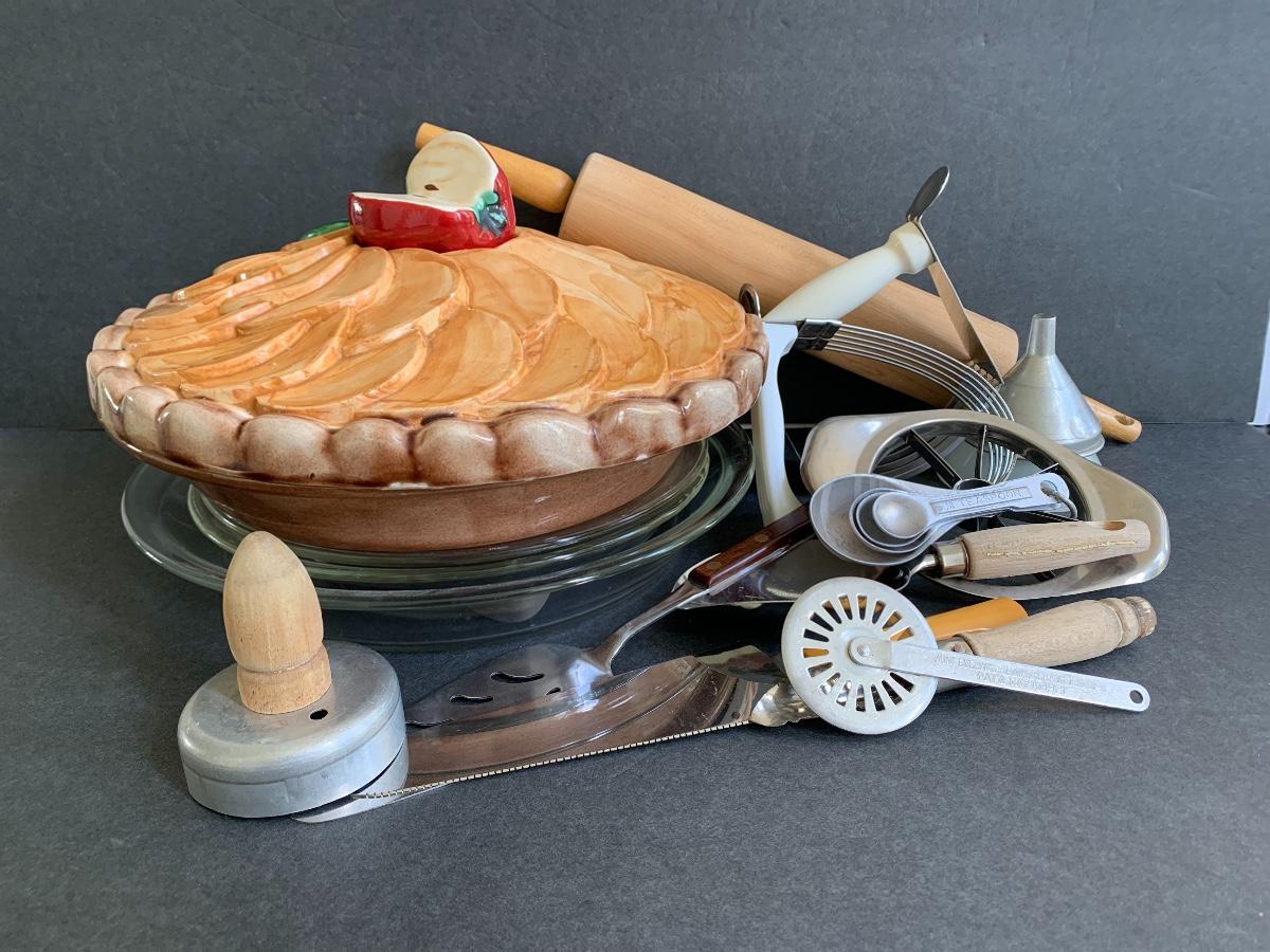 Cover Pie Dish, Rolling Pin, Teaspoons., Pastry Cutter and more..