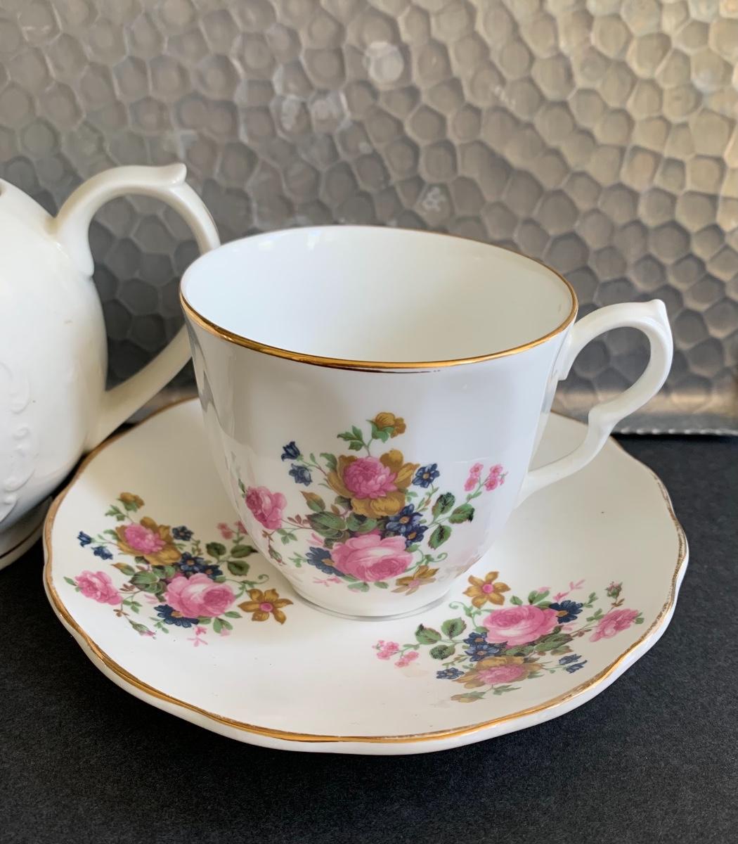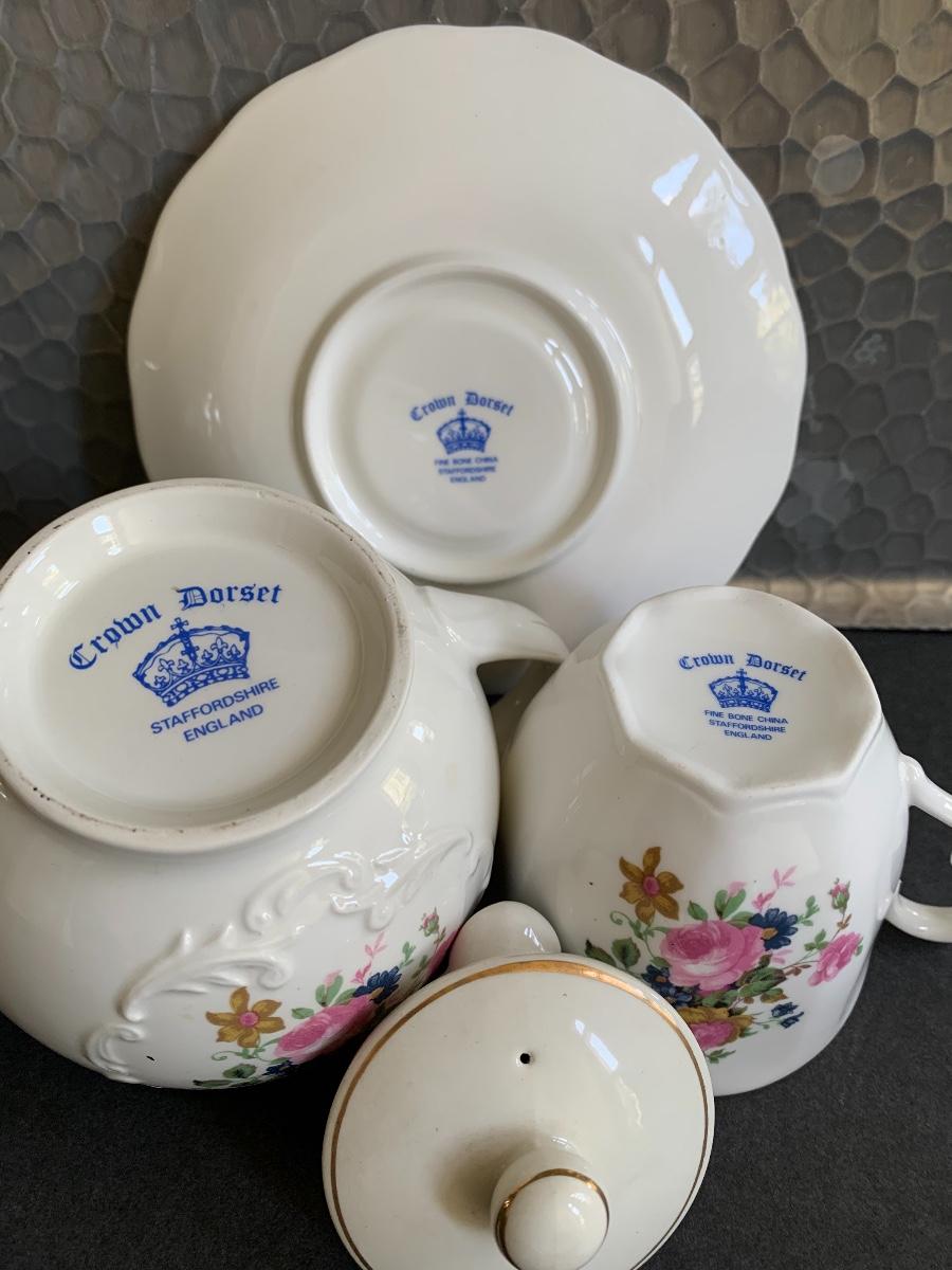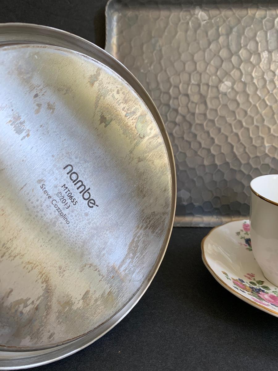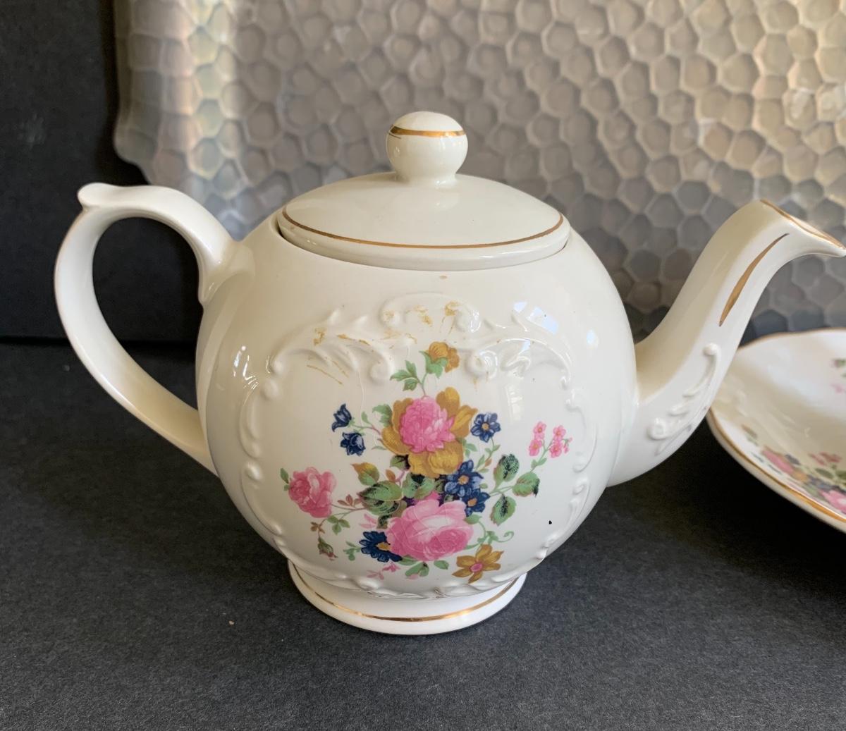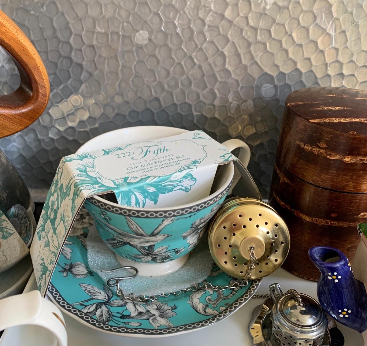 Tea Time: Nambe Tea Pot, Matching Crown, Staffordshire England Teas Pot and Cup, Cherry Bark Tea Canister ( helps to keep tea fresh), tea infuser and more