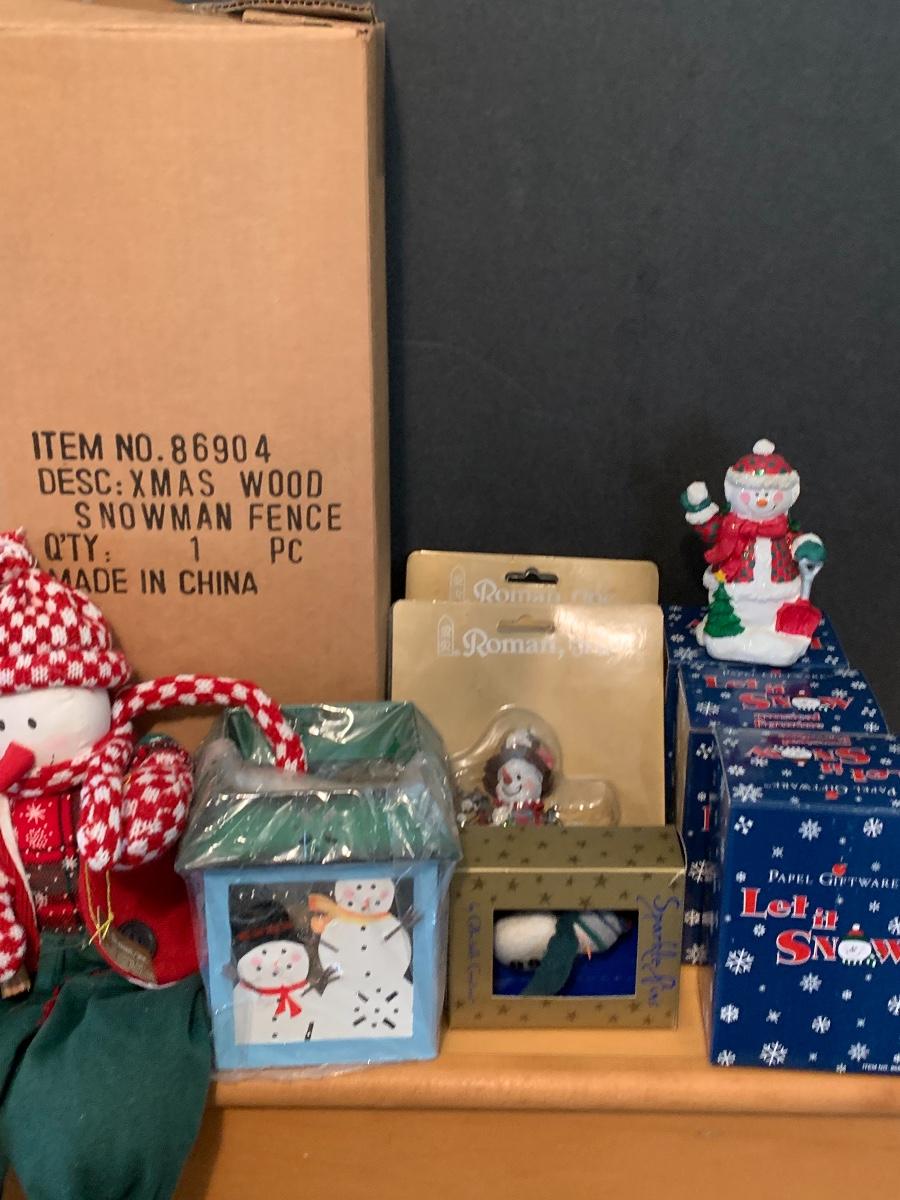 Lot 117: "Let It Snow" Snowman Fence & Figures , Roman Inc. Snowman Ornaments& More