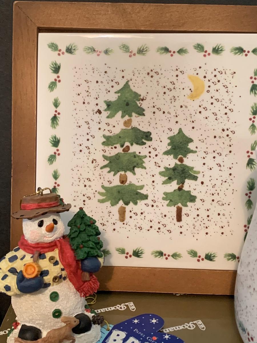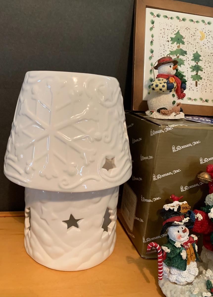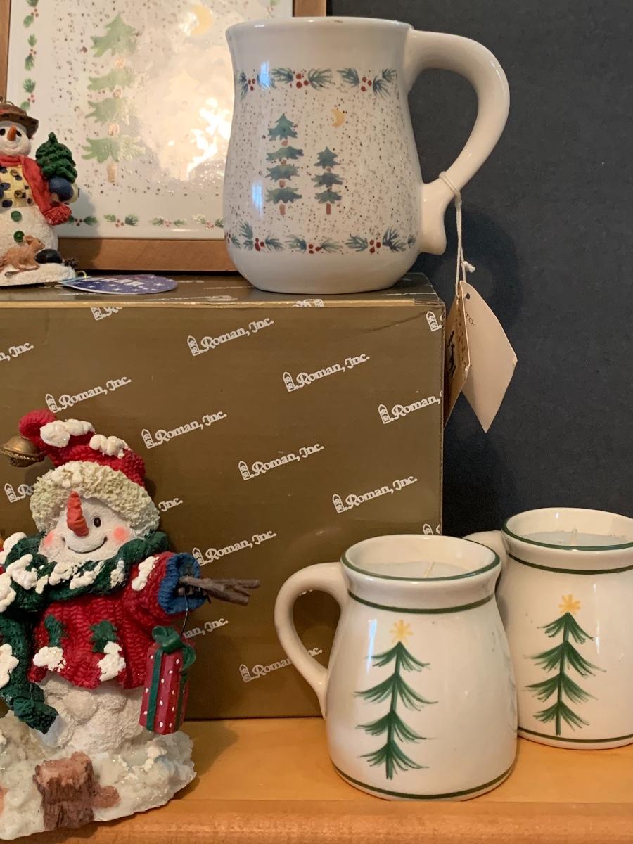 Lot 115: Jar Candle Holder, Matching Moose Creek Lodge Trivet & Mug, Snowman & More