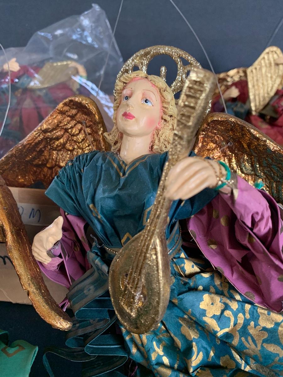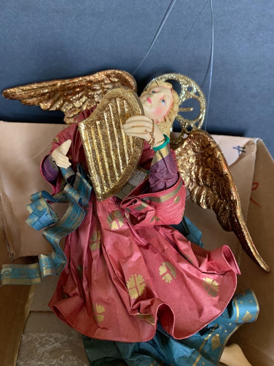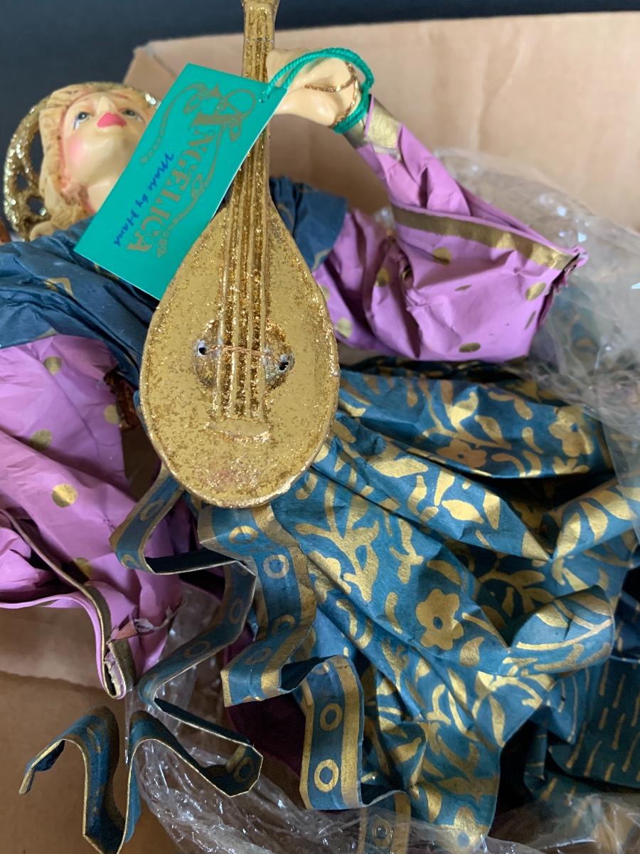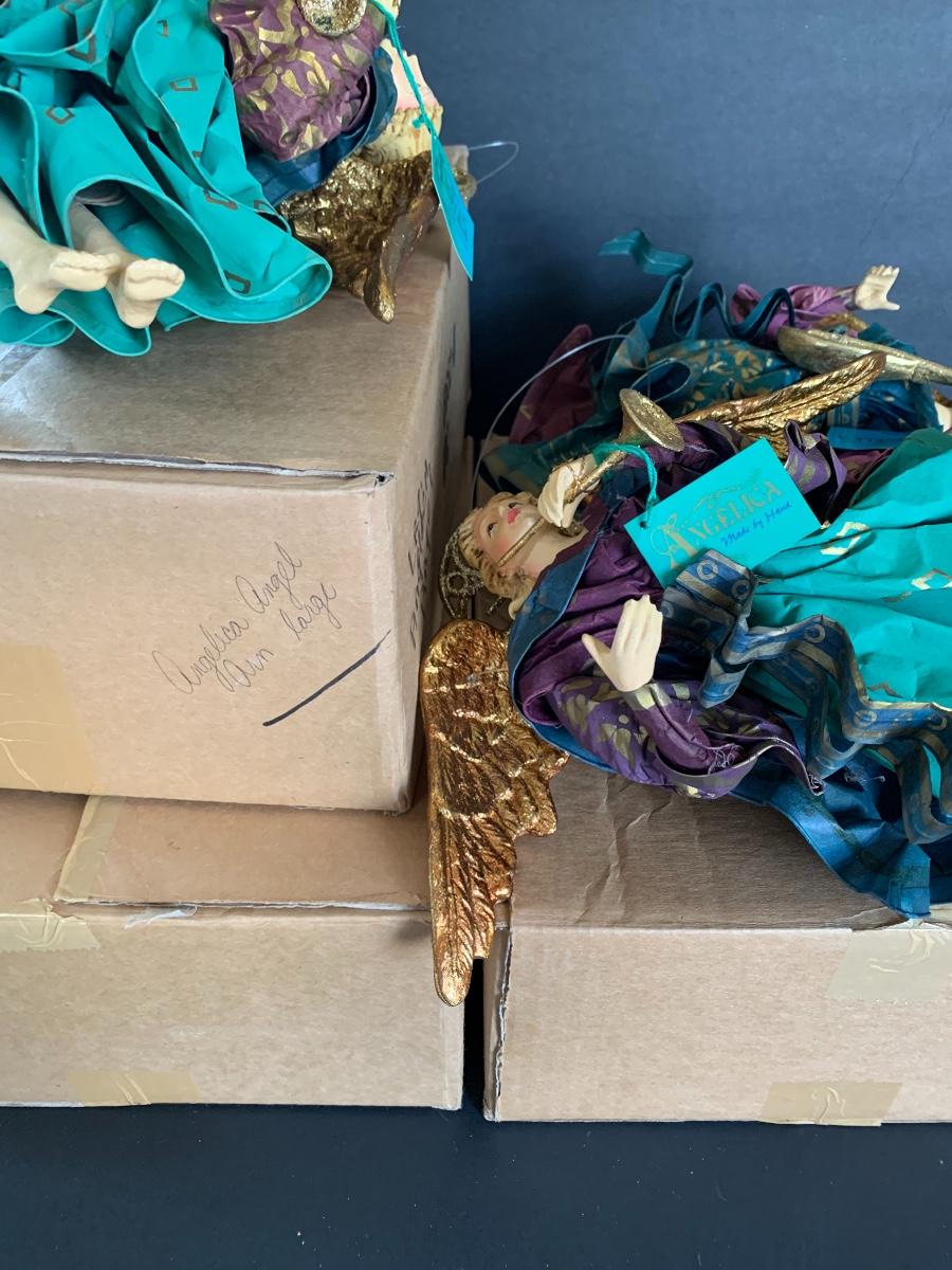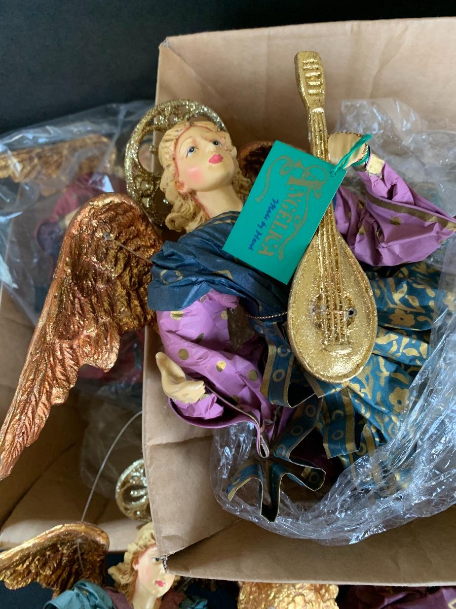 Dept 56 beautiful hanging angels comes with boxes. Please note some boxes make have condition issues that are not pictured. A couple of the halos will need to be re glued.