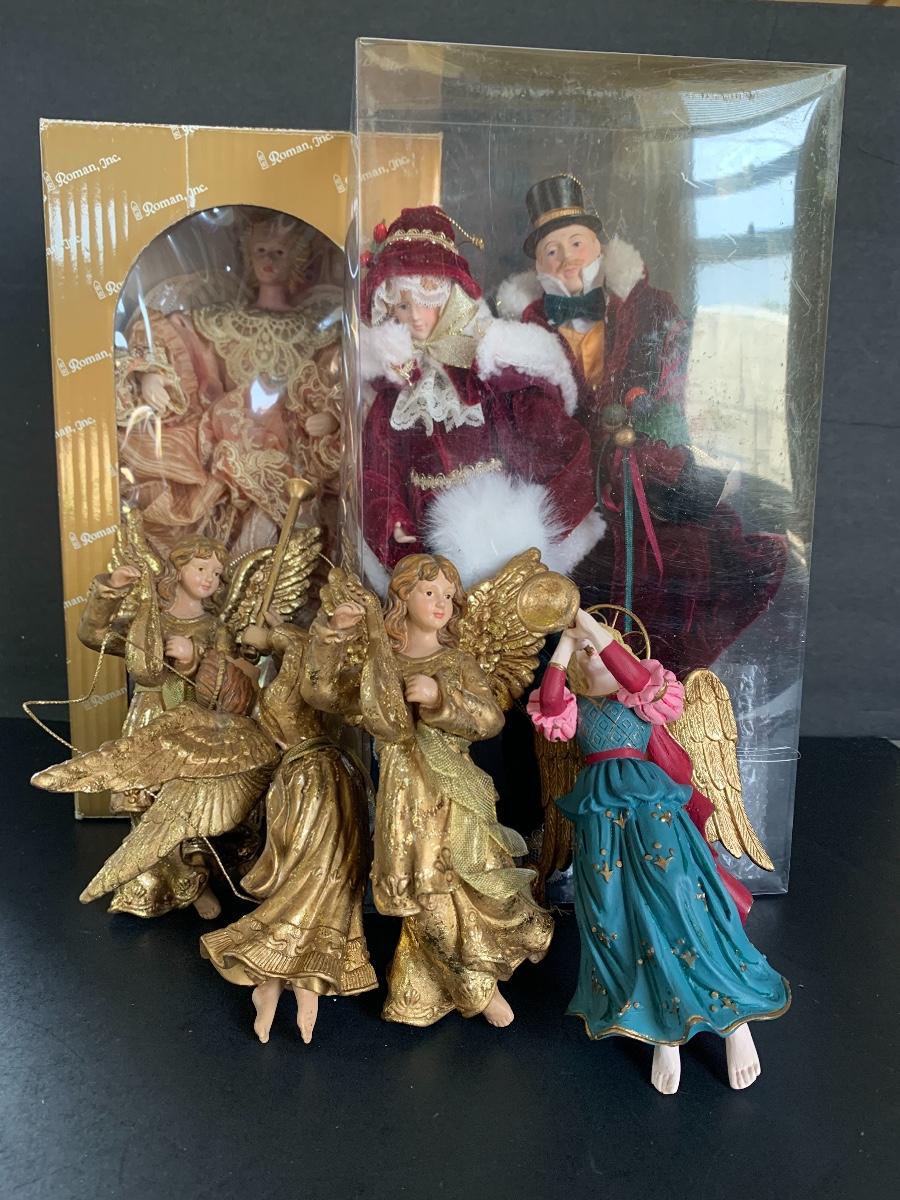 Beautiful Angel Tree Topper with Original Box. Victorian Couple in the plastic packaging. Angel Ornaments to adorn your tree or home.