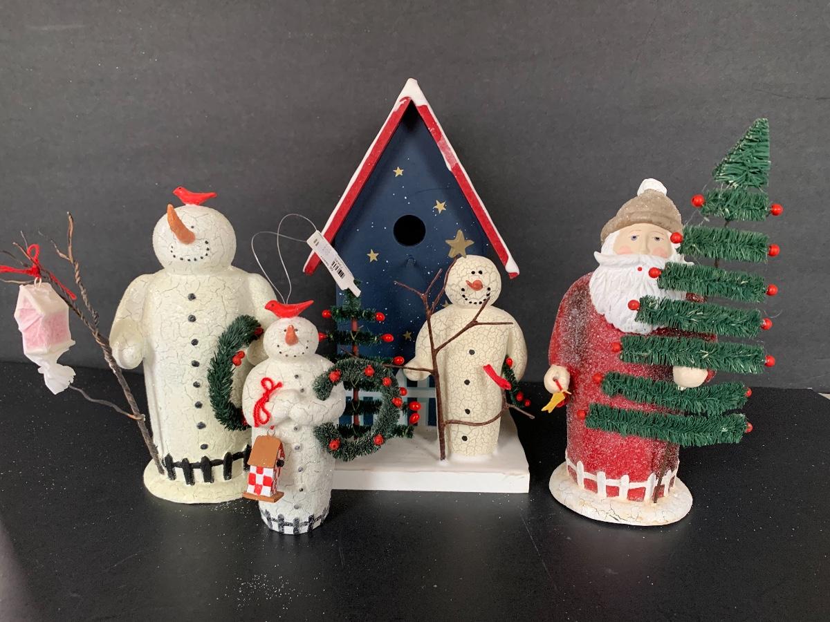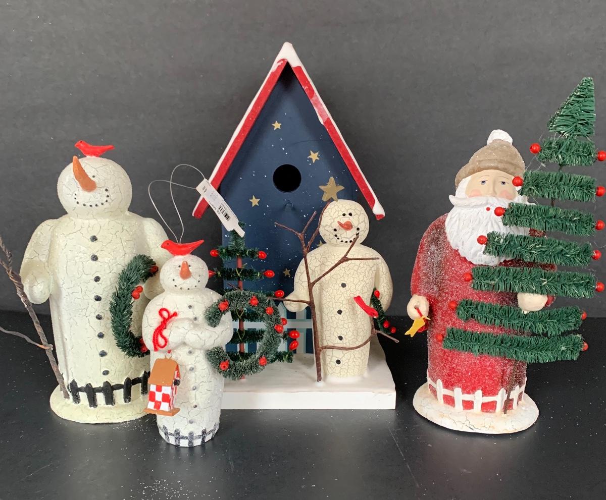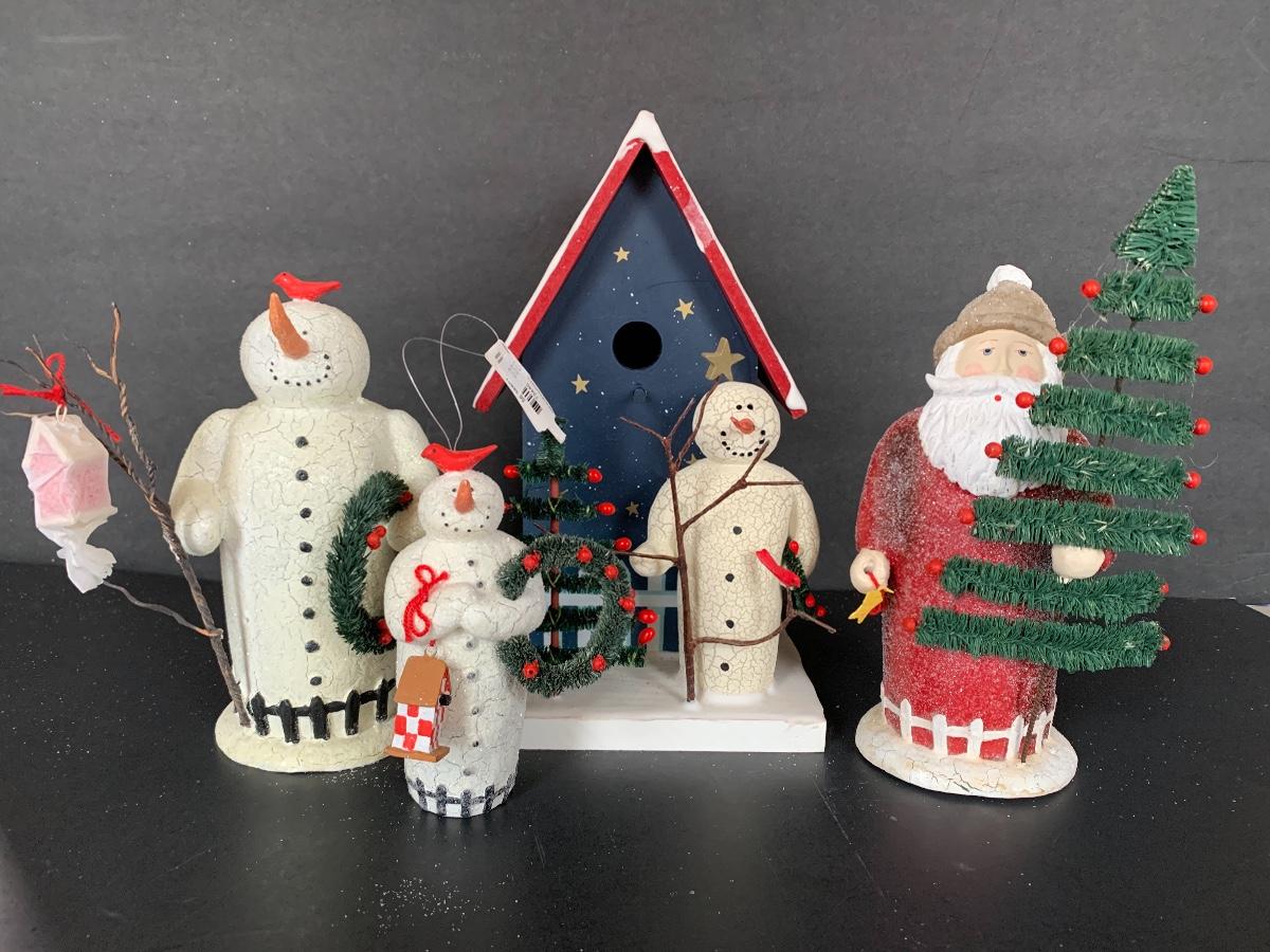 Lot 98: Dept 56 Once Upon a Starry Night Bird House, Snowman & Santa