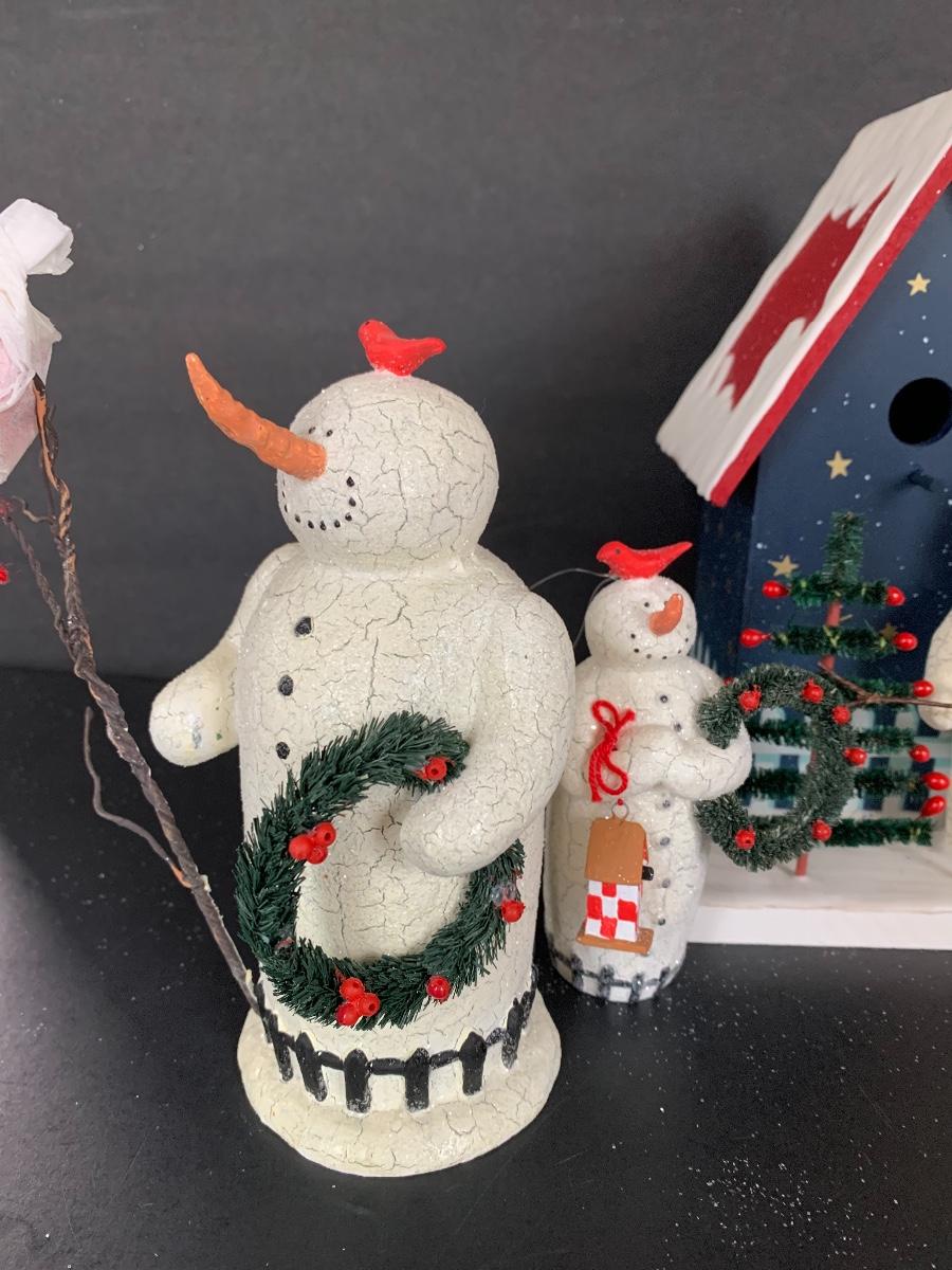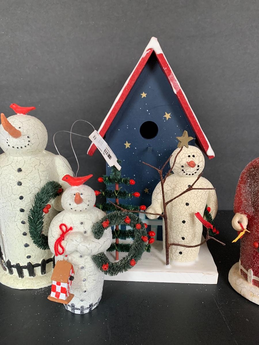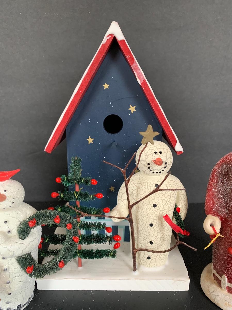 Lot 98:   Dept 56 Once Upon a Starry Night Bird House, Snowman & Santa